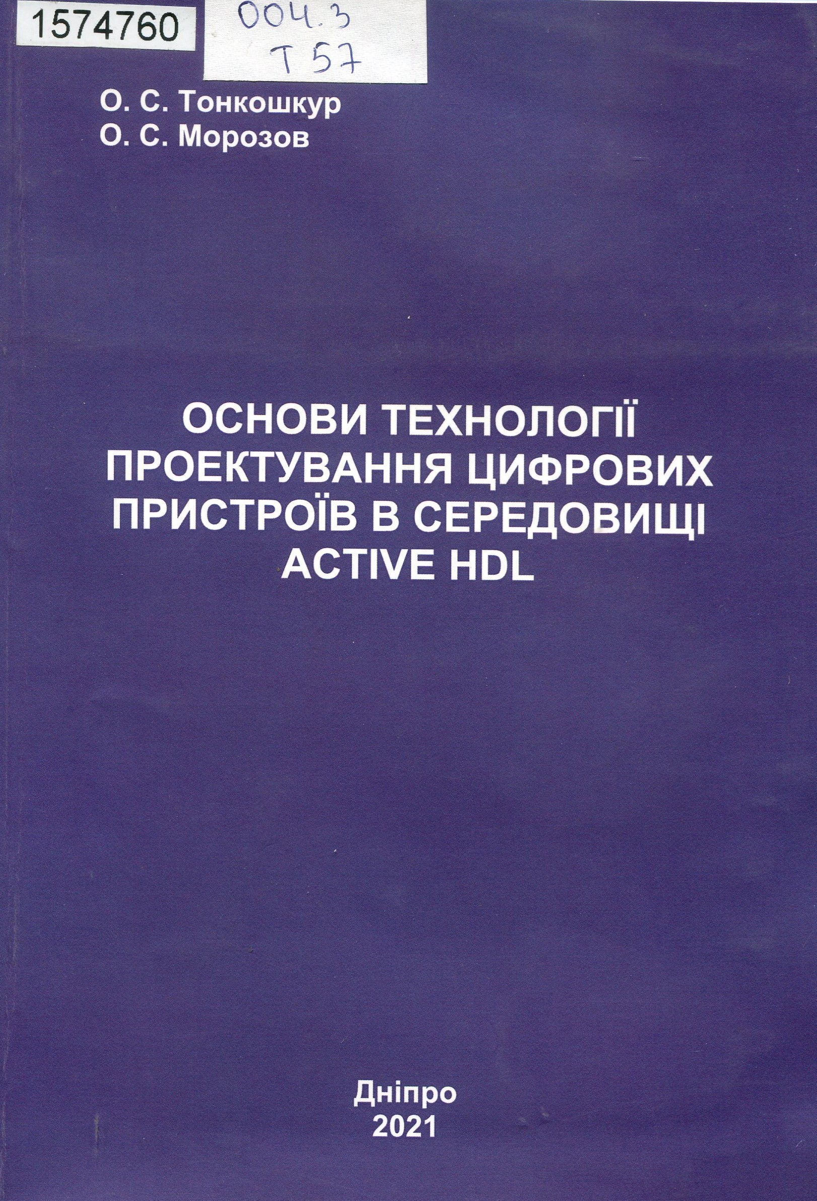 1574760 004/3 Т57 Тонкошкур О.С. Морозов О.С. Основи технології проектування цифрових пристроїв в середовищі ACTIVE HDL Це видання розроблено на основі узагальнення досвіду, одержаного авторами при викладанні навчальної дисципліни "Технології проектування комп'ютерних систем" на факультеті фізики, електроніки та комп'ютерних систем Дніпропетровського національногоуніверситету ім. О.Гончара Викладені основні відомості необхідні для практичного оволодіння сучасними методами та програмним середовищем проєктування електроних цифрових пристроїв ACTIV HDL. |
