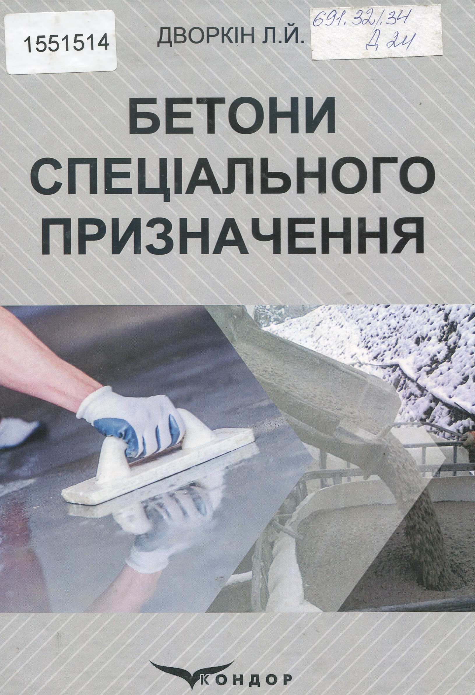 1551514 691.32/. 34 Д 24 Дворкін Л.Й. Бетони спеціального призначення: Навчальний посібник/ Дворкін Л.Й.- К.- Видавничий дім У книзі використано результати багаторічних наукових досліджень автора у Національному університеті водного господарства та природокористування. Викладено основи технології, властивості і напрямки застосування групи спеціальних бетонів, що використовуються в будівництві. Рохглянуто основні особивості, шляхи досягнення і регулювання властивостей спеціальних бетонів, способи підвищення їх довговічності та ефективності в будівельних конструкціях і виробах. Наведено діючі нормативні дані, що регламентують технічні вимоги до спеціальних бетонів. Посібник може зацікавити студентів будівельних спеціальностей вищих навчальних закладів. Він також корисний для інженерно-технічних працівників будівельних організацій та підприємств. |
