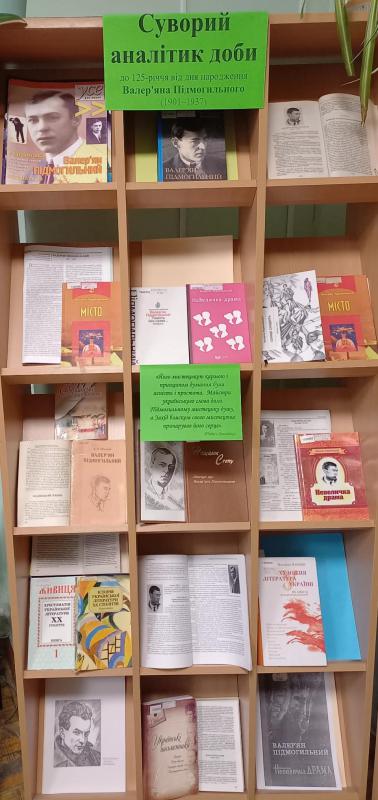 До 125-річчя від дня народження прозаїка, перекладача, представника «Розстріляного відродження» Валер'яна Підмогильного у відділі абонемента організовано книжкову виставку, яка наповнена біографічними матеріалами, виданнями та статтями про творчість ювіляра, а також представлені його твори.