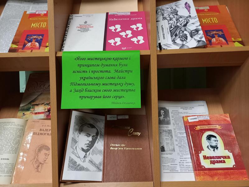 До 125-річчя від дня народження видатного українського письменника і перекладача Валер’яна Підмогильного в краєзнавчому відділіі діє книжкова виставка з циклу «Дніпропетровщина літературна».