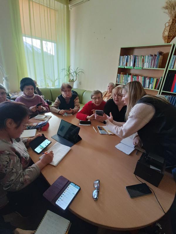 Для учасників Університету третього віку у відділі читальних відбувся черговий трьохденний тренінг по користуванню смартфону фахівцями від міжнародної організації IRC, яка психологічне підтримує та надає різноманітну допомогу для всіх бажаючих.Присутнім була надана детальна роз'снювальна інформація щодо розуміння правильно користуватись гаджетом. фото 1