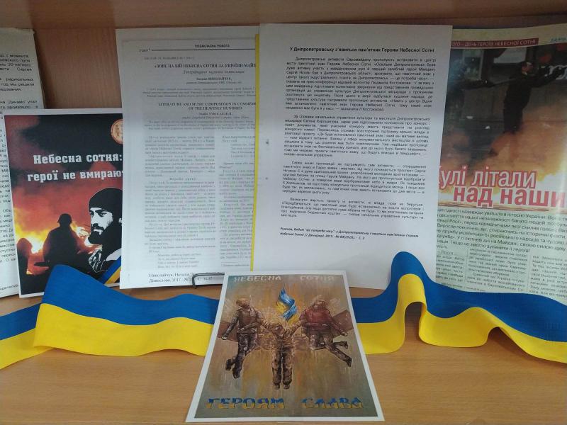 До Днів пам’яті Героїв Небесної Сотні у краєзнавчому відділі представлена краєзнавча локація «Небесна сотня: ціна свободи», присвячена подіям Революції Гідності та подвигу українців, які віддали життя за свободу і гідність України.