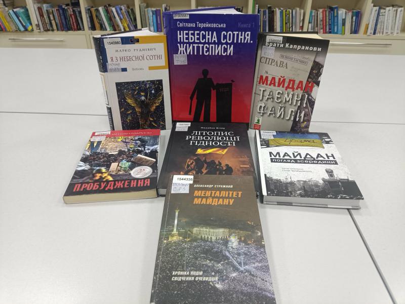 До Дня героїв Небесної Сотні у відділі читальних для студентської молоді відбувся історичний екскурс "Зима, що всіх змінила назавжди". Учасникам через презентацію нагадали, які зимові події 2013-2014 року в Україні вплинули на сьогоднішню пам'ятну дату. А представлені книжкові джерела це спогади сучасників і завдяки ним ми можемо знати правду буремних днів Майдану.