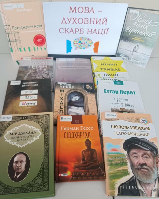 До Дня рідної мови у відділі читальних залів відбувся тематичний книжковий огляд "Мова єднає нації". Через представлені книжкові документи можна дізнатись: про походження і культурну революцію мов; про мовленнєві етикетні норми різних народів, що є запорукою успіху в міжнародному спілкуванні, а також деякі художні твори популярних письменників різних країн світу, які знайомлять читача з літературною творчістю цих авторів - це чеські, литовські, німецькі, азербайджанські, ізраїльські та інші представники свого народу. фото 1 фото 2