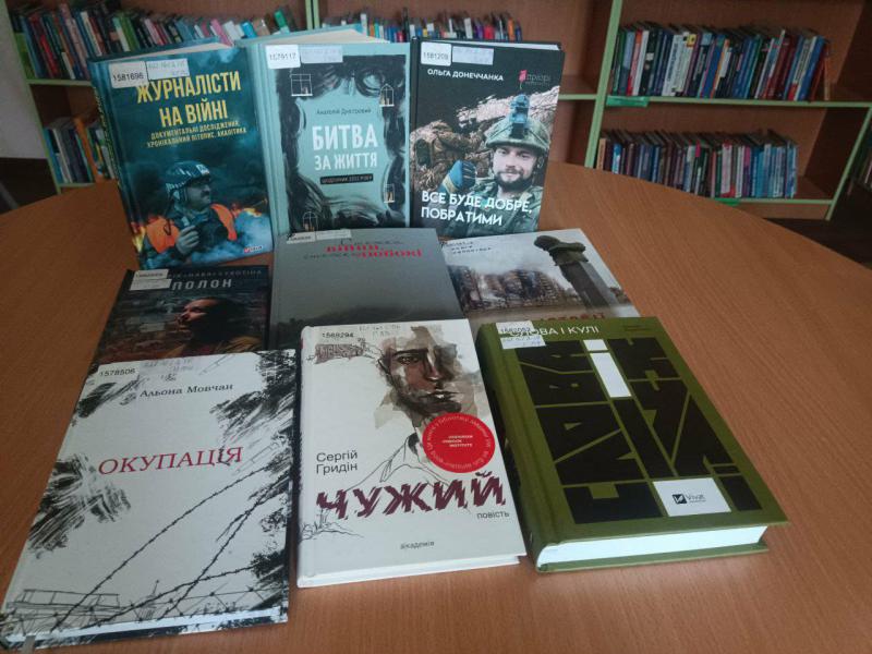 До чергової річниці початку повномасштабної російсько-української війни у відділі читальних залів відбувся тематичний книжковий огляд «Битва за життя», присвячений військовій тематиці в сучасній українській літературі та новим художнім вимірам, які є цікавими для читацької аудиторії з точки зору сучасної історії України. Запропоновані книги є художньо-документальними джералами, а також свідченнями та спогадами очевидців-учасників війни. Це повісті і роздуми на реальних подіях, збірки поезії та фотокниги пронизані любов’ю до життя, документальні дослідження і хронікальні літописи разом з аналітикою журналістів і про журналістів, які мужньо бувають там, де дуже небезпечно, але завдяки ним люди можуть знати правду, що відбувається або відбулось насправді. Книги про незвичайні долі реальних людей на війні, про велику волонтерську роботу, яка є справжньою допомогою для військових та цивільних громадян, про людей з полону, які змогли вижити не втративши гідності і залишитись справжніми патріотами своєї країни. Тому нові художні виміри це живі історії та життя людей, які і є нашим історичним майбутнім. Пам’ятаємо та цінуємо! Віримо в Перемогу! Слава Україні і ЗСУ! фото 1 фото 2 фото 3 фото 4