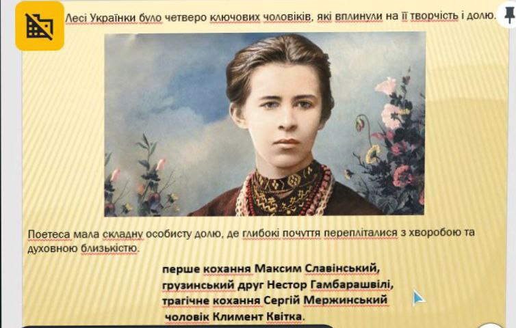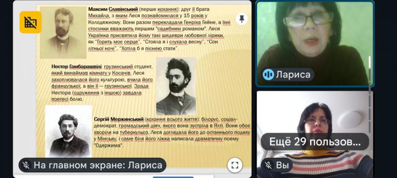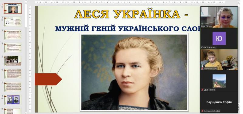 До 155-річчя з дня народження видатної української поетеси Лесі Українки для студентської молоді у відділі читальних залів онлайн відбулась літературна година " Лесино слово звучатиме піснею". Через презентацію учасники дізнались цікаві факти з особистого життя поетеси та переглянули запропонований біографічний документальний фільм "Леся Українка". фото 1 фото 2 фото 3 фото 4 фото 5