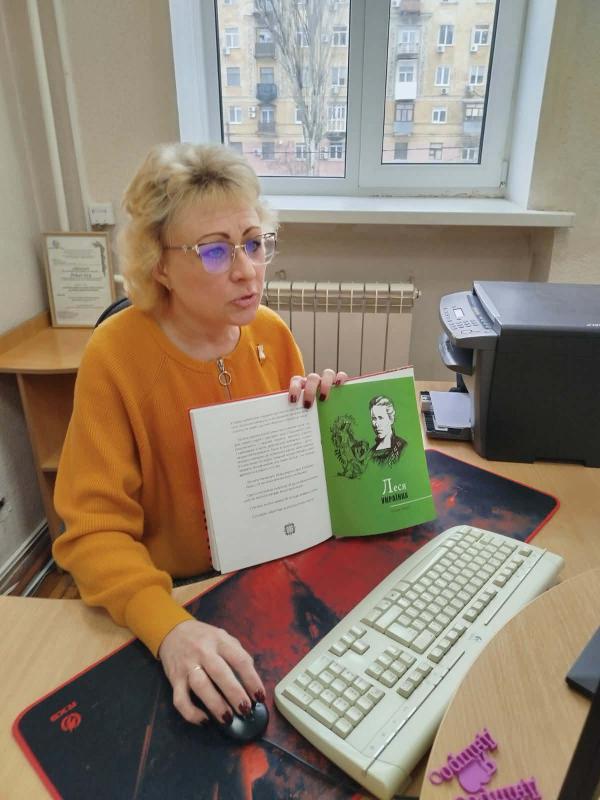 Відділ наукової інформації та бібліографії продовжує співпрацю з Дніпровським ліцеєм №1 Дніпровської міської ради. В межах проєкту відбулася чергова інформаційно-пізнавальна зустріч з ліцеїстами середніх класів. З нагоди 155-річчя від дня народження видатної української письменниці Лесі Українки діти ознайомилися з презентацією «Леся Українка – мужній геній українського слова», з якої дізналися про родину Косачів-Драгоманових, братів та сестер Лариси Косач, вплив оточення на формування особистості письменниці, дитячі та юнацькі роки Лариси, її таланти та захоплення, чоловіка Лесі Українки – Климента Квітку. Ліцеїсти ознайомилися із внеском Лесі Українки в новітню українську літературу, її різні напрямки та літературні жанри, в перекладацьку справу та фольклористику; дізналися про громадські ініціативи письменниці, значення її життя і творчості для відповідного періоду розвитку нашої країни. Цікавим для слухачів був матеріал про увічнення пам’яті про Лесю Українку – музеї, літературно-меморіальні музеї, меморіальні квартири в Україні та Грузії. Цікаве спілкування про значення Лесі Українки для літератури та історії України завершило зустріч з нагоди ювілею видатної письменниці.