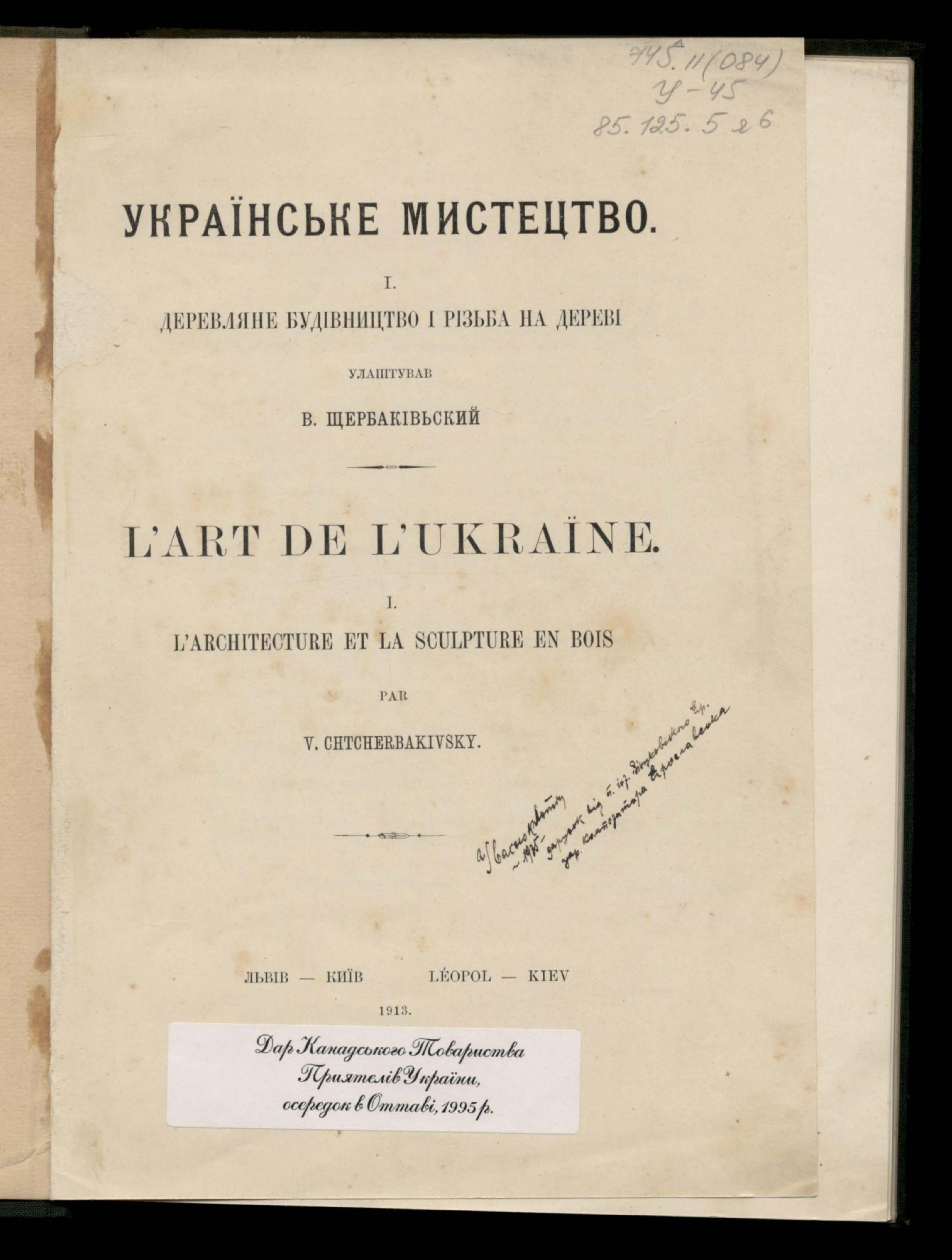 Українське мистецтво. І. Деревляне будівництво і різьба на дереві.У L′ART D′UKRAЇNE. I. L′Architecture et la sculpture en bois