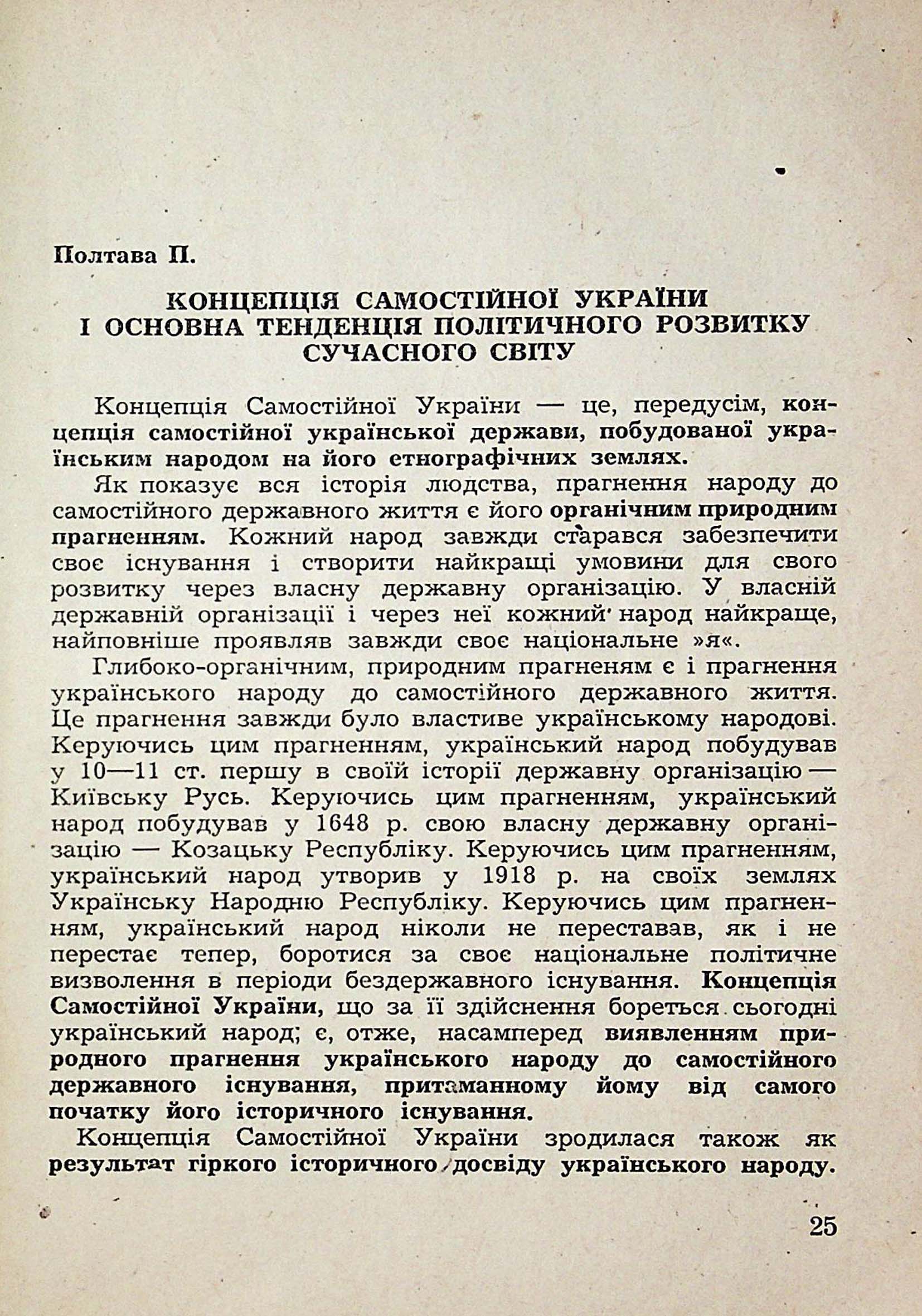 Полтава П. КОНЦЕПЦІЯ САМОСТІЙНОЇ УКРАЇНИ І ОСНОВНА ТЕНДЕНЦІЯ ПОЛІТИЧНОГО РОЗВИТКУ СУЧАСНОГО СВІТУ