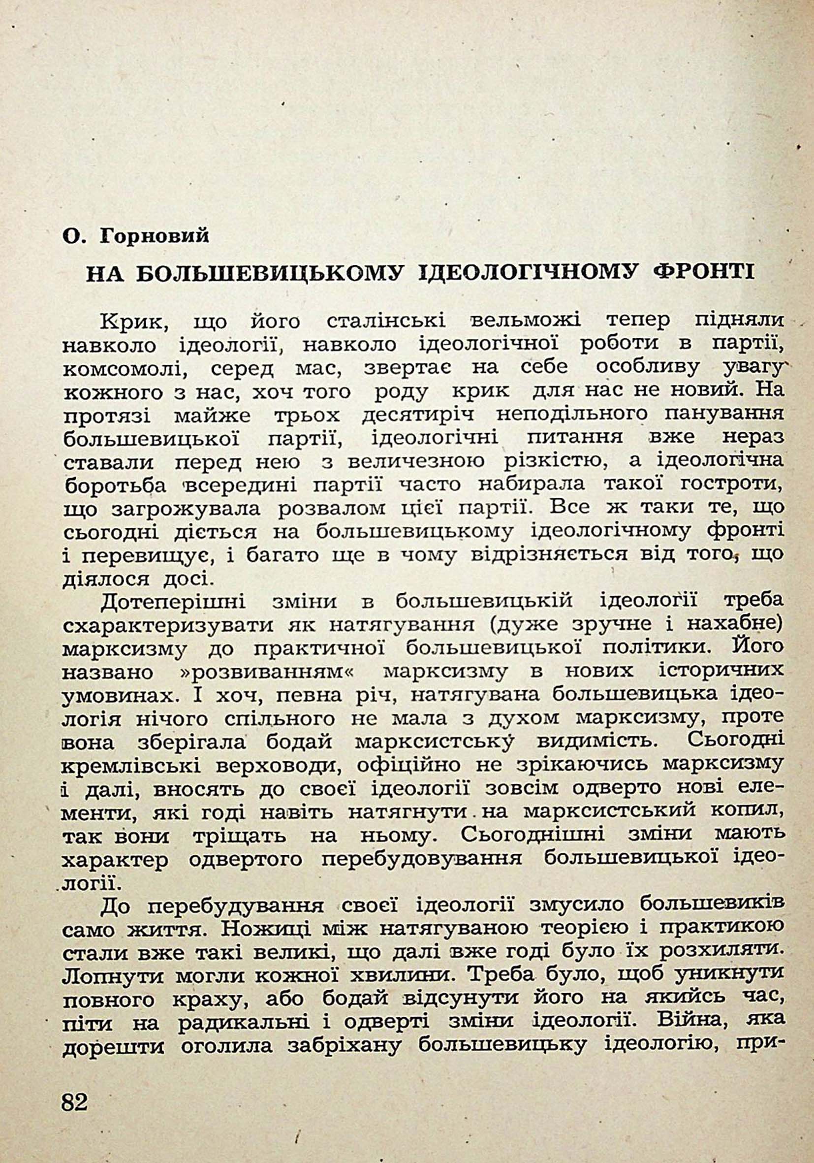 84. О. Горновий. НА БОЛЬШЕВИЦЬКОМУ ІДЕОЛОГІЧНОМУ ФРОНТІ
