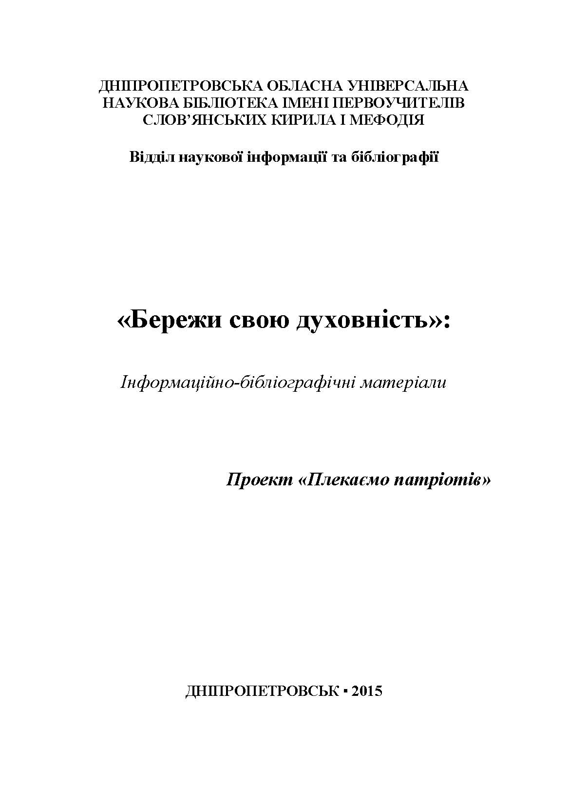 1. Бережи свою духовність. Інформаційно-бібліографічні матеріали. Проект "Плекаємо патріотів"