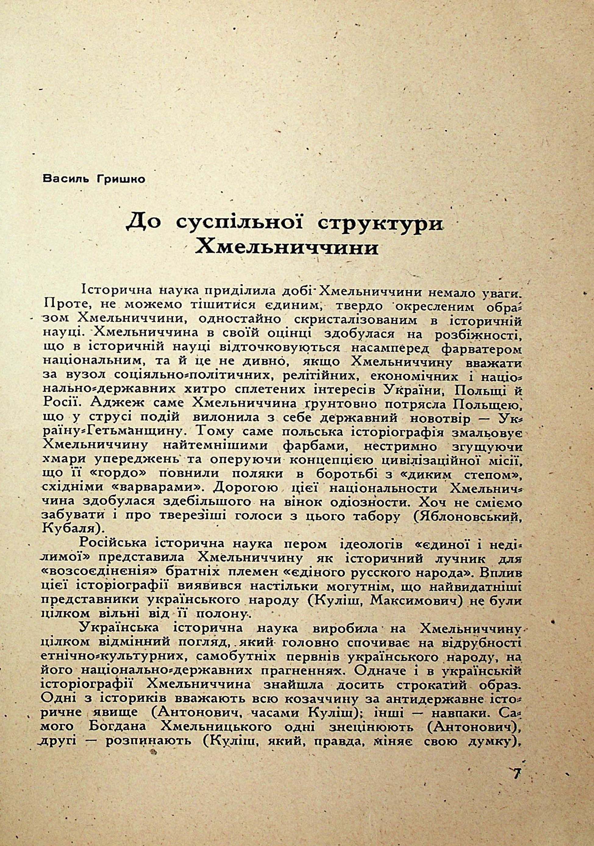 Василь Гришко. До суспільної структури Хмельниччини
