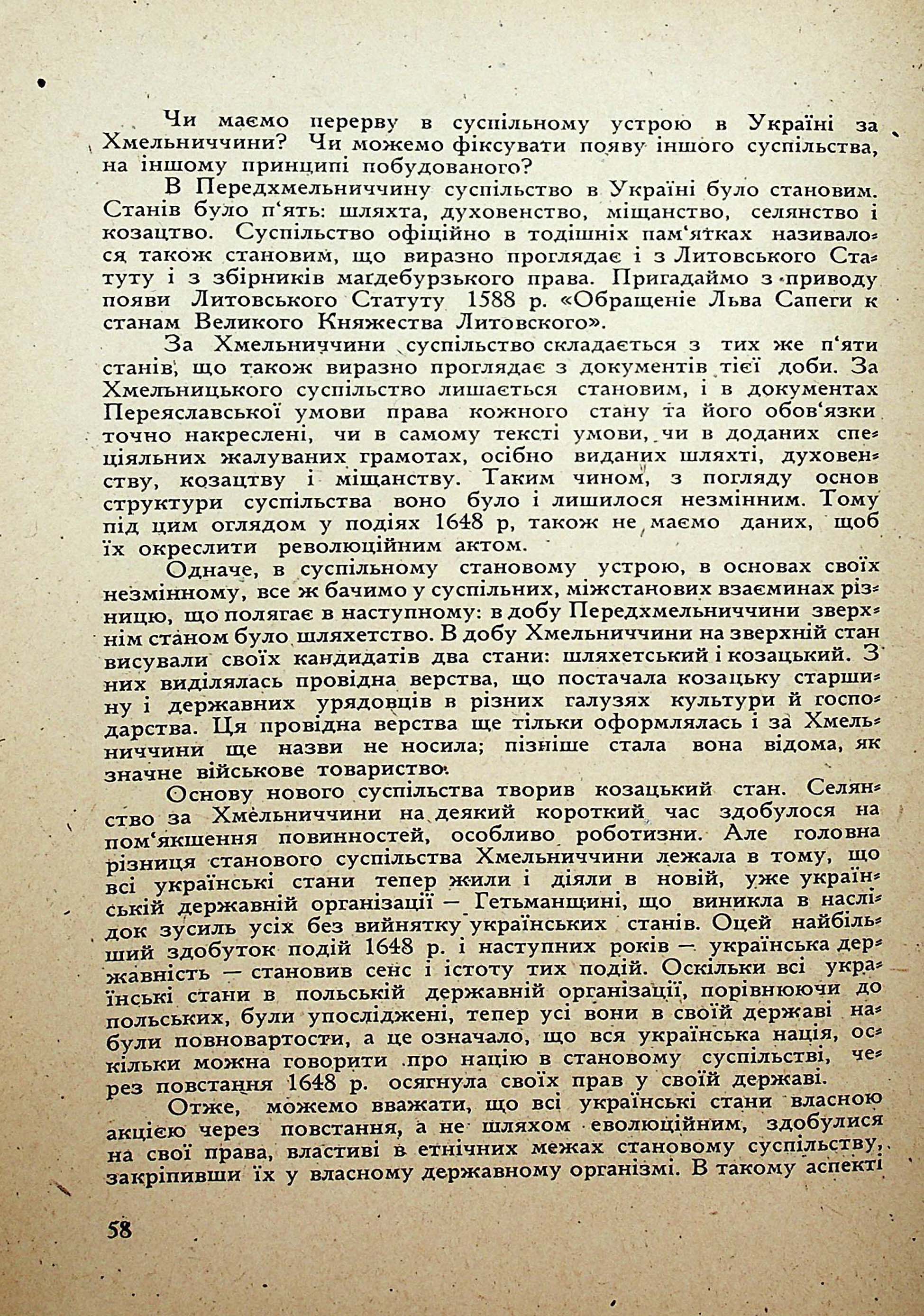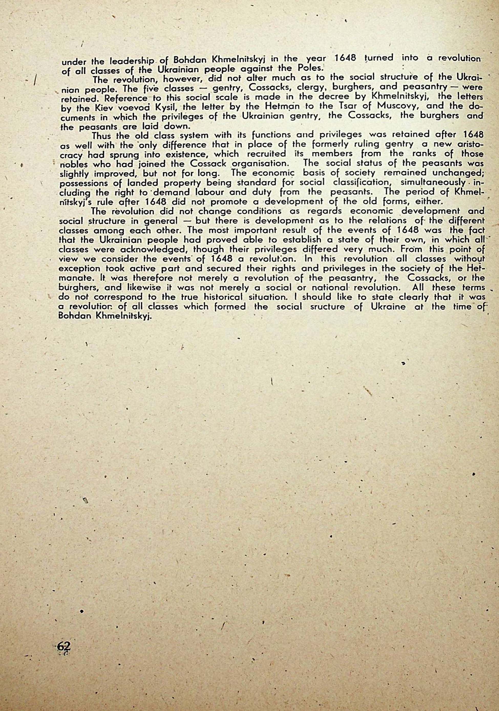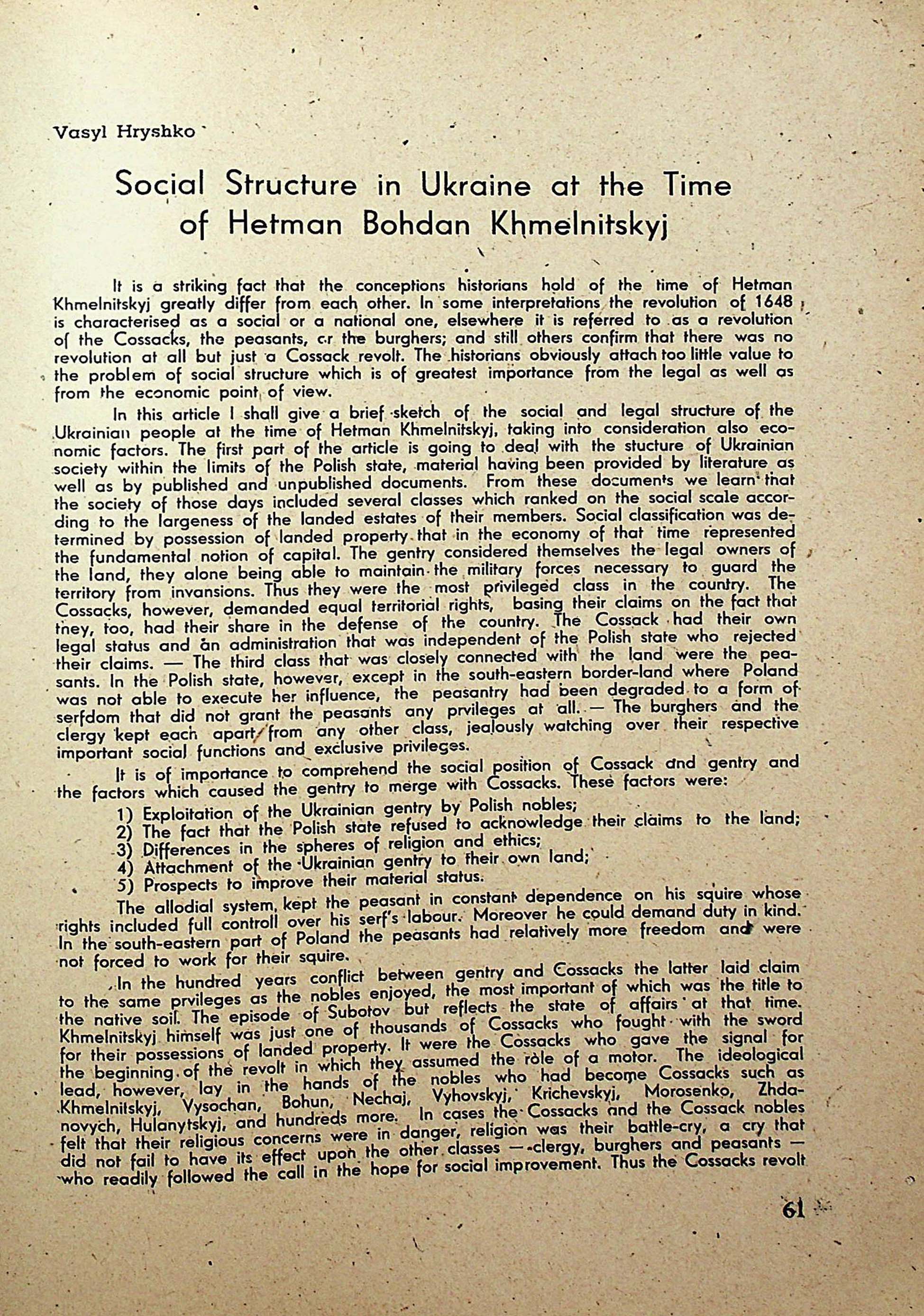 Vasyl Hryshko. Social Structure in Ukraine at the Timeof Hetman Bohdan Khmelnitskyj