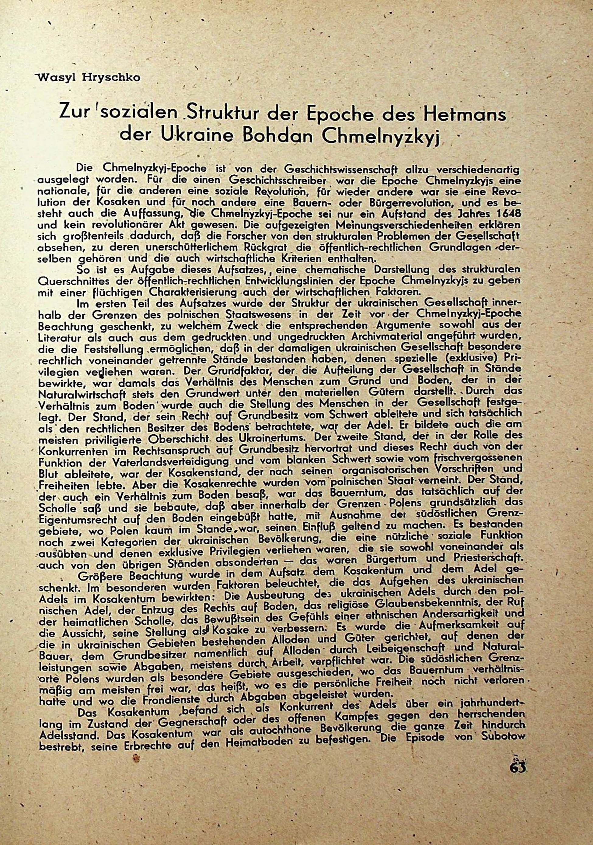 Waszl Hryschko. Zur sozialen Struktur der Epoche des Hetmansder Ukraine Bohdan Chmelnyzkyj