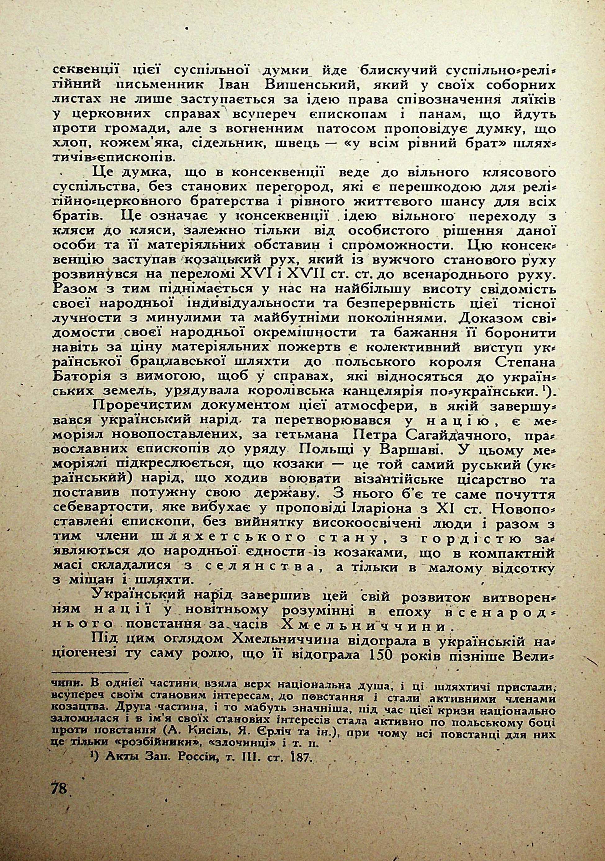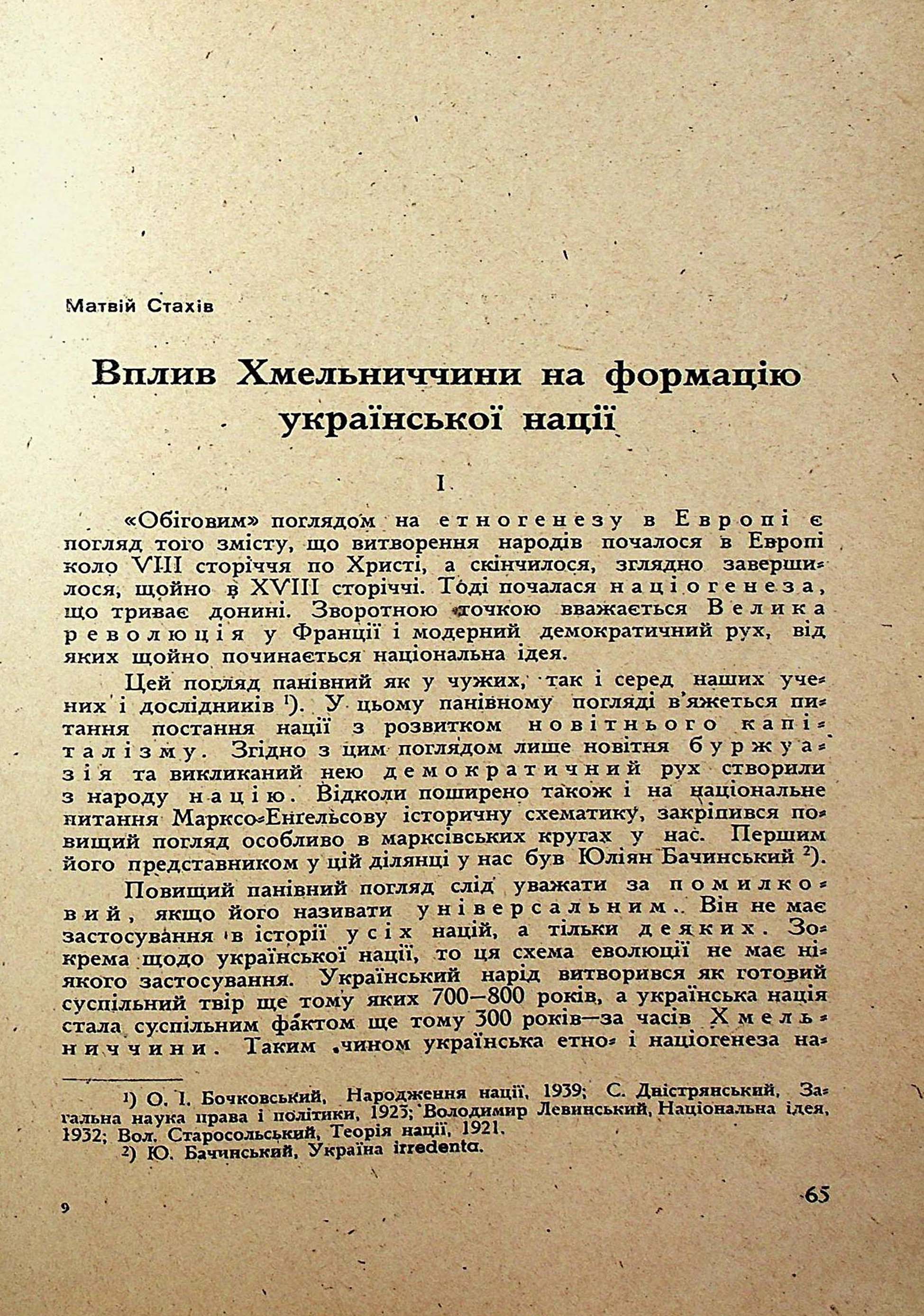 Матвій Стахів. Вплив Хмельниччини на формацію української нації