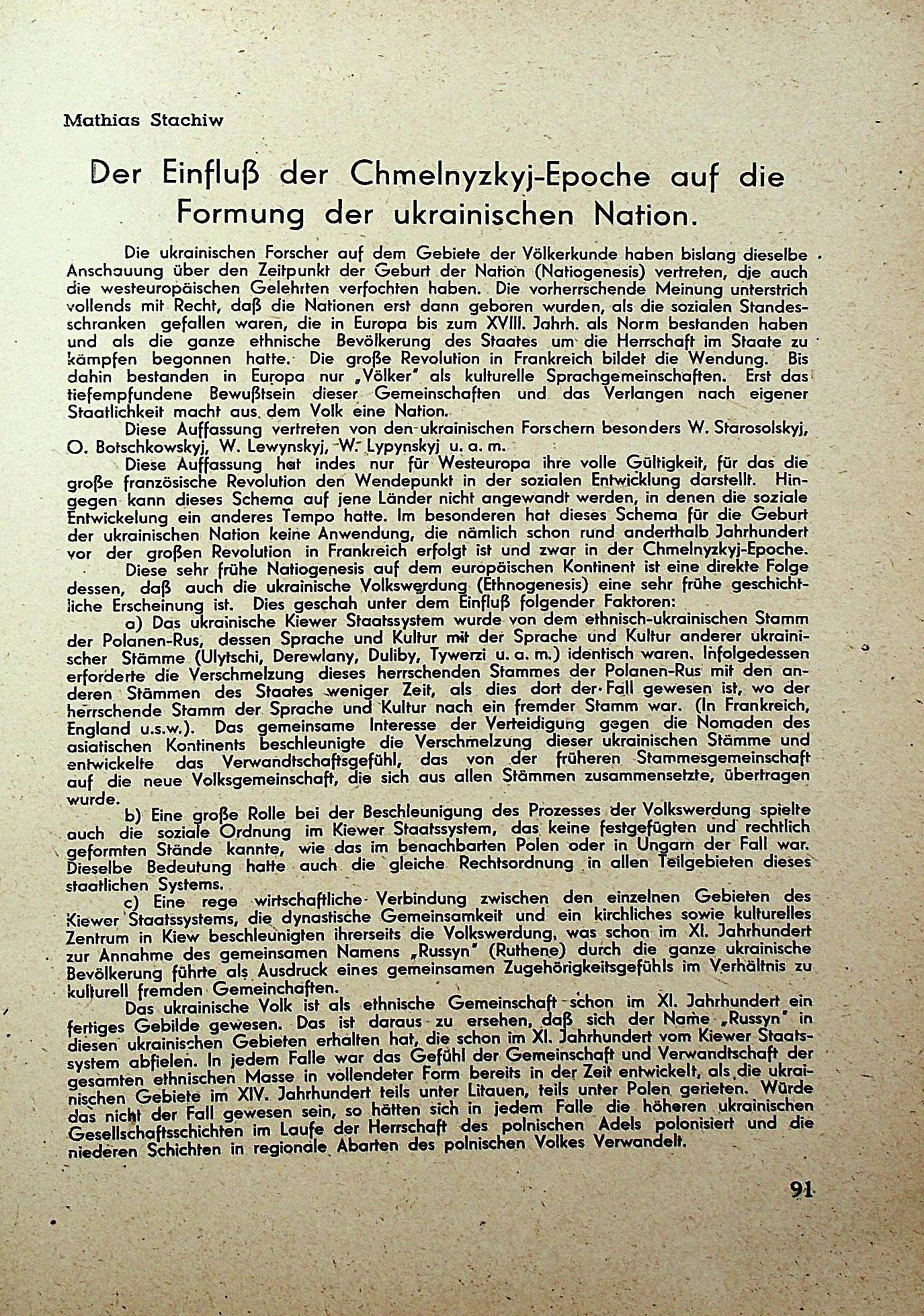 Mathias Stachiw. Der Einfluß der Chmelnyzkyj-Epoche auf dieFormung der ukrainischen Nation