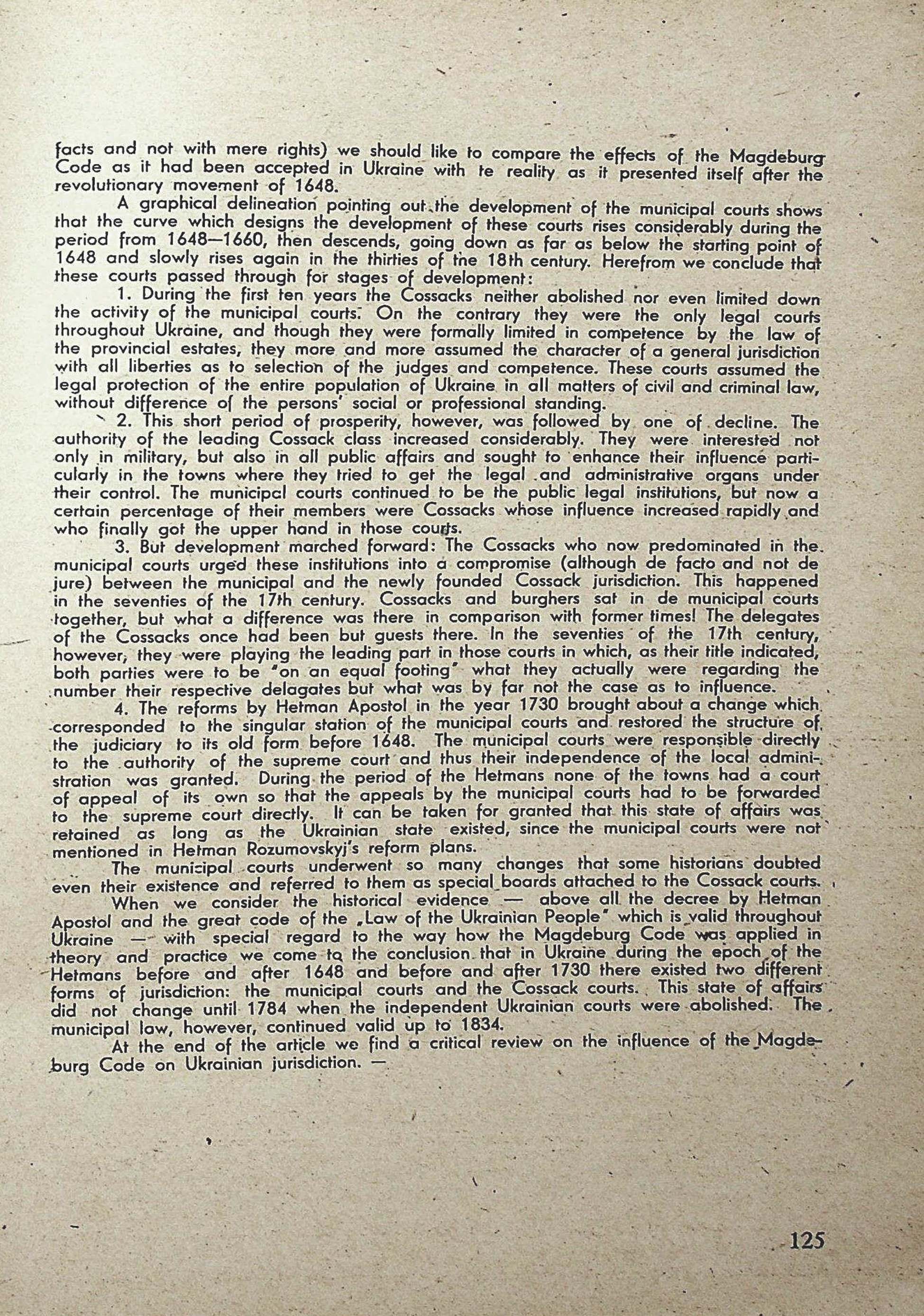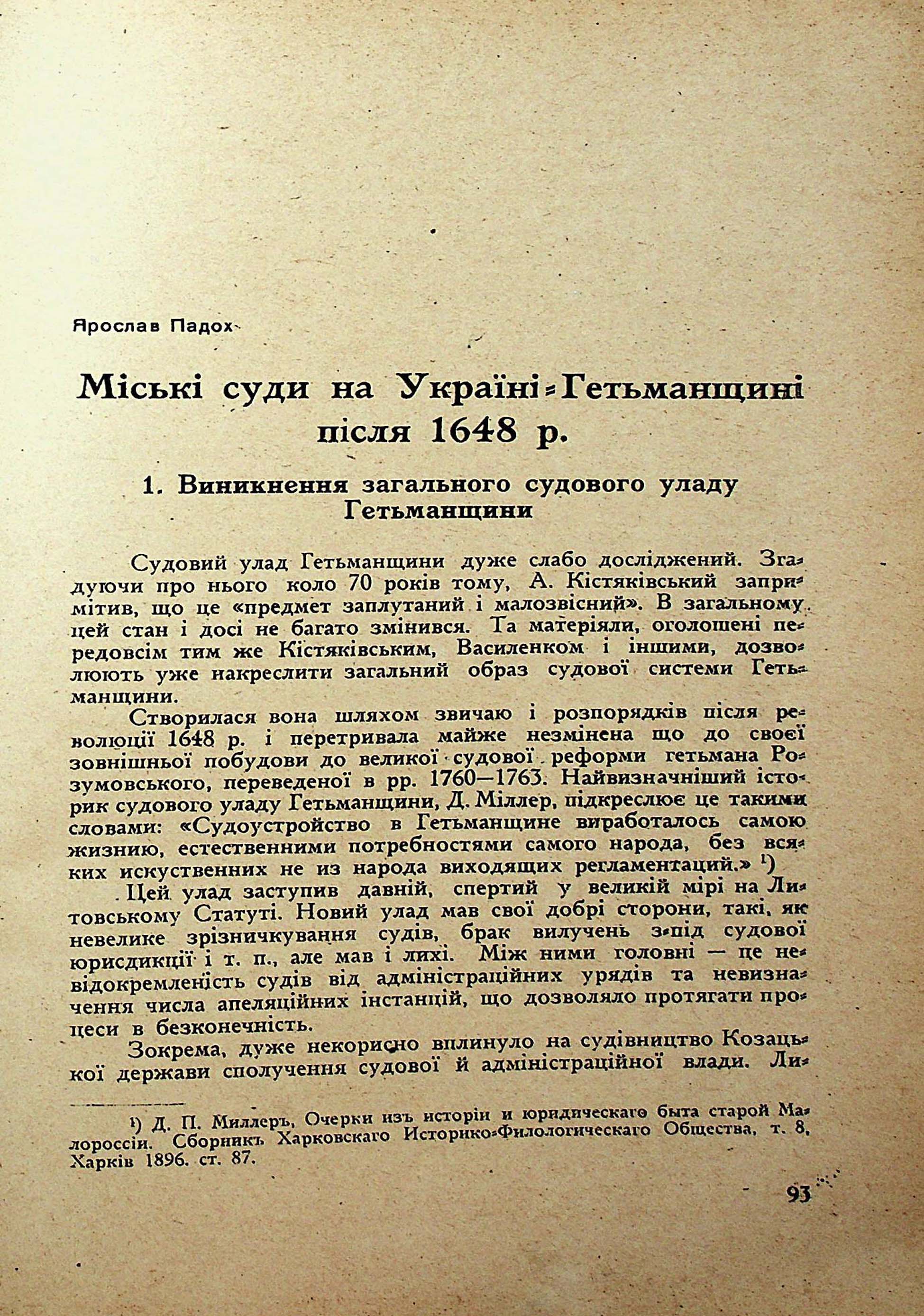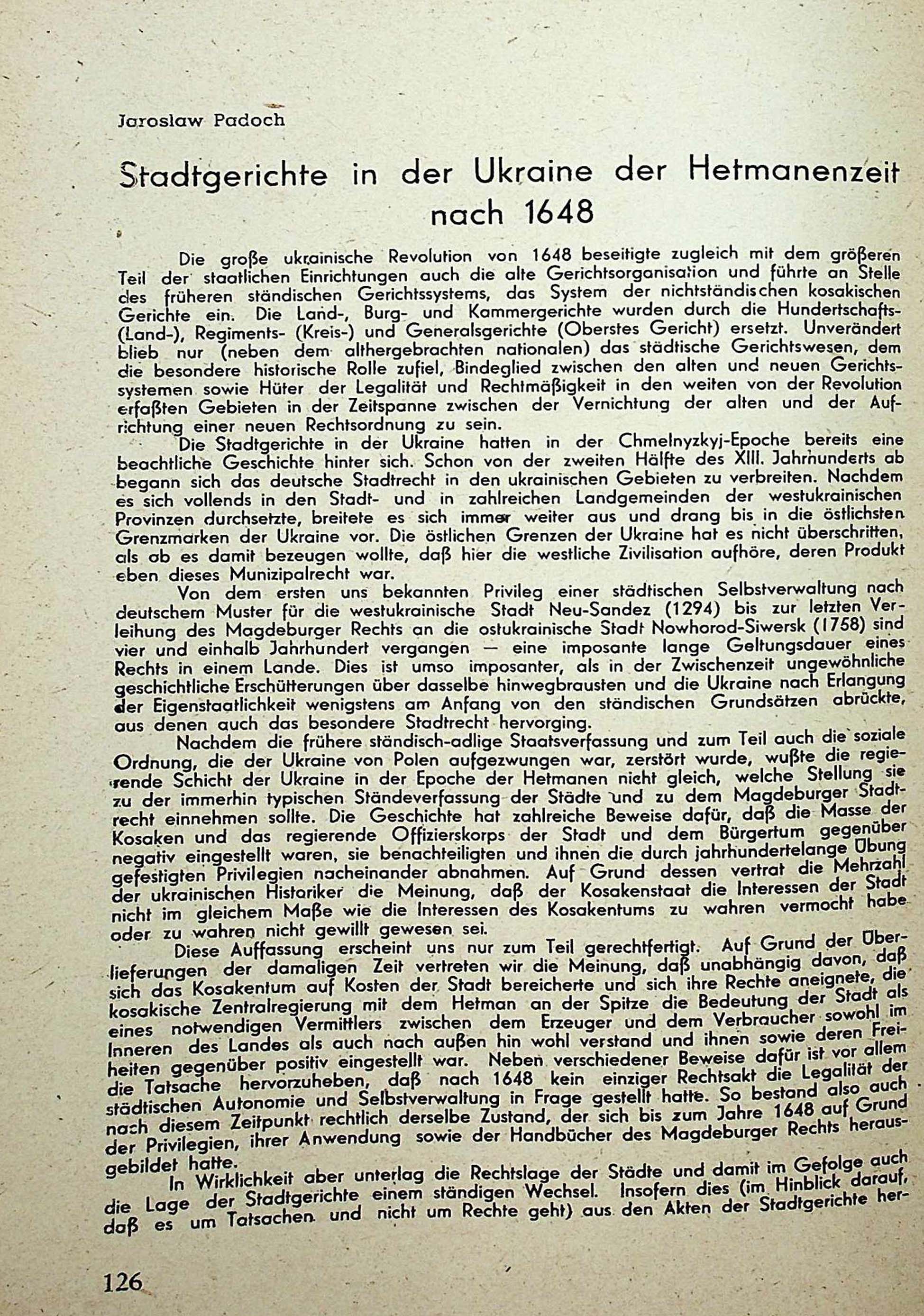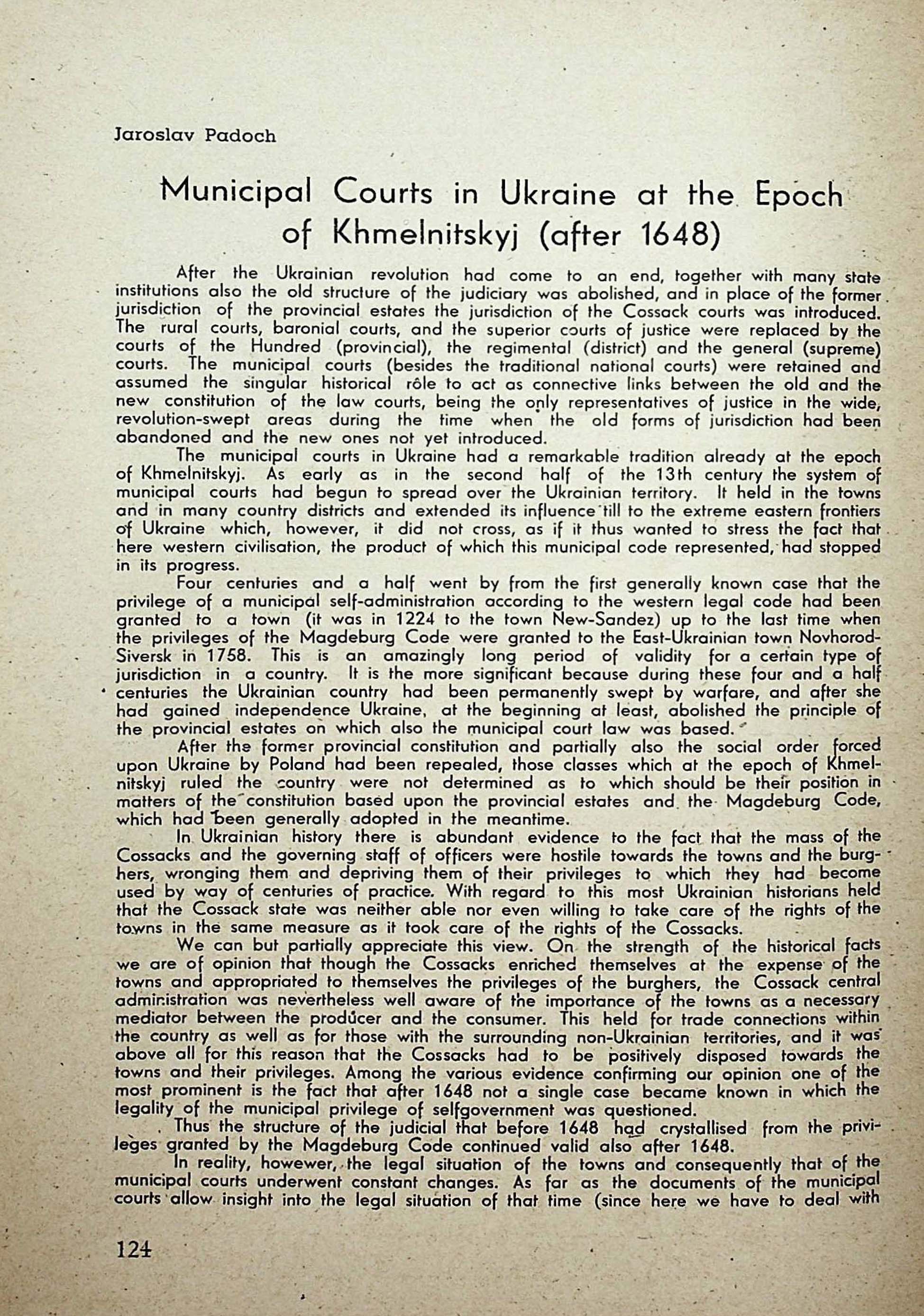 Jaraslav Padoch. Municipal Courts in Ukraine at the Epochof Khmelnitskyj (after 1648)