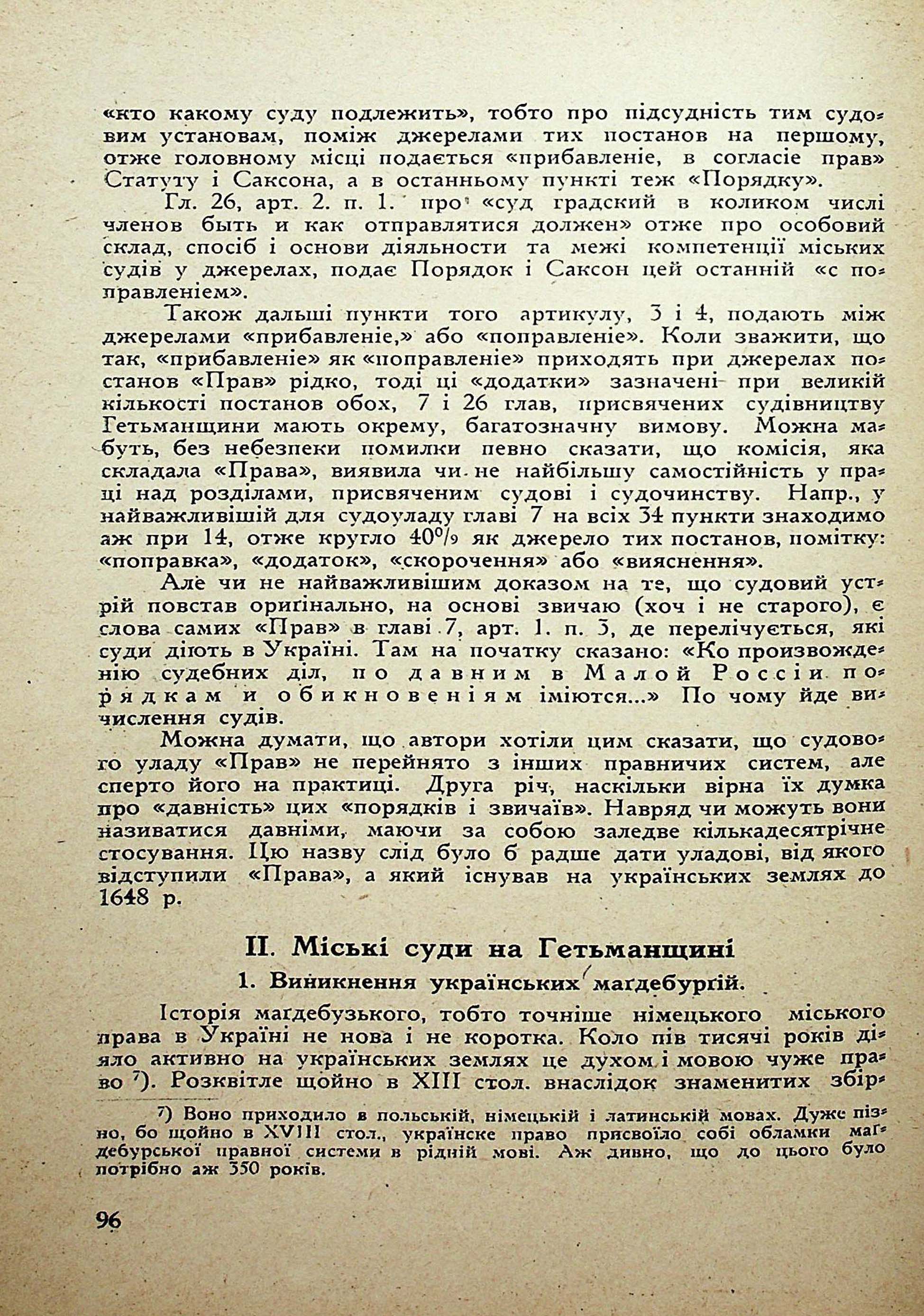 II. Міські суди на Гетьманщині. 1. Виникнення українських магдебургій