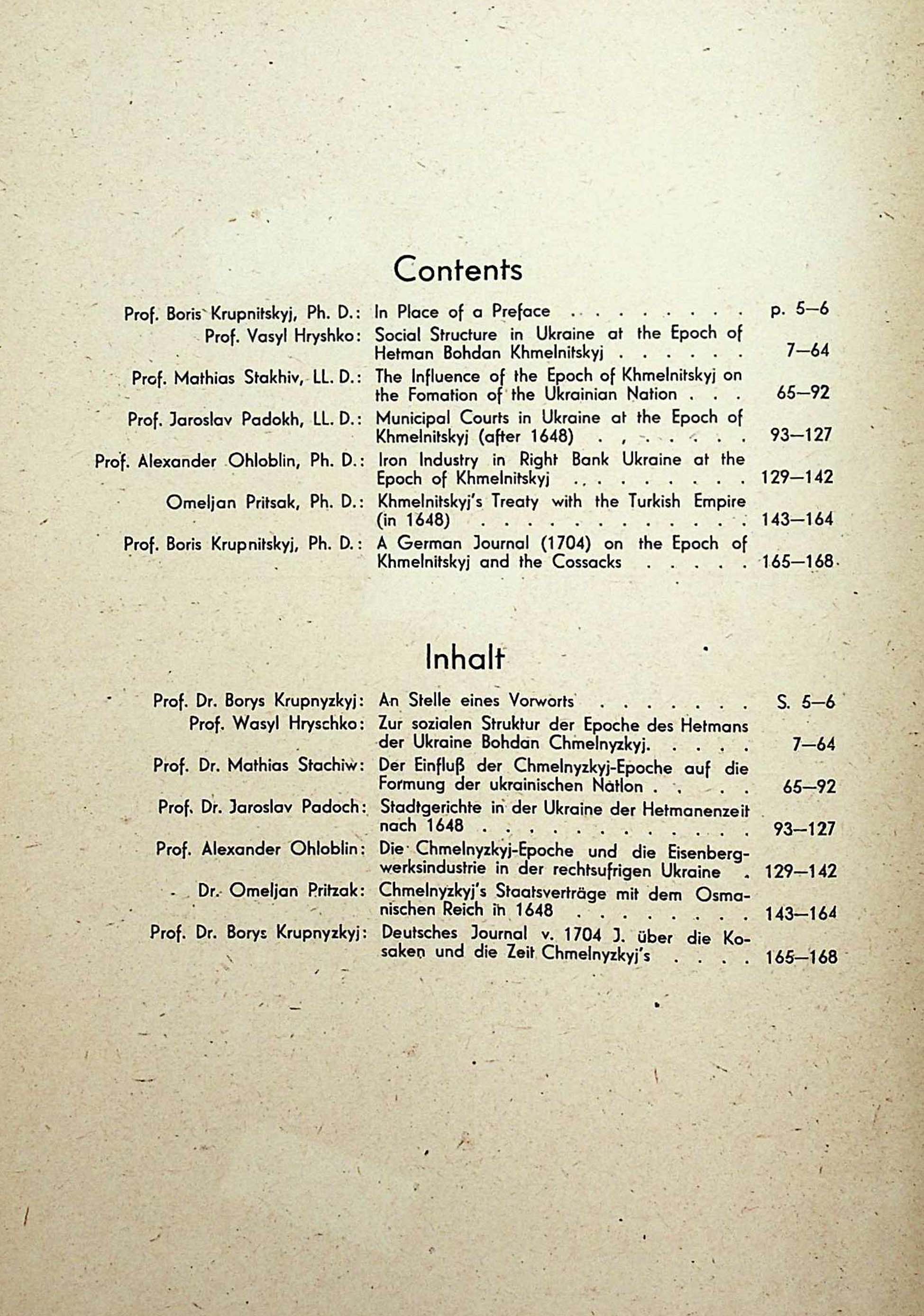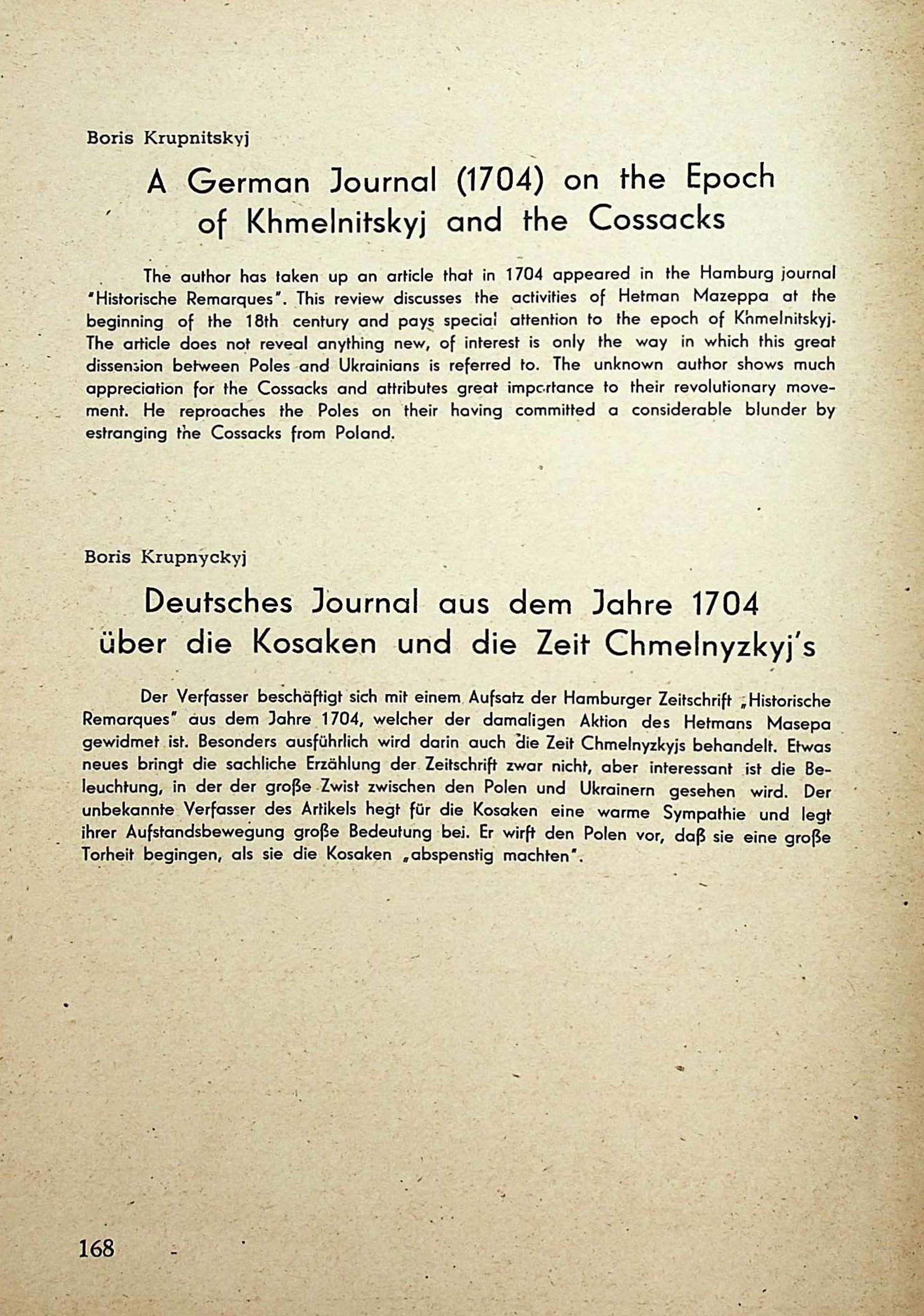 Boria Krupnitskyj. A German Journal (1704) on the Epoch of Khmelnitskyj and the Cossacks. Boris Krupnyckyj. Deutsches Journal aus dem Jahre 1704 über die Kosaken und die Zeit Chmelnyzkyj′s