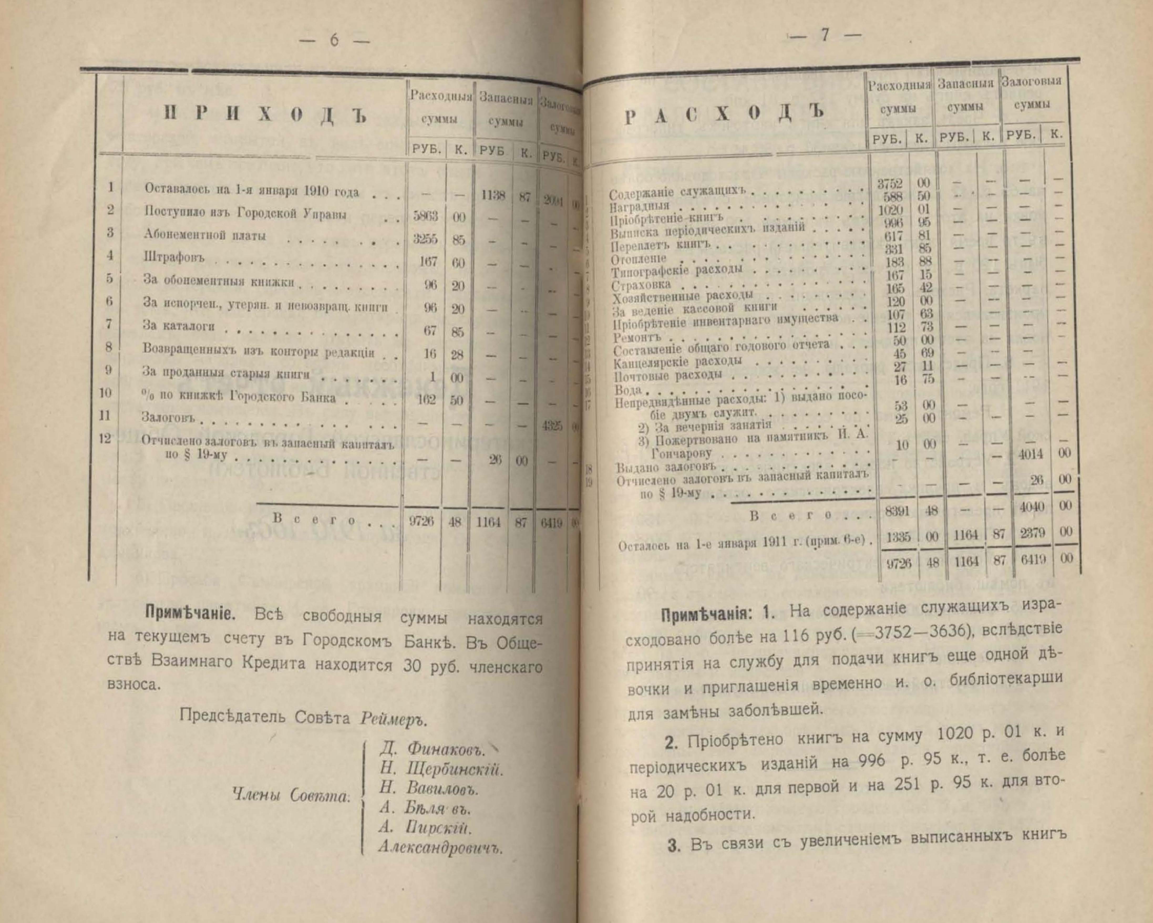 Денежный Отчетъ Екатеринославской Городской Общественной Библіотеки за 1910 годъ