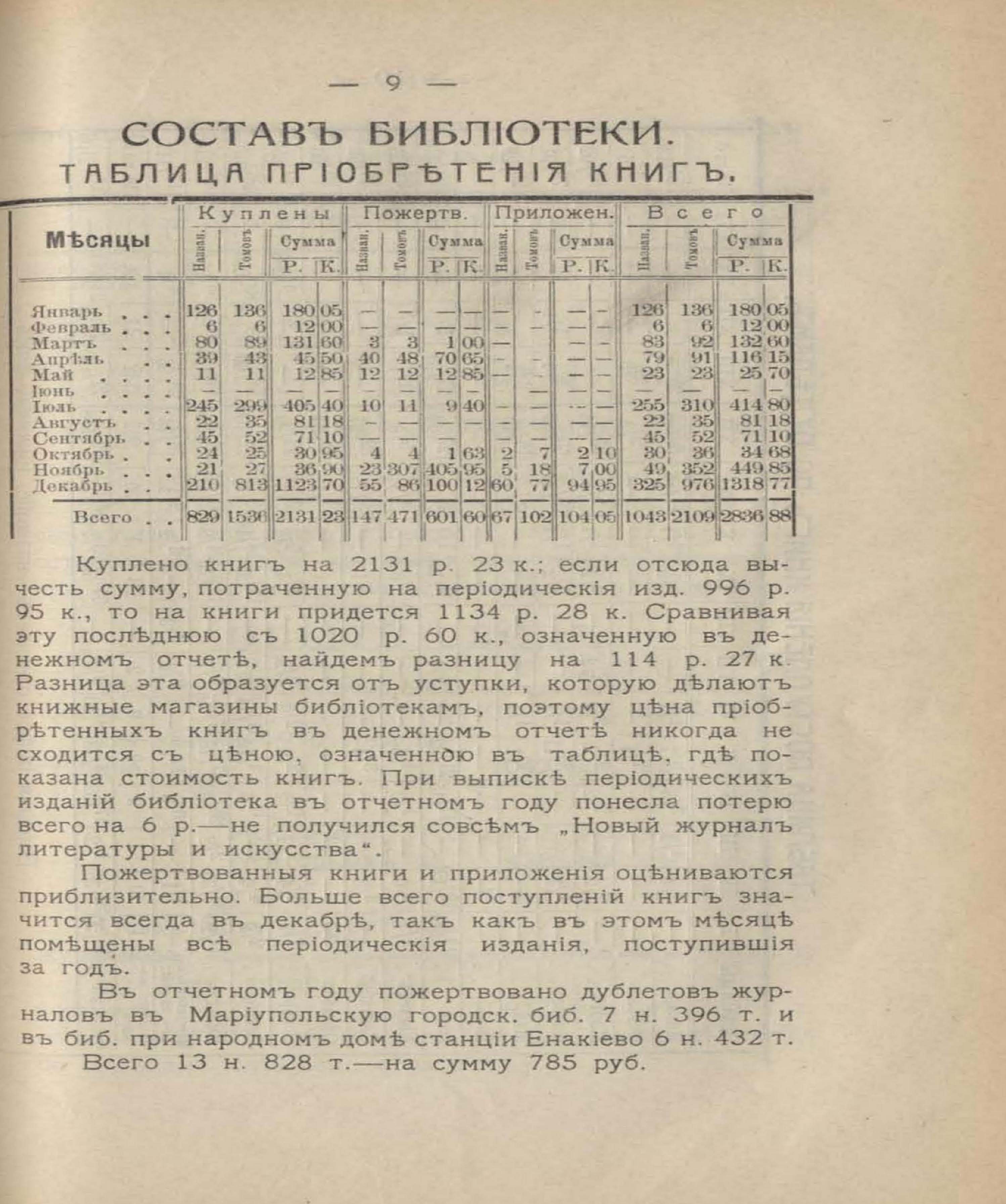 9. Денежный Отчетъ Екатеринославской Городской Общественной Библіотеки за 1910 годъ