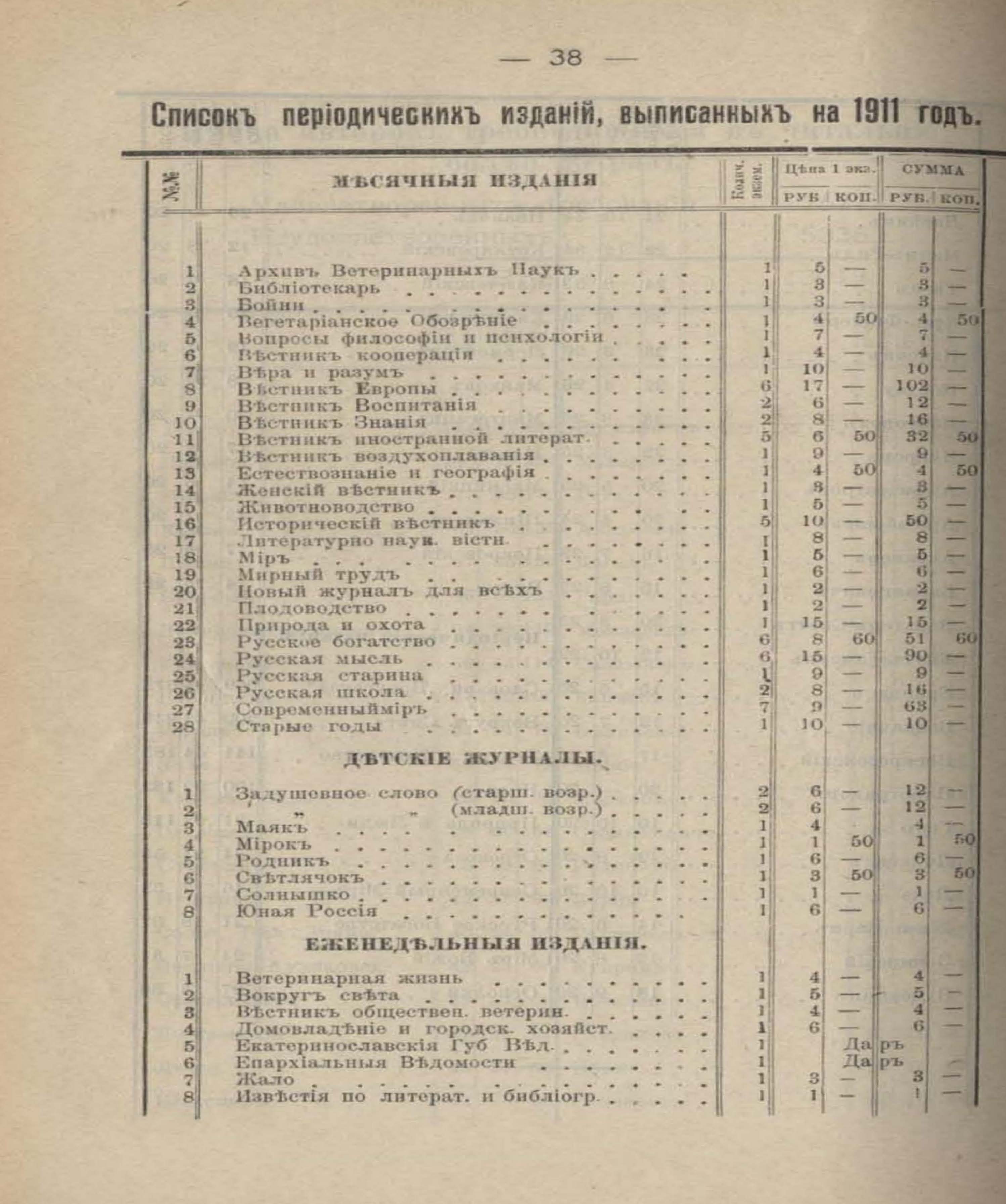 Списокъ періодическихъ изданій, выписанныхъ на 1911 годъ