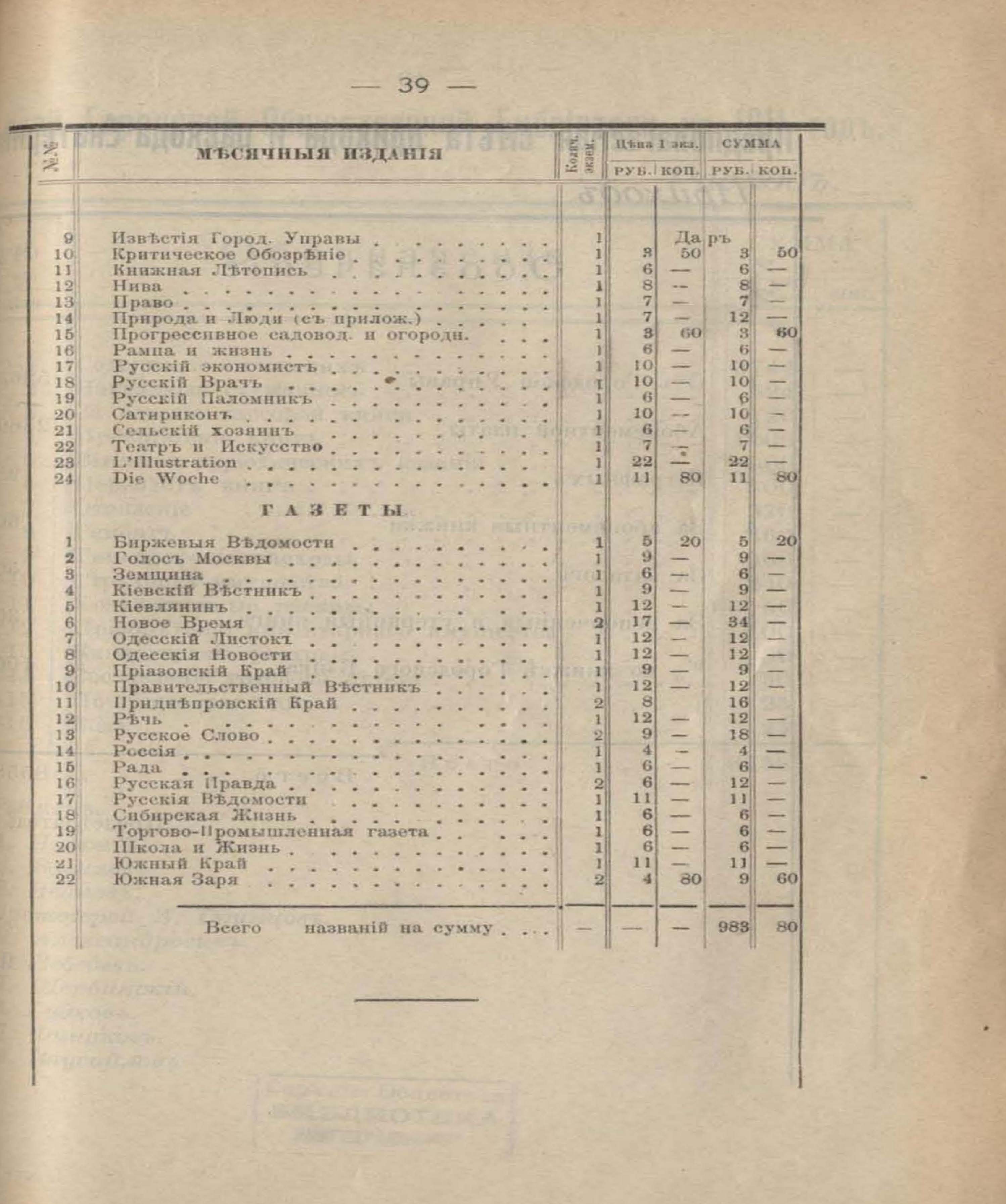 41. Списокъ періодическихъ изданій, выписанныхъ на 1911 годъ