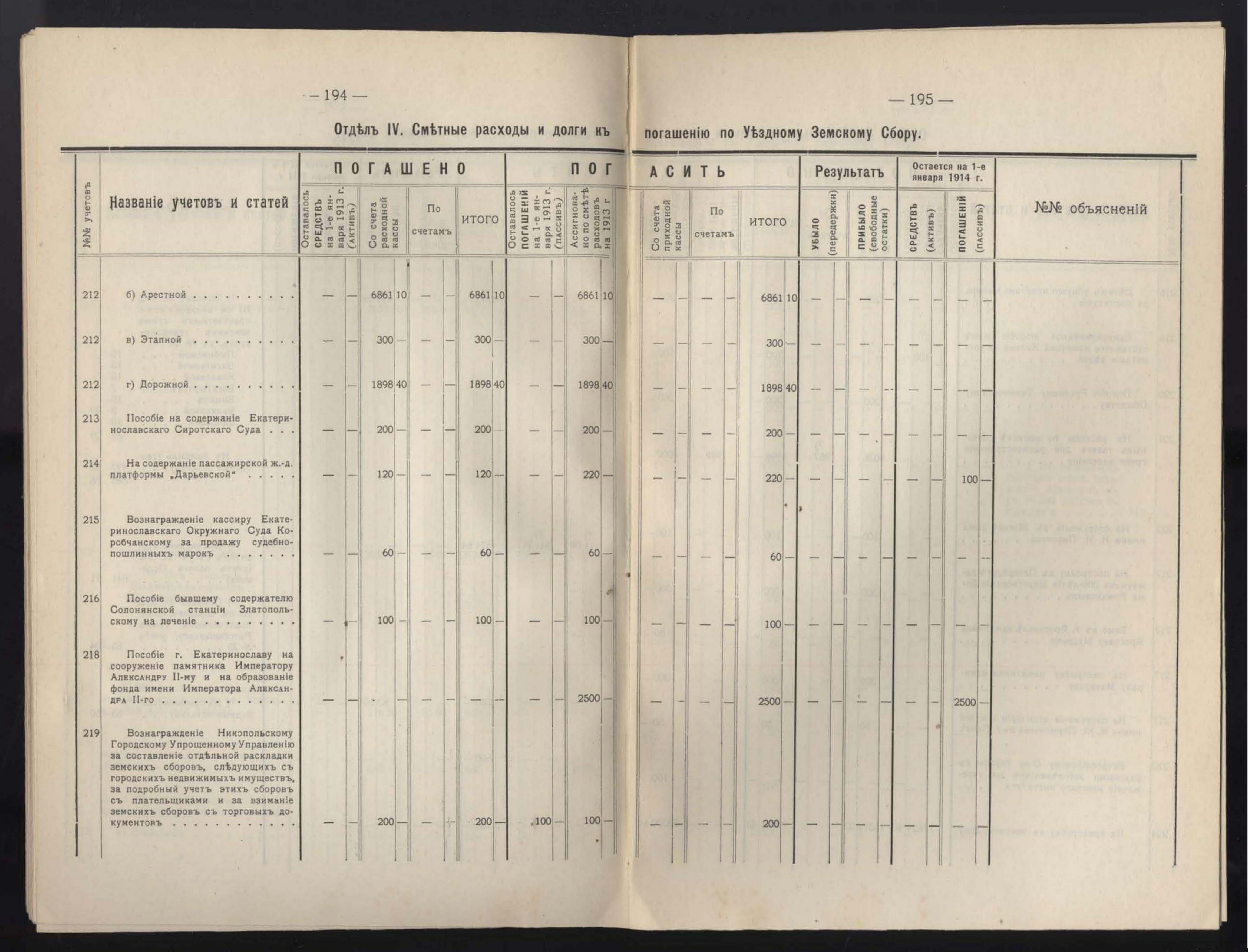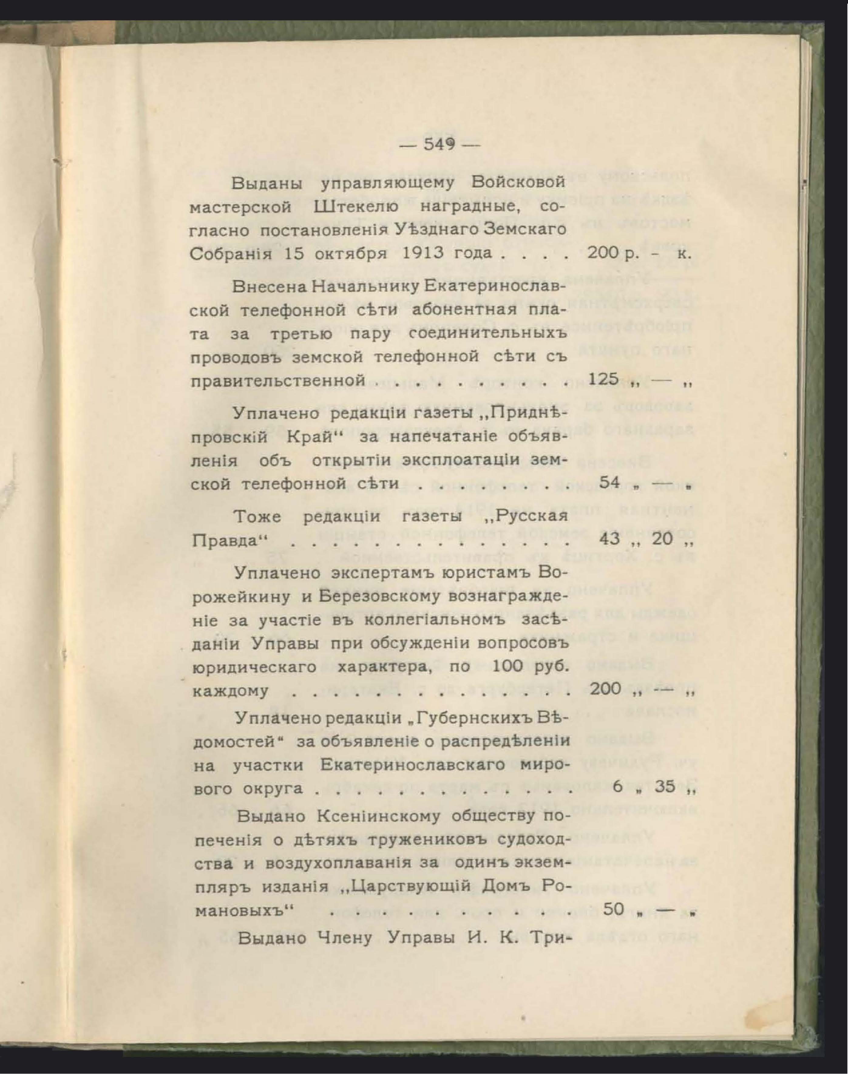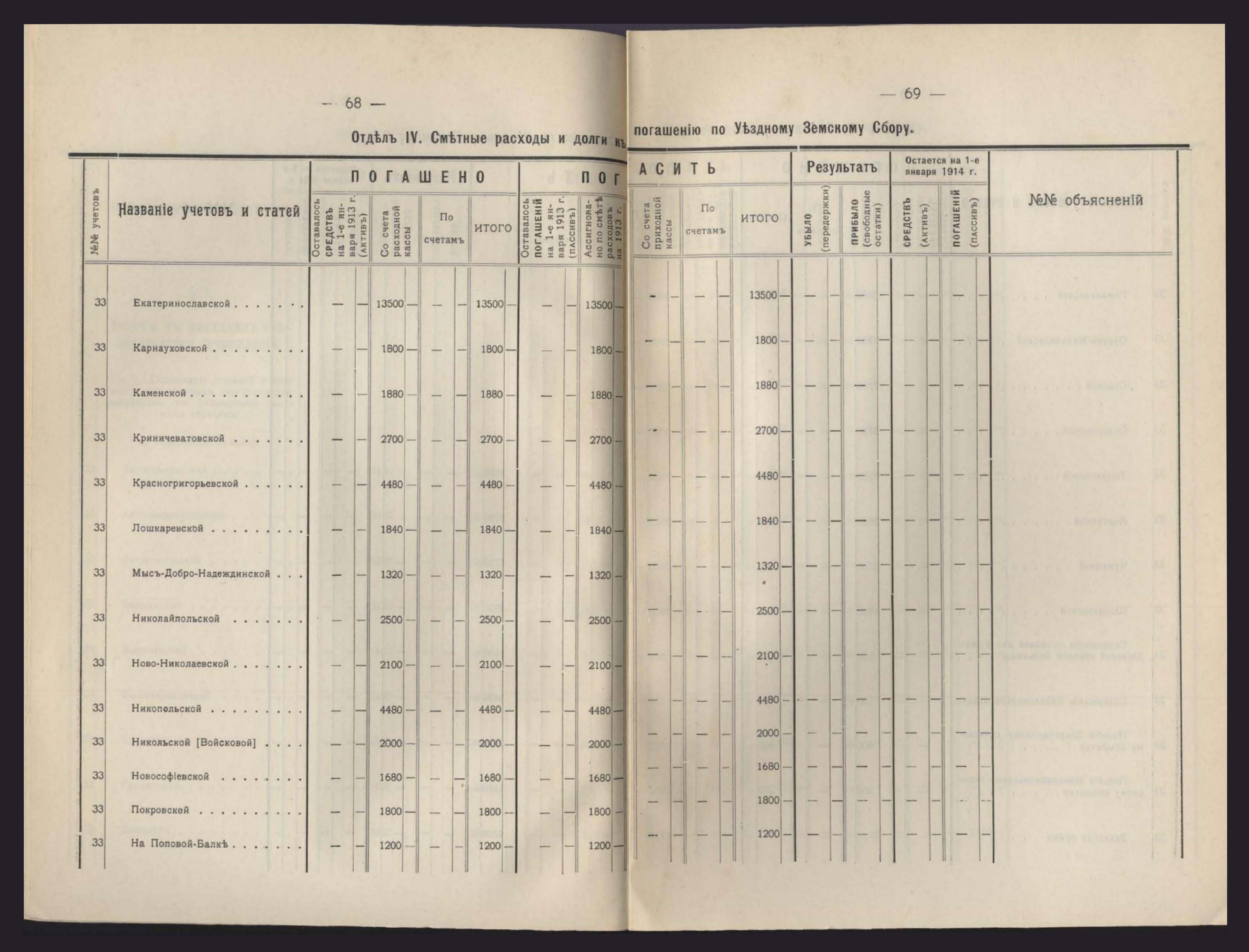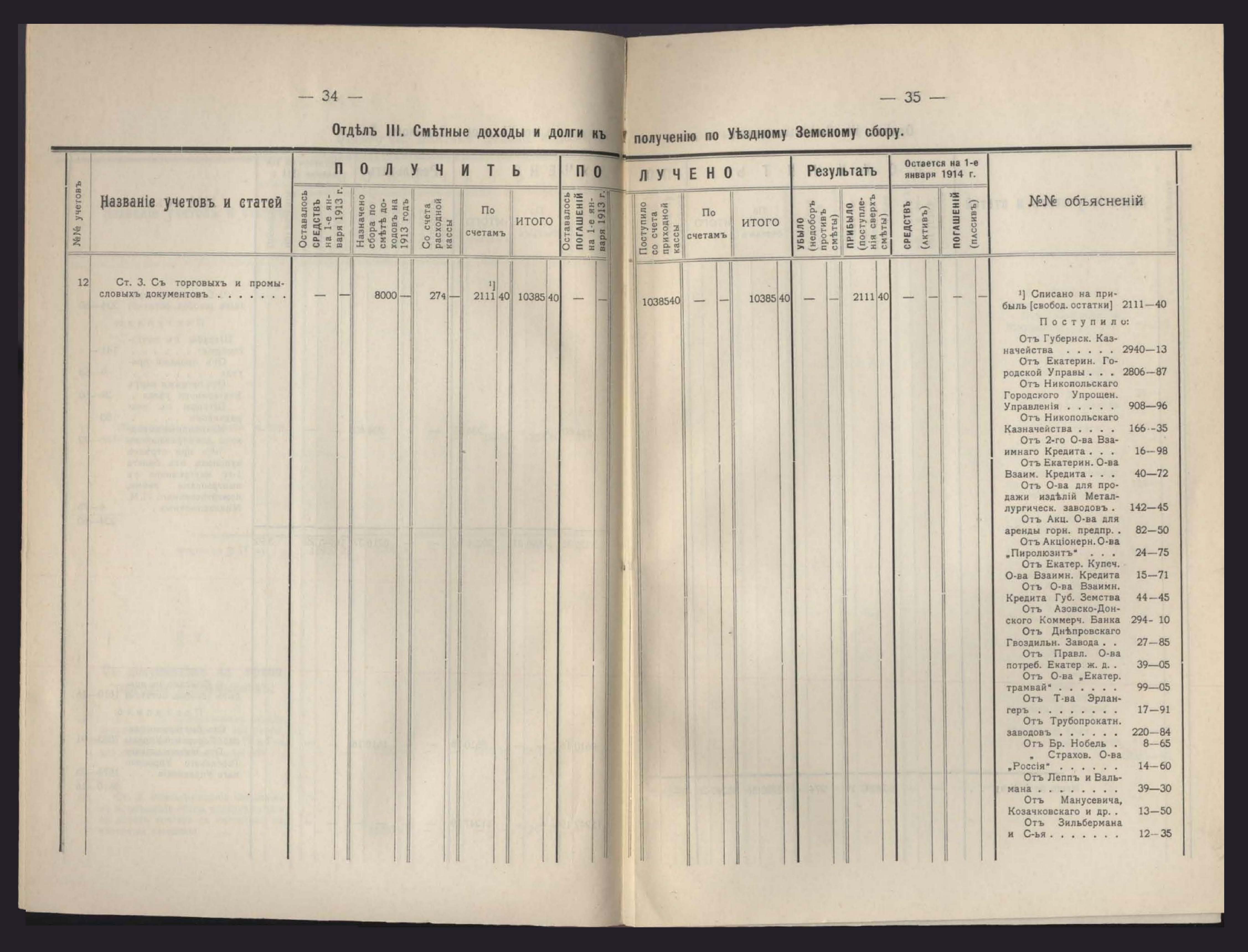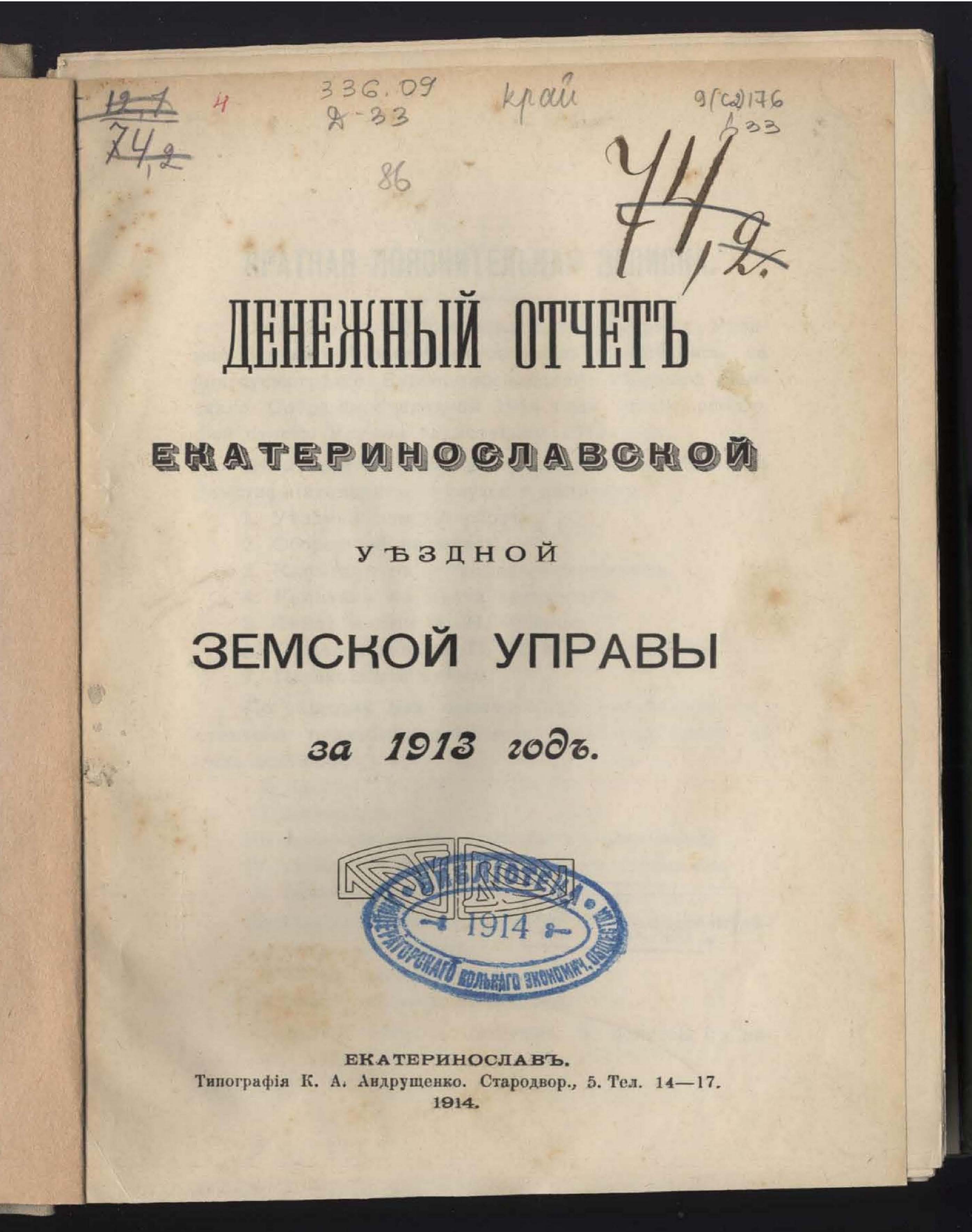 Денежный Отчетъ Екатеринославской Уездной Земской Управы за 1913 годъ