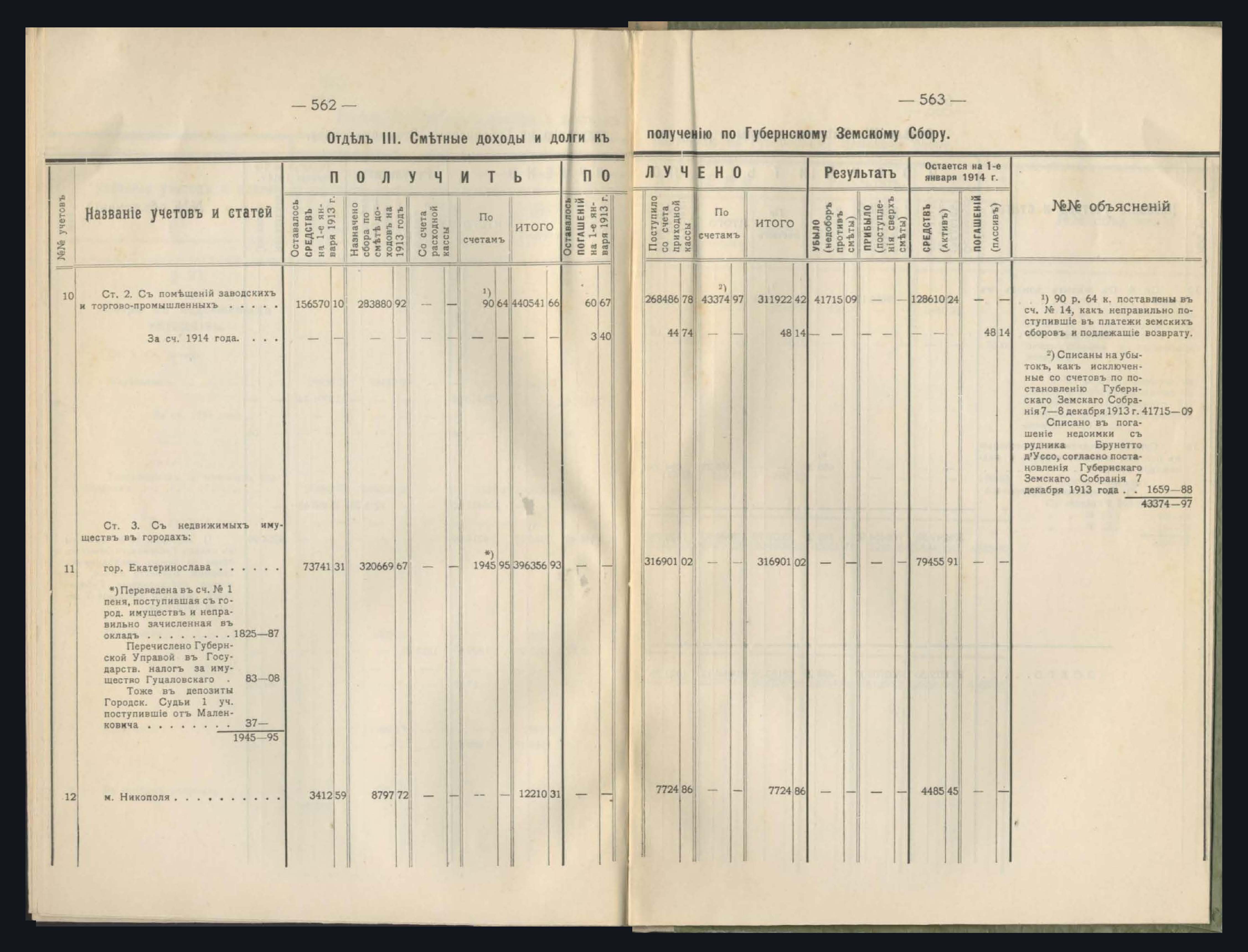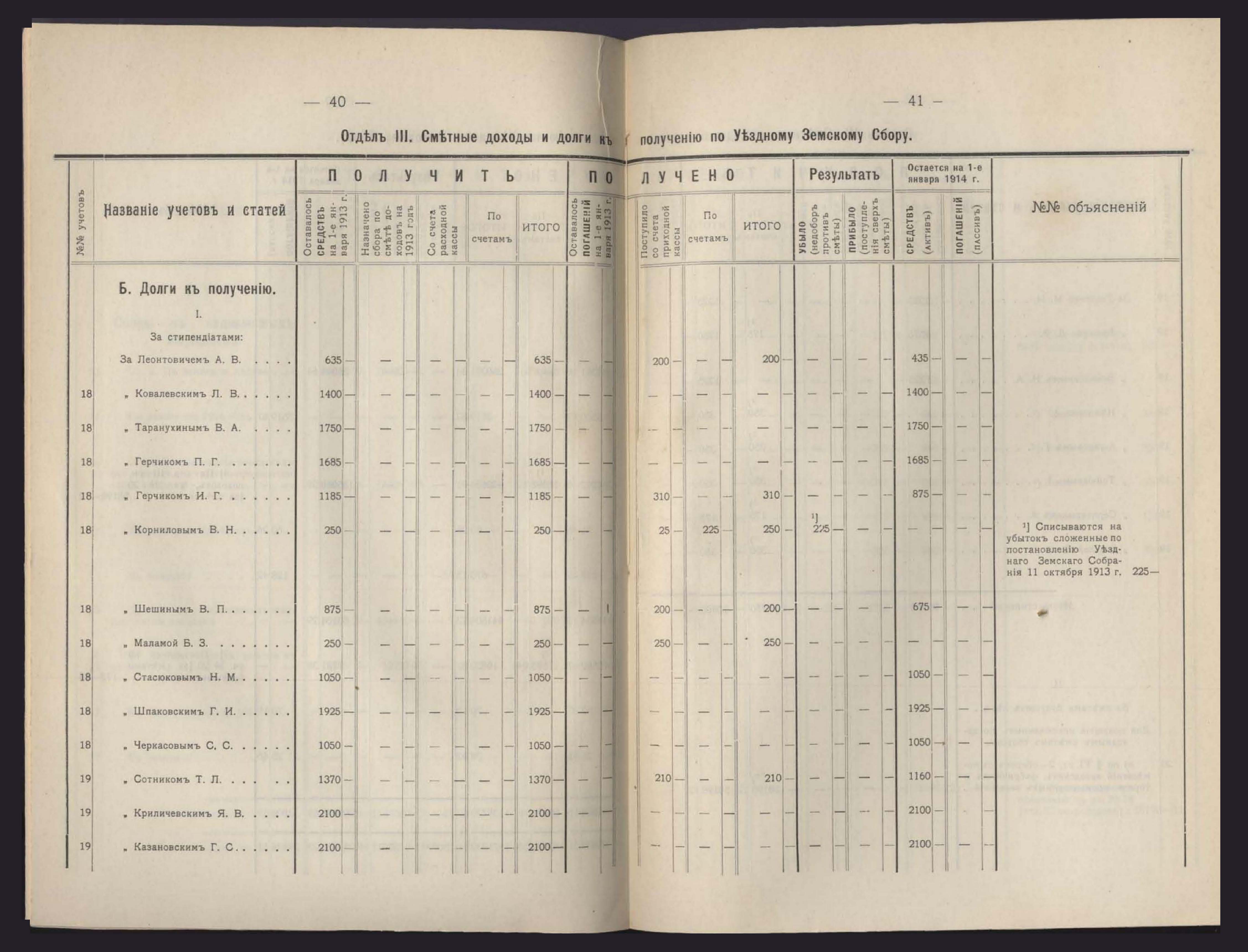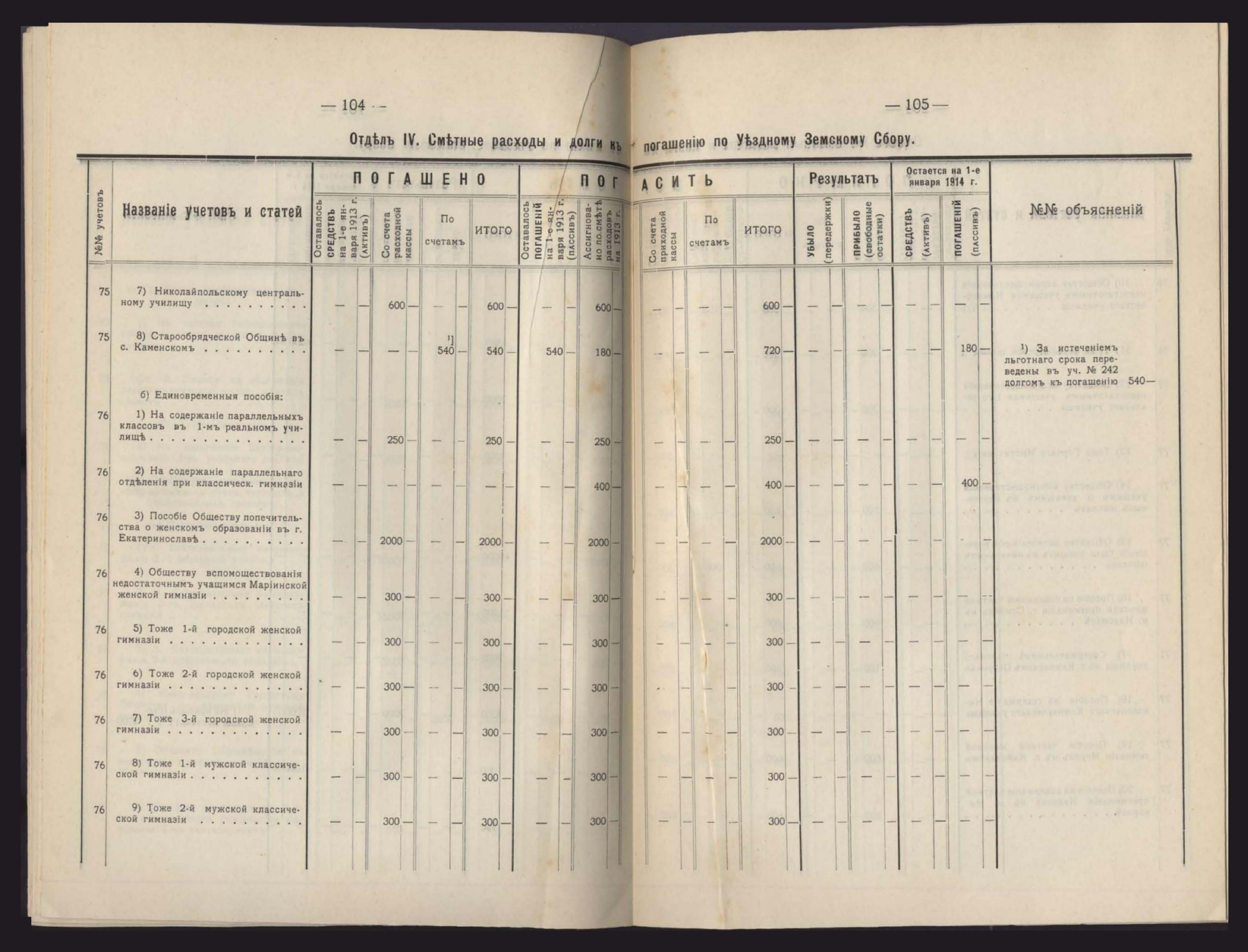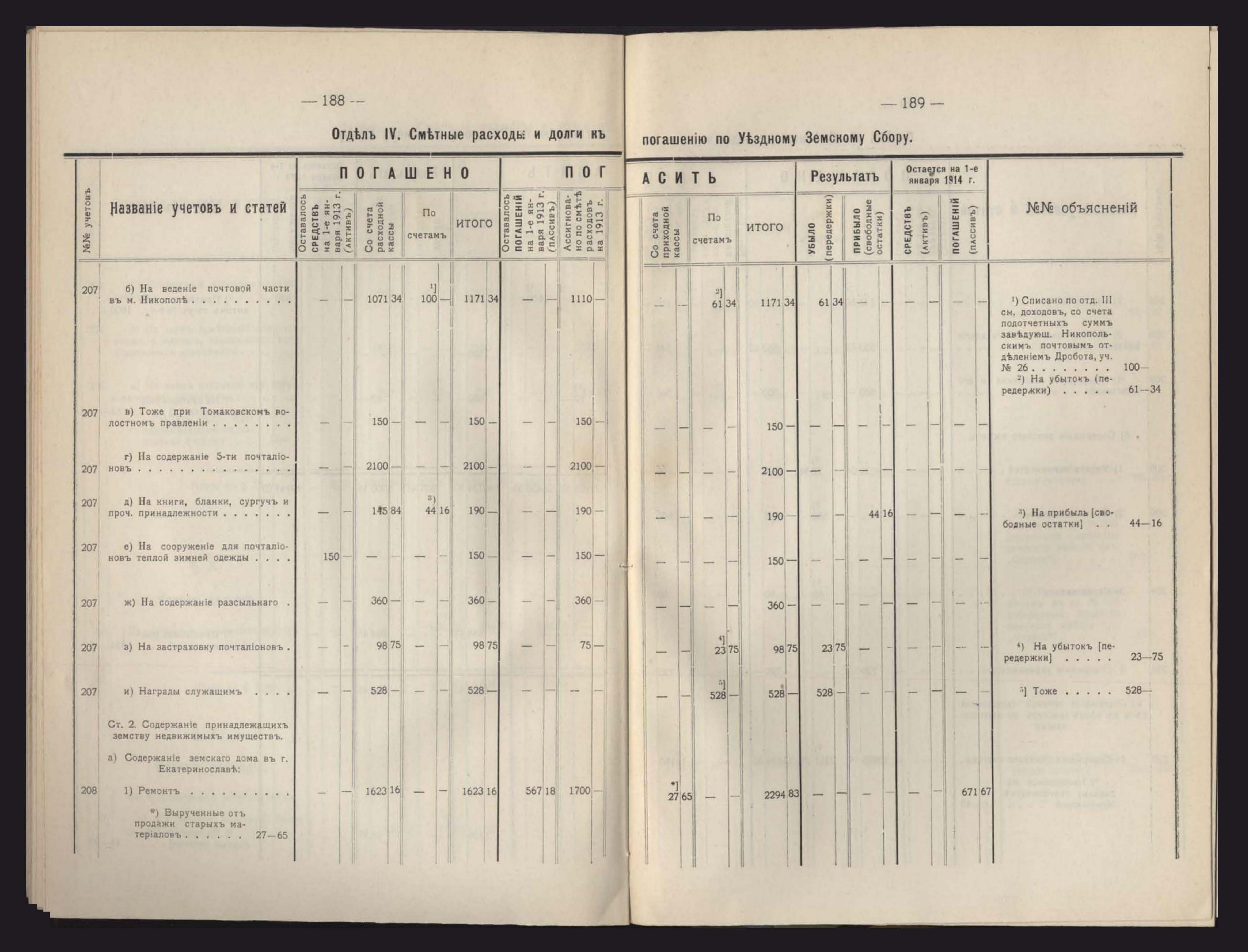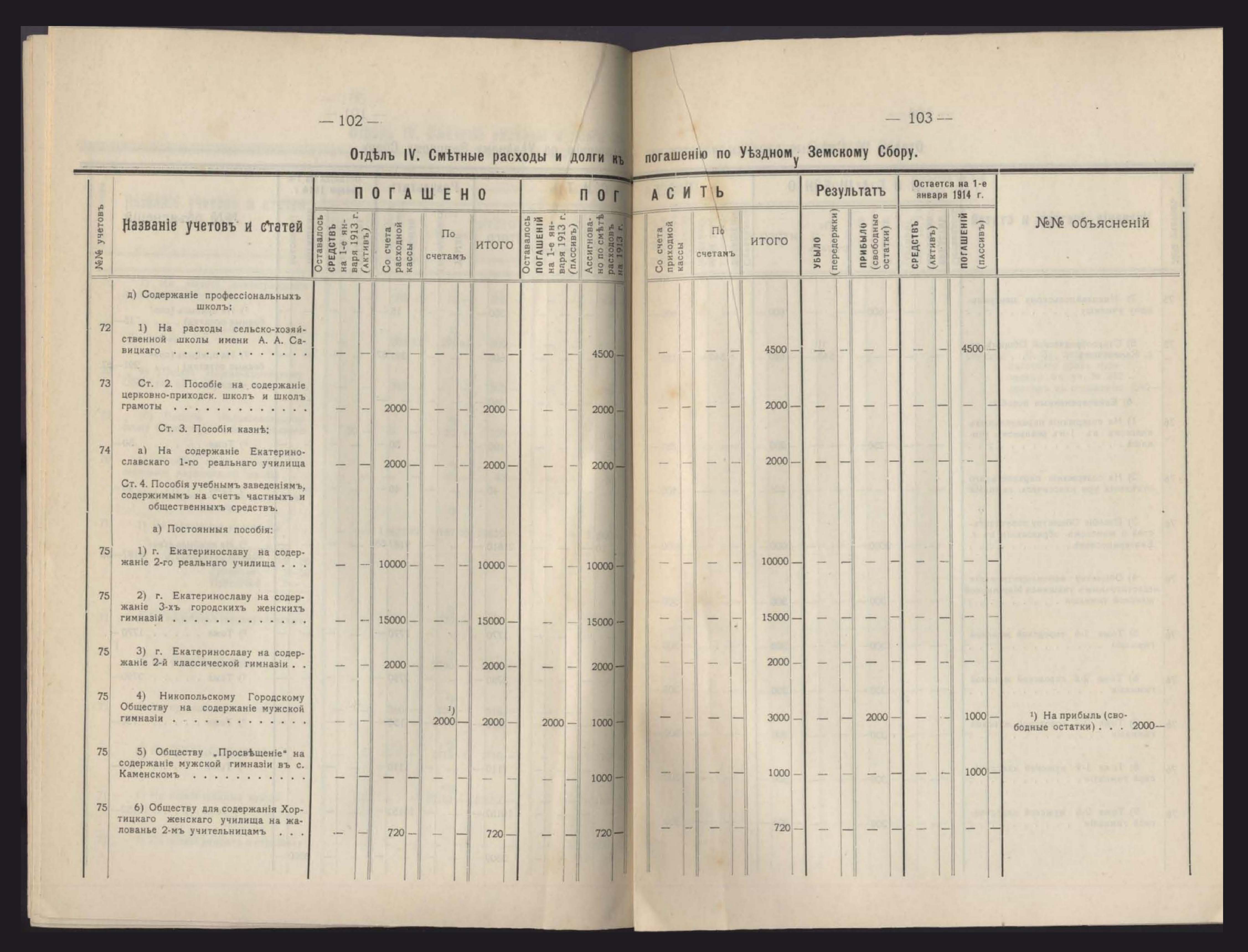 Денежный Отчетъ Екатеринославской Уездной Земской Управы за 1913 годъ
