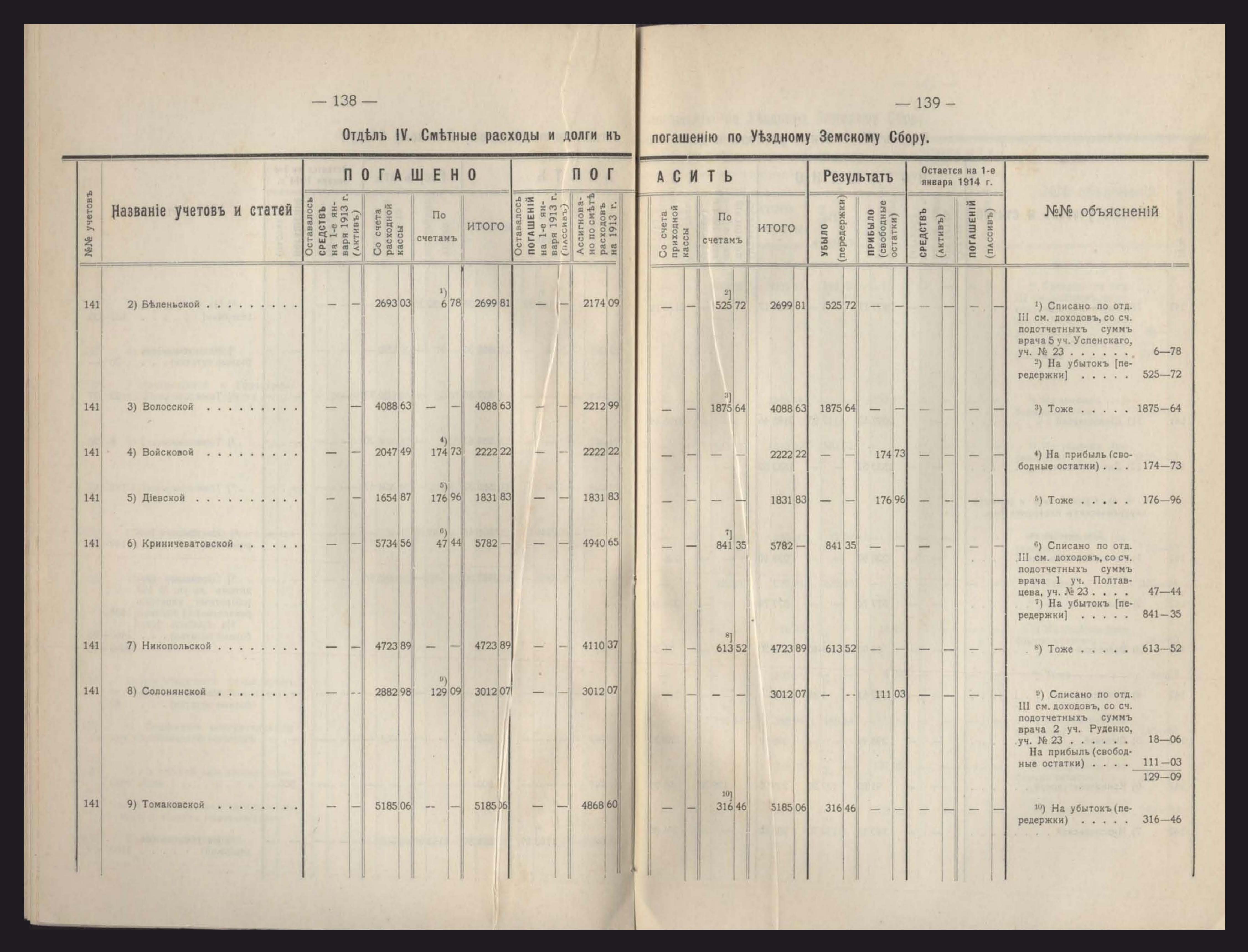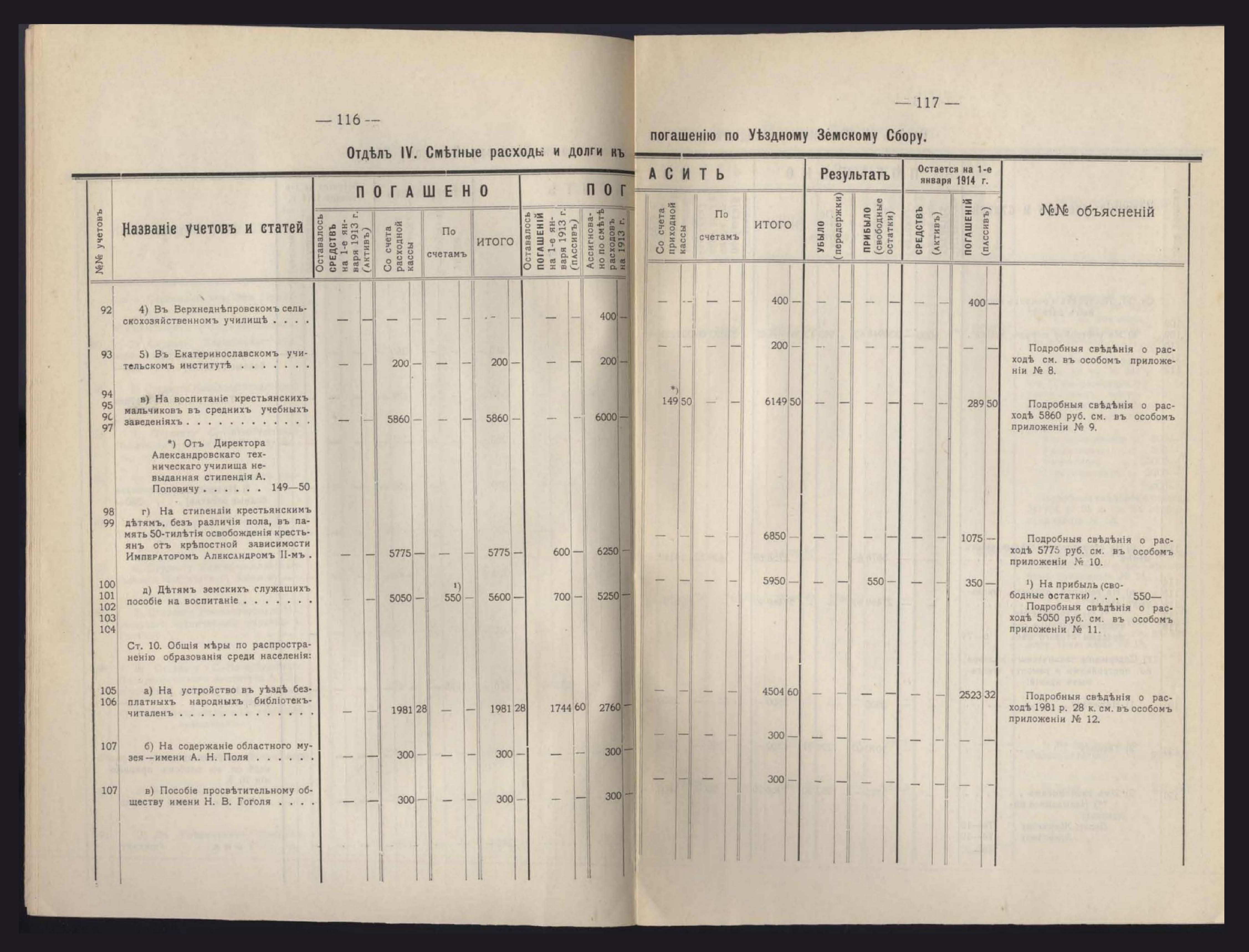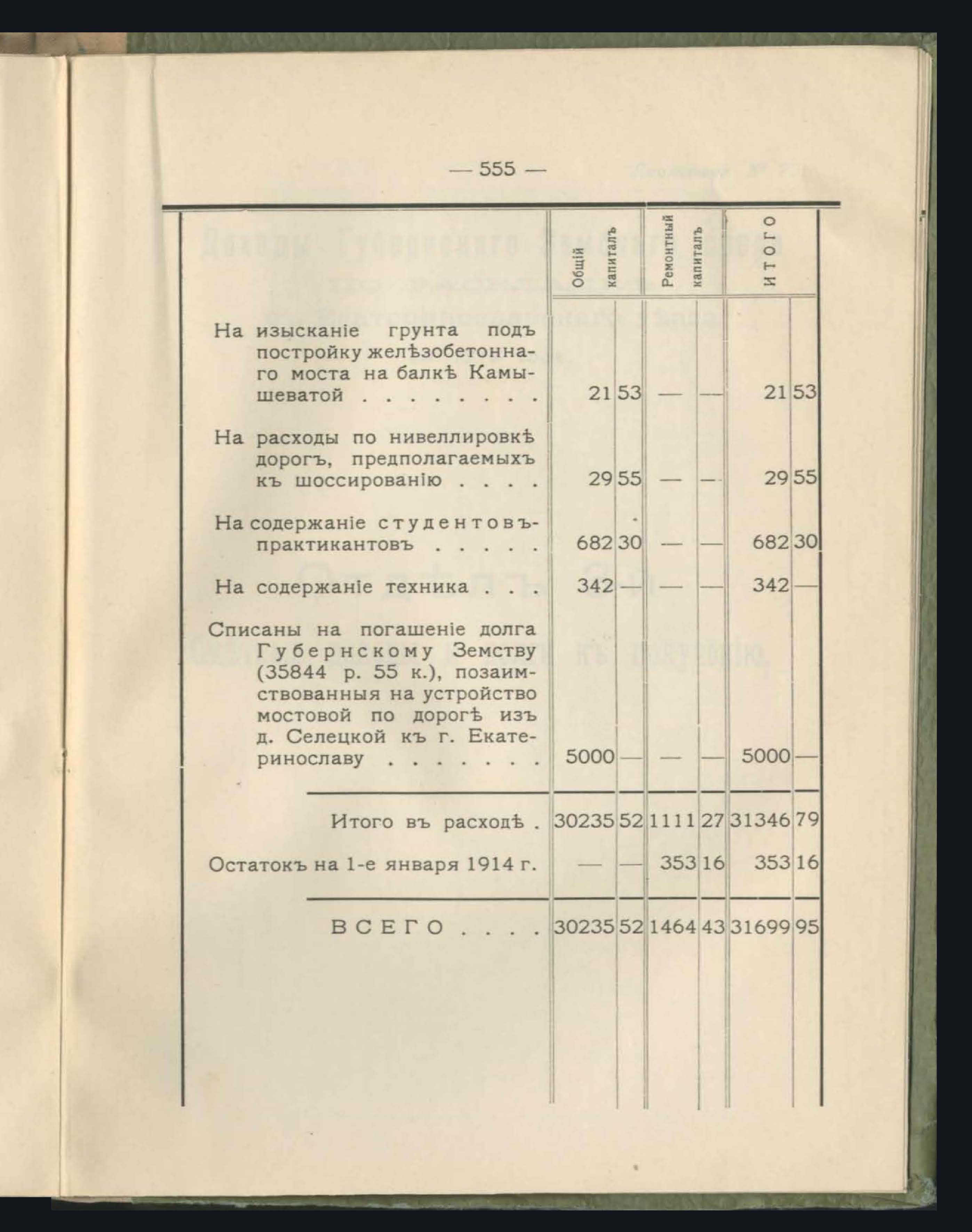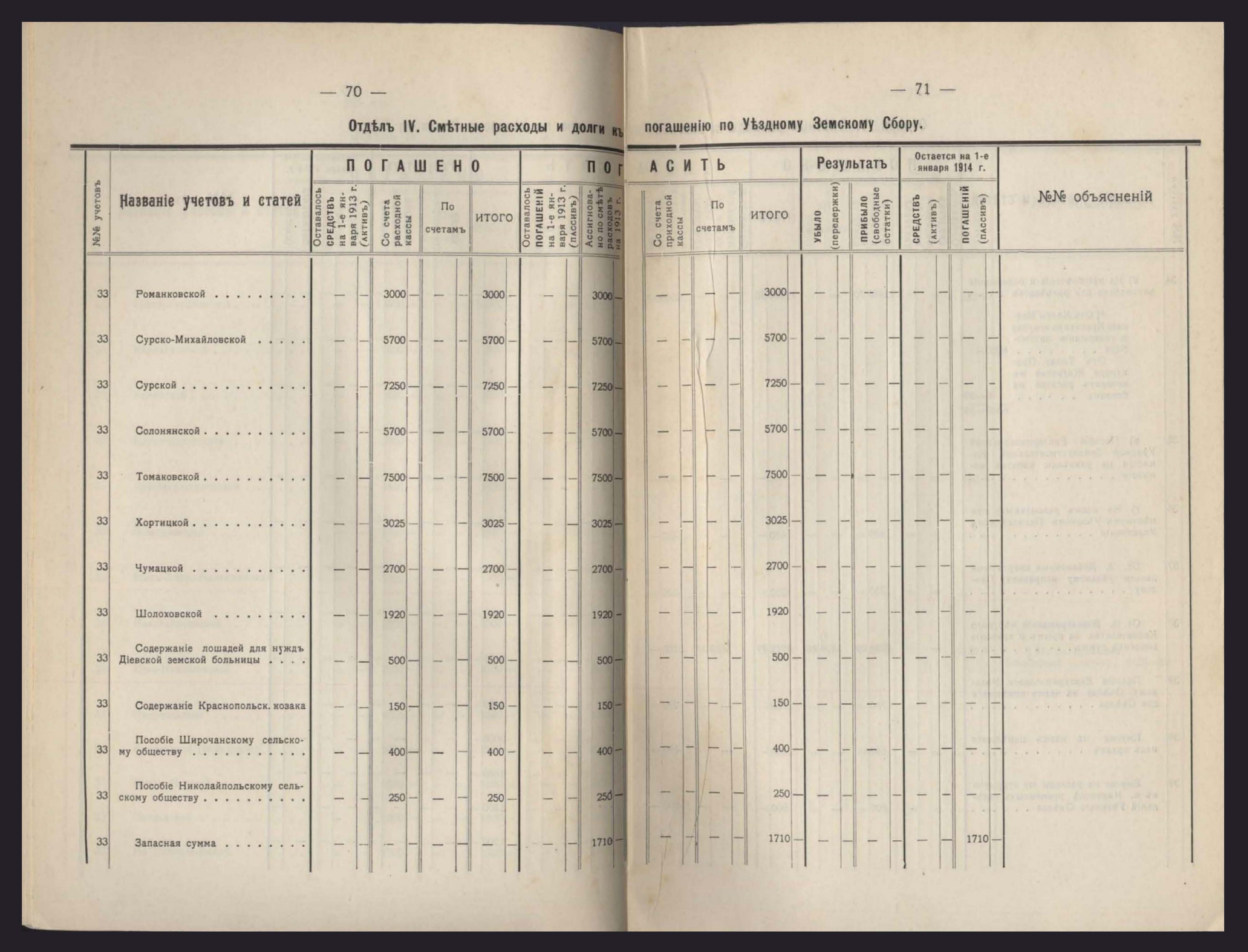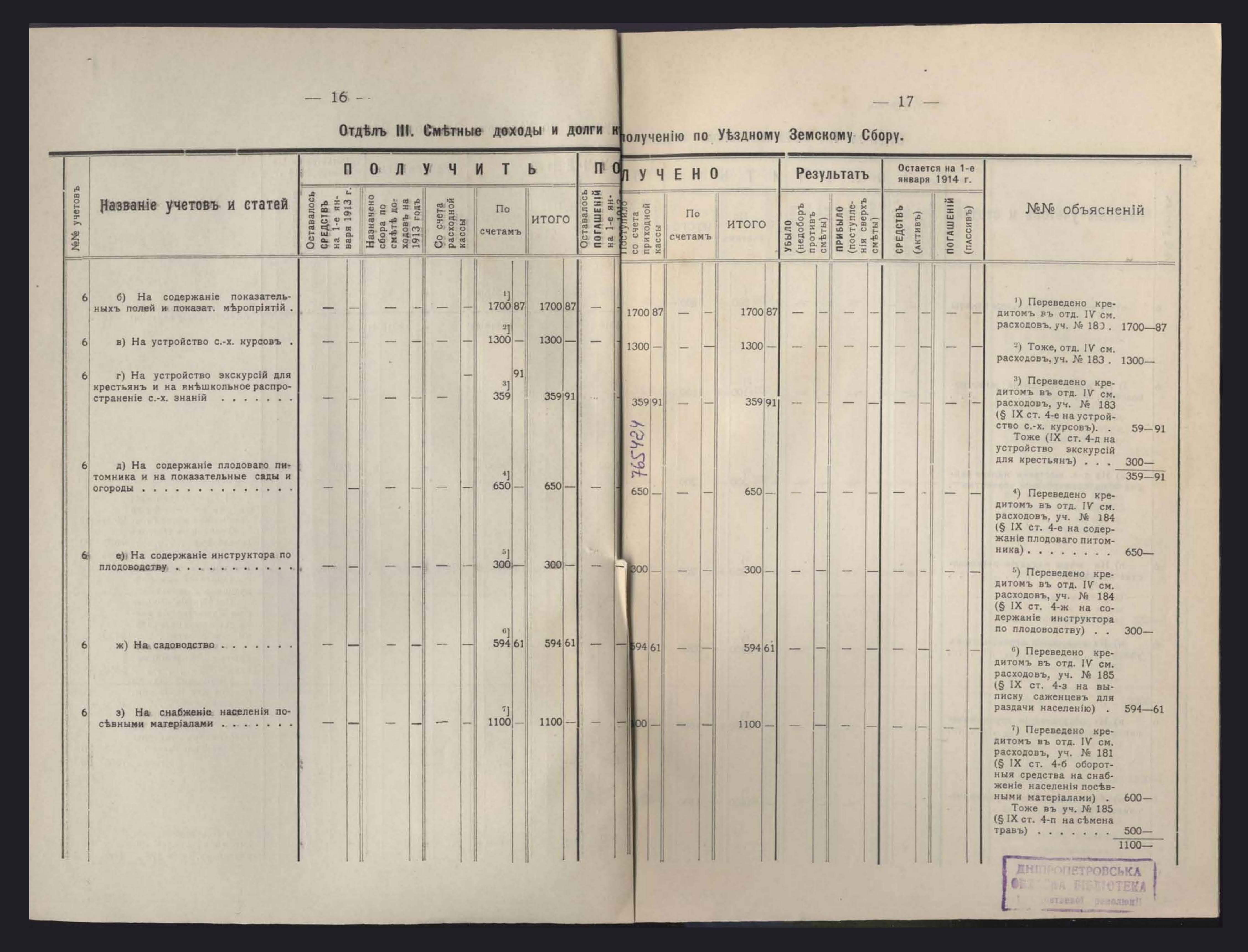 Денежный Отчетъ Екатеринославской Уездной Земской Управы за 1913 годъ