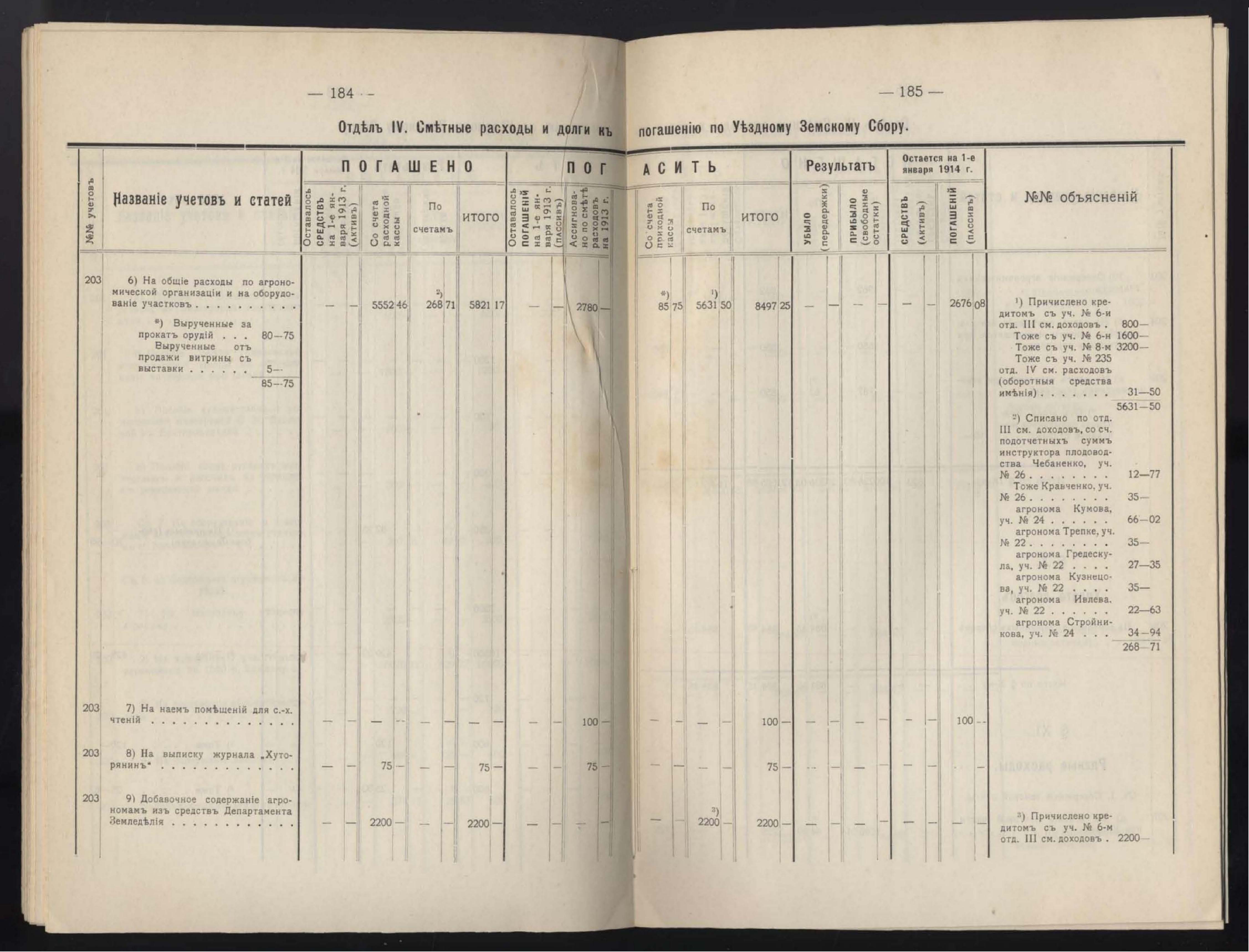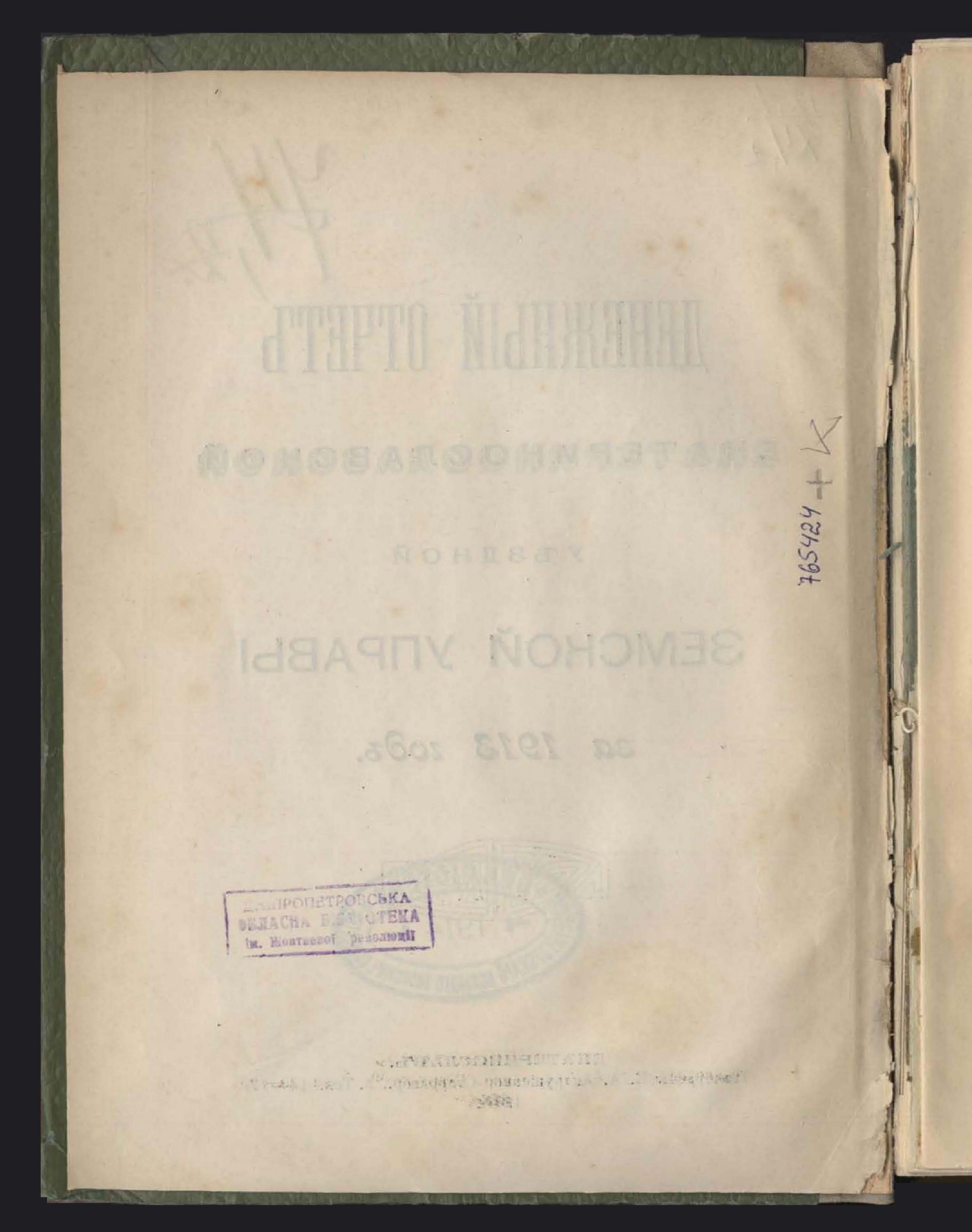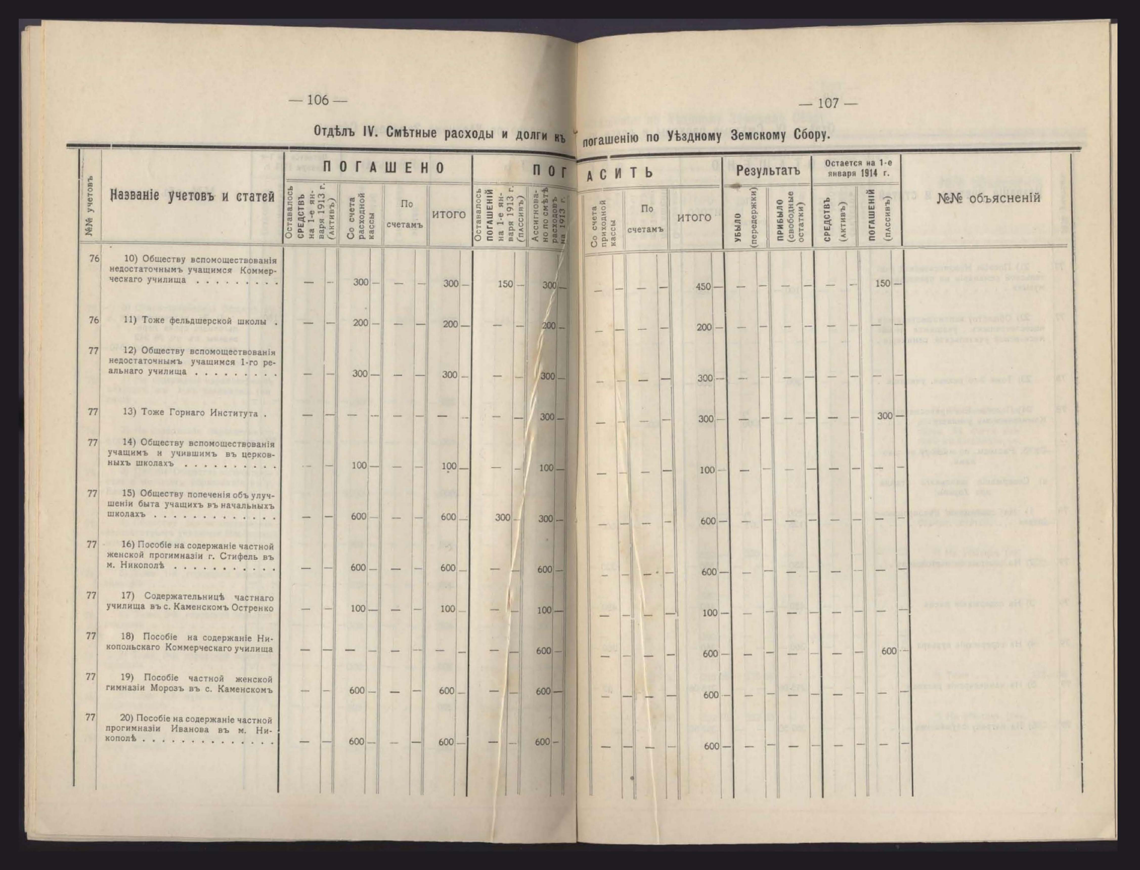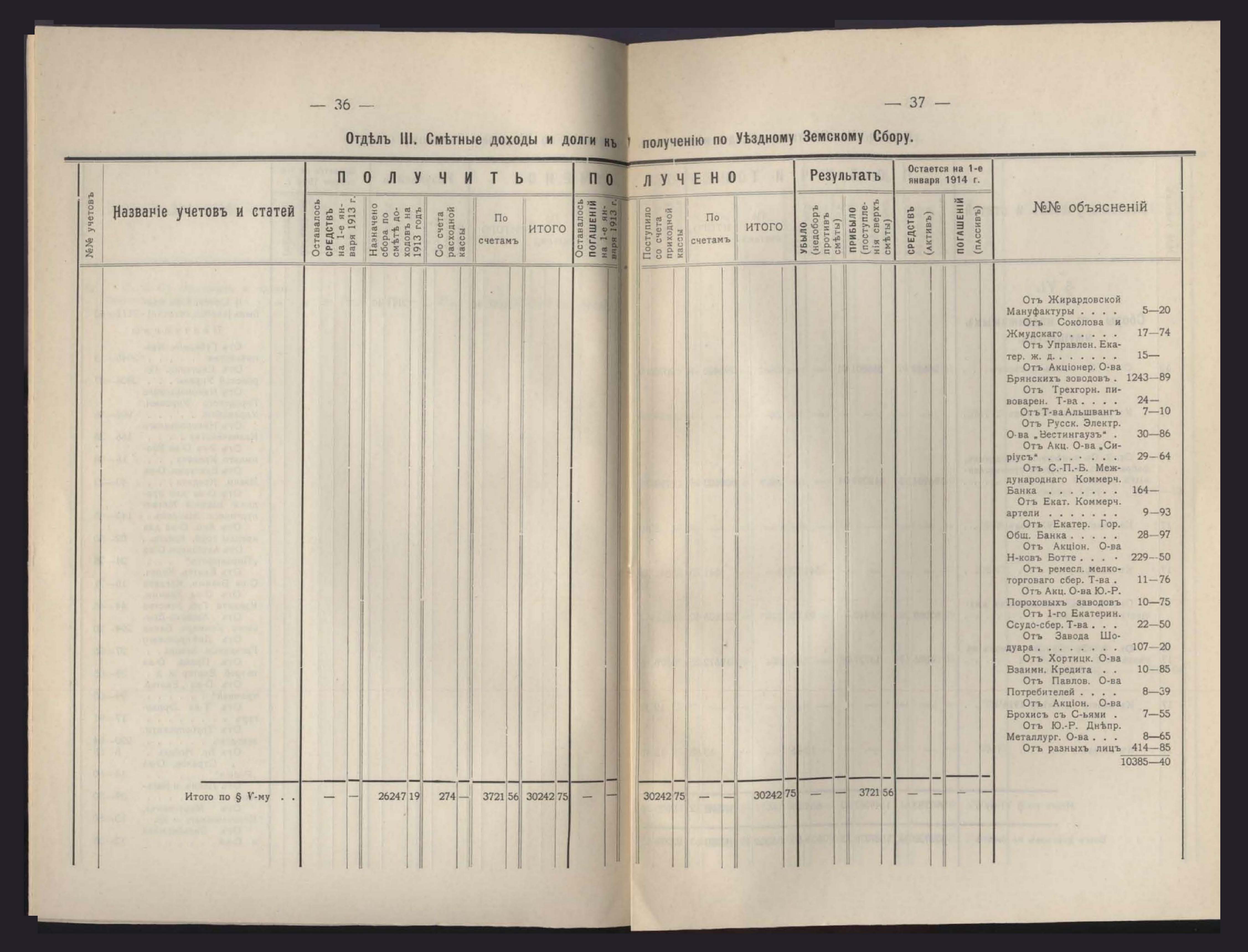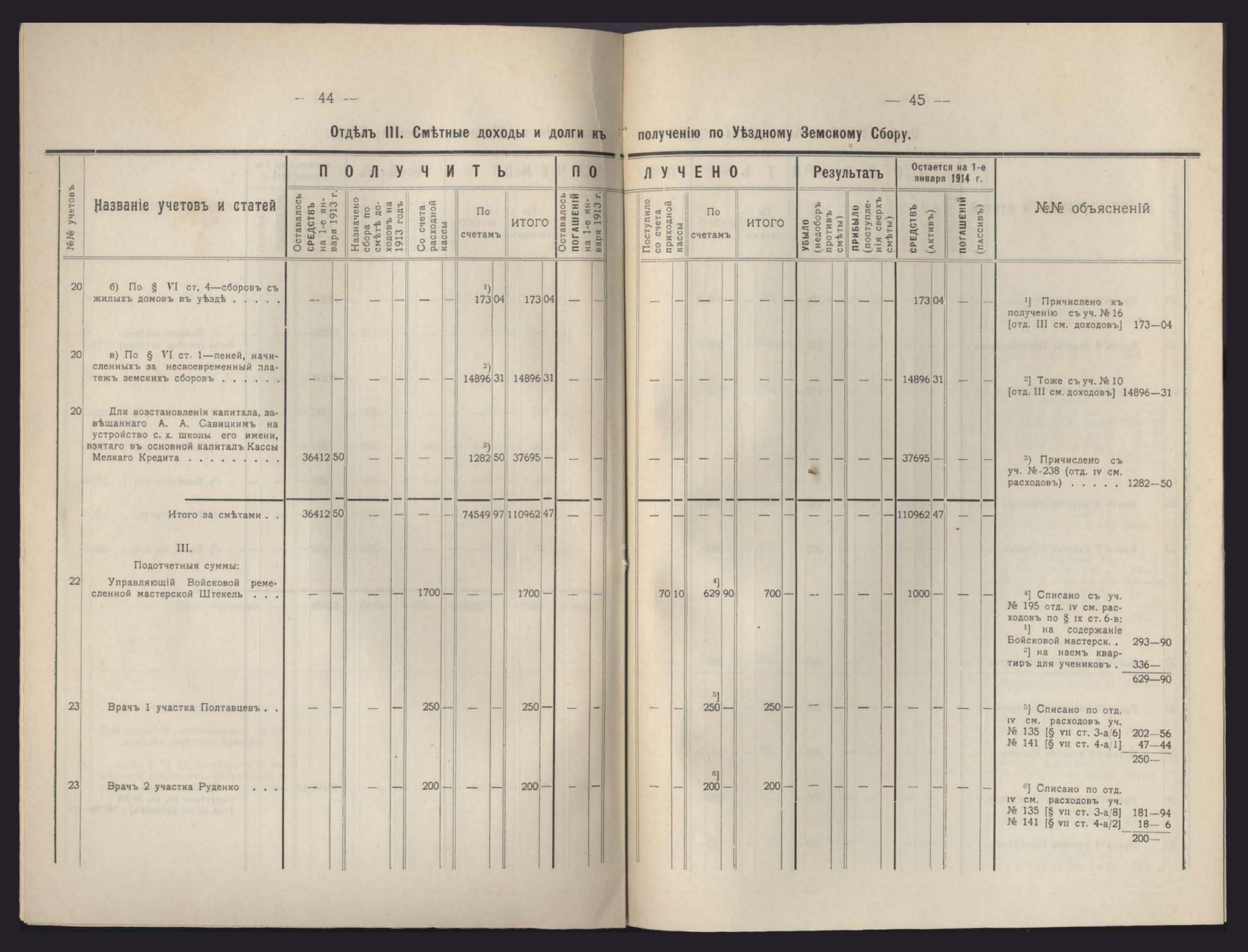 Денежный Отчетъ Екатеринославской Уездной Земской Управы за 1913 годъ