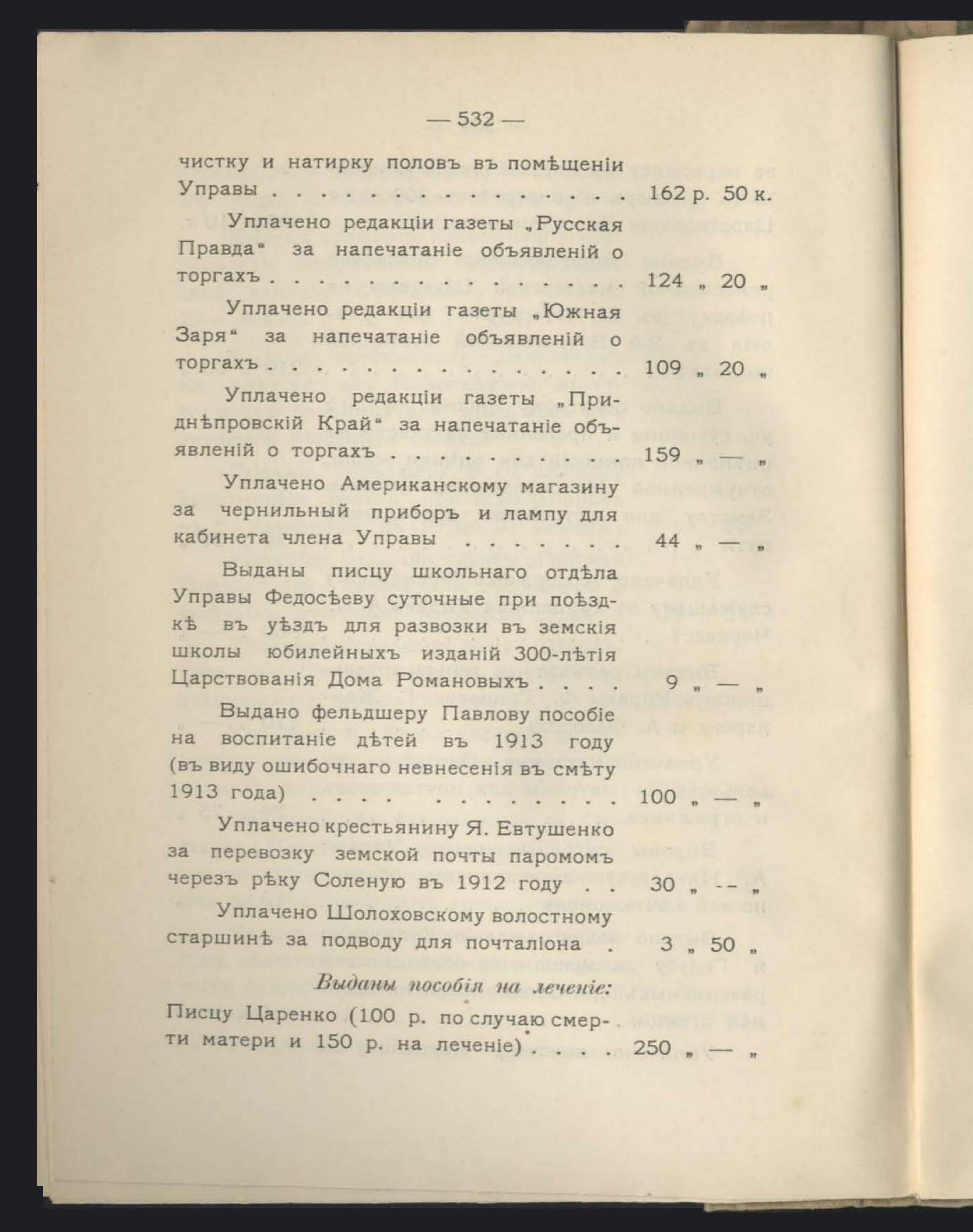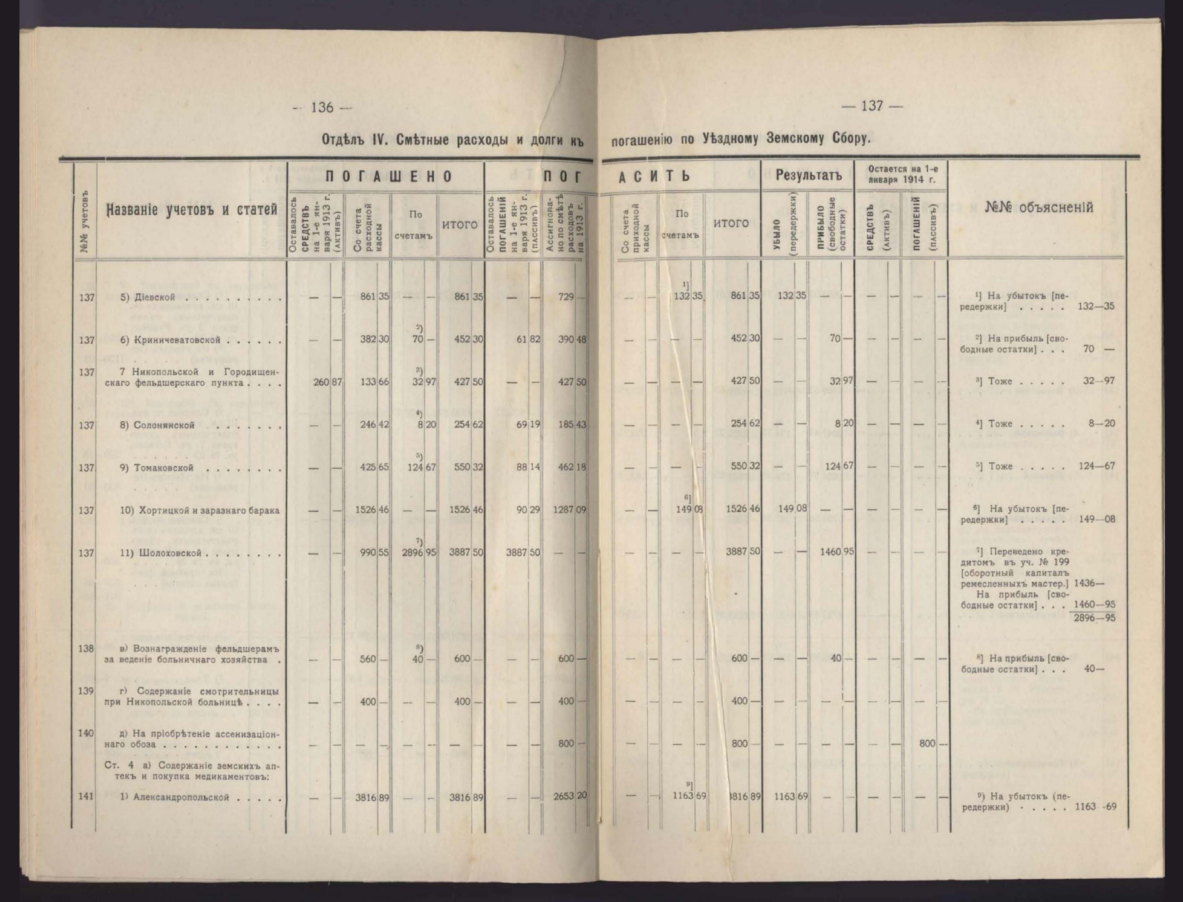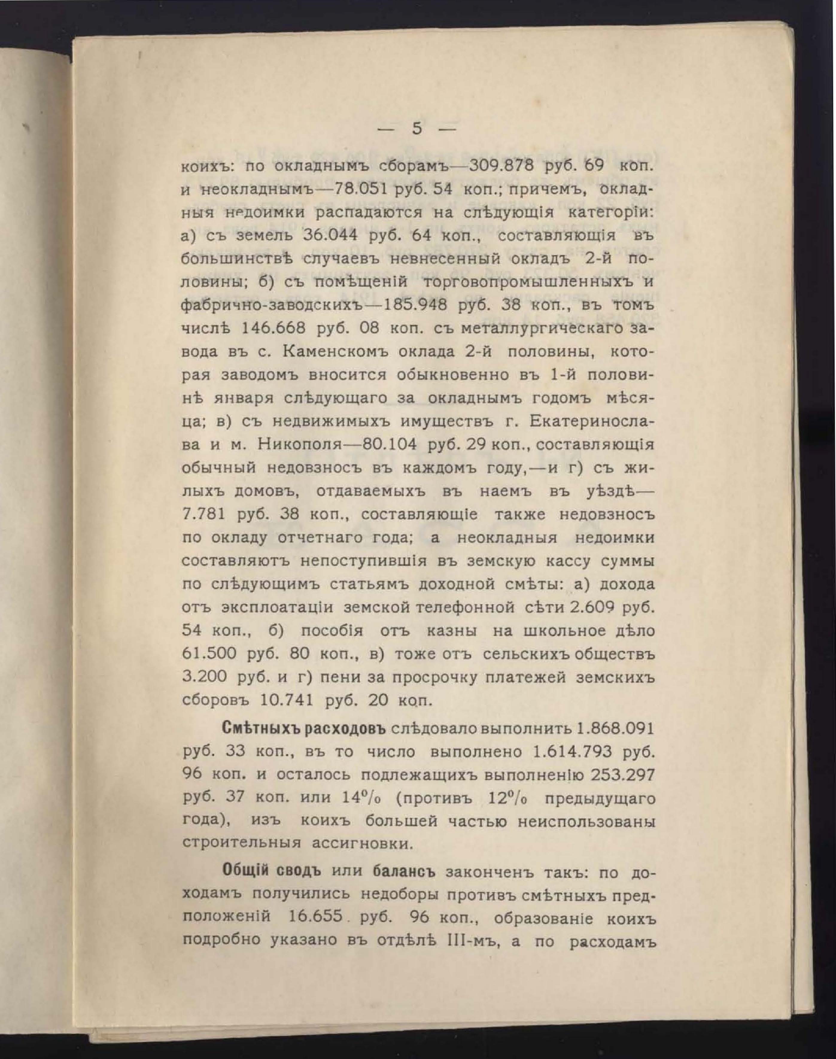 5. Денежный Отчетъ Екатеринославской Уездной Земской Управы за 1913 годъ