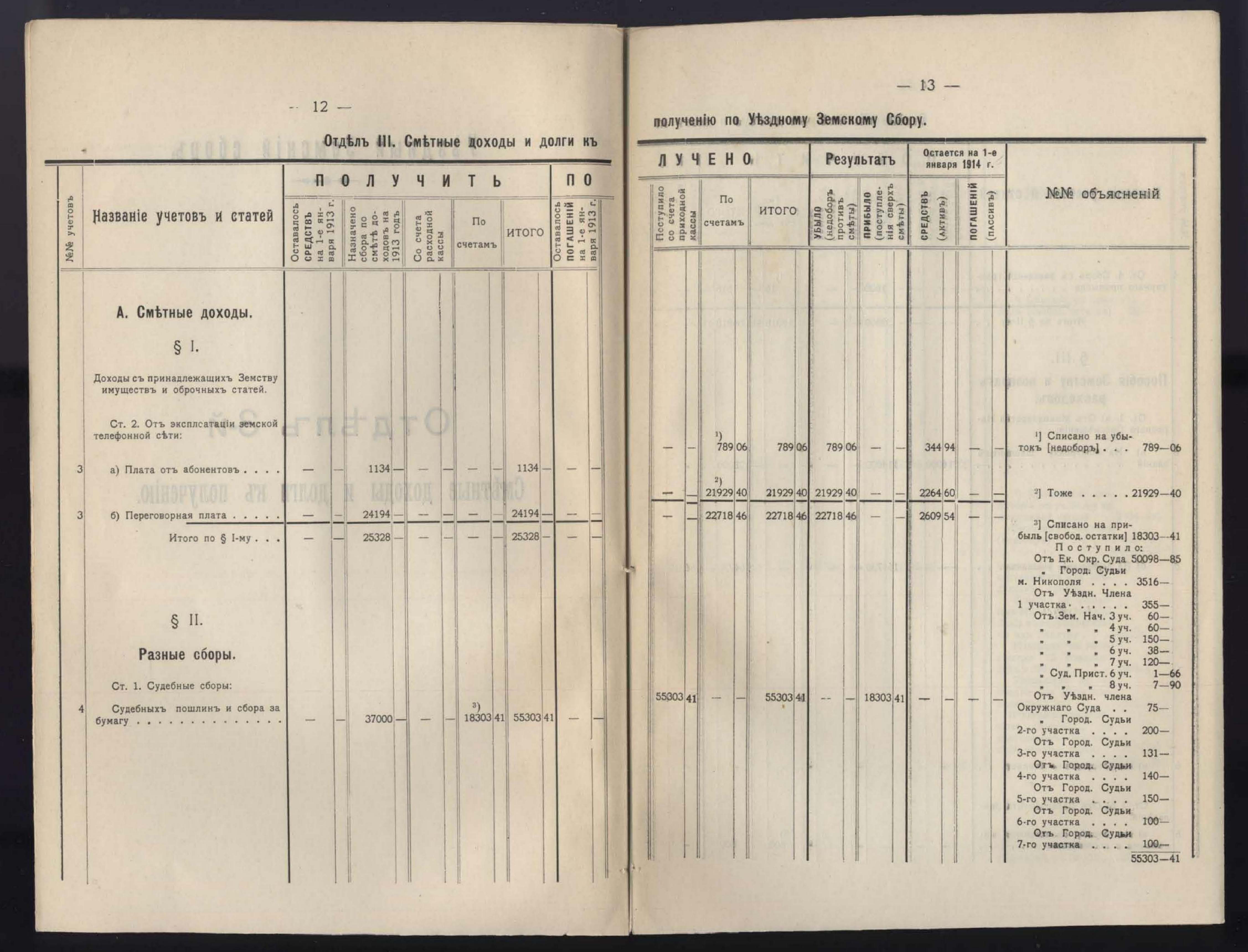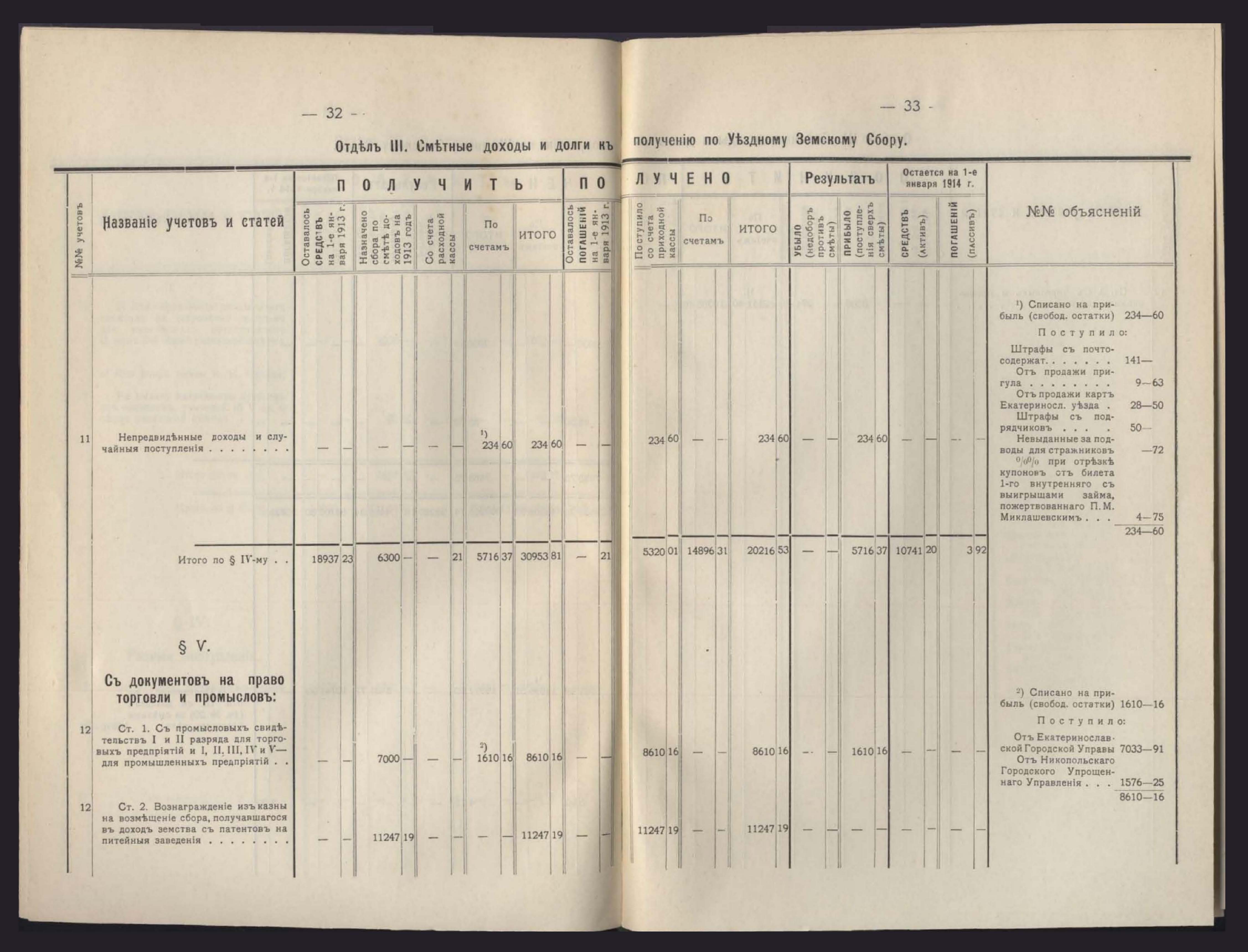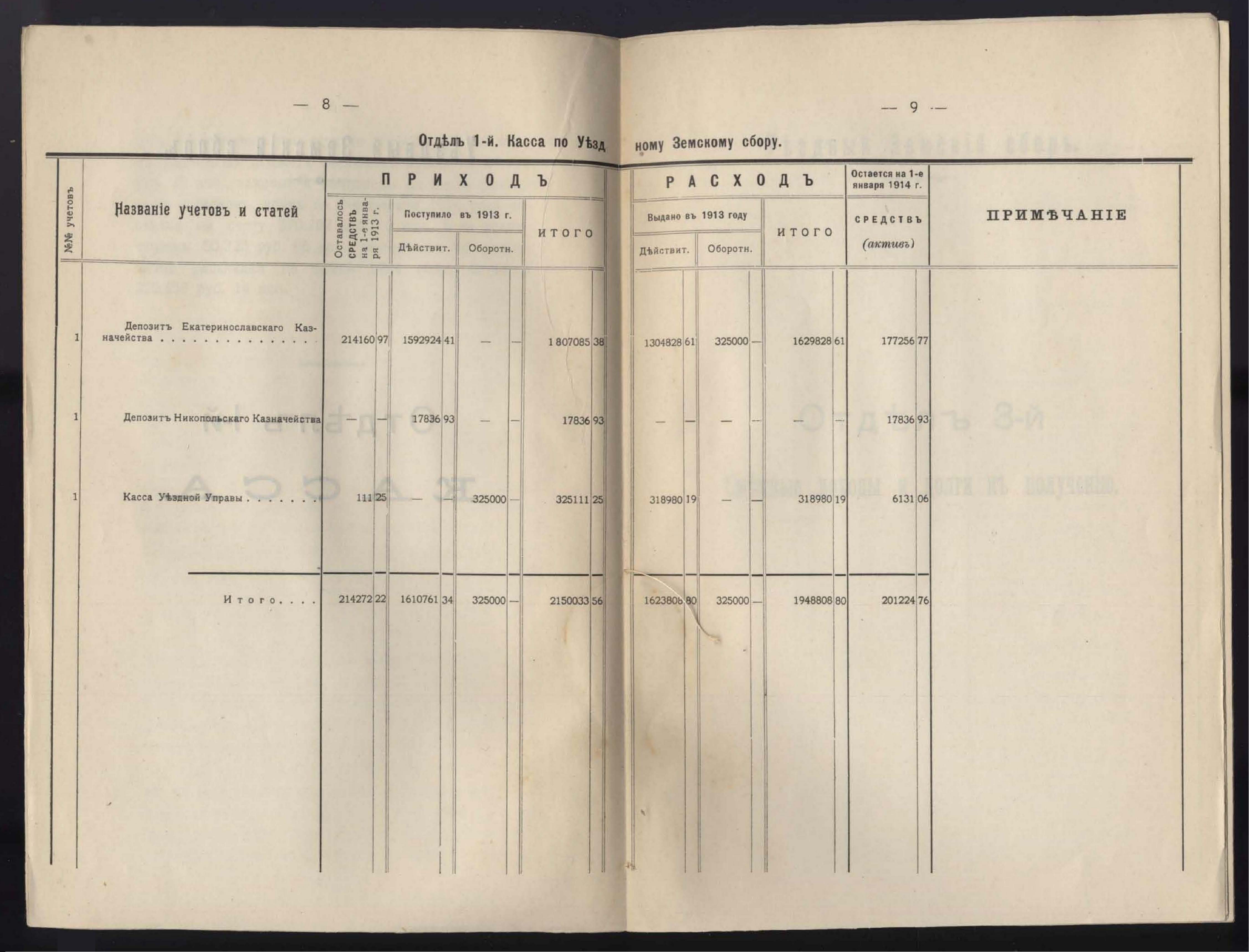 1. Денежный Отчетъ Екатеринославской Уездной Земской Управы за 1913 годъ