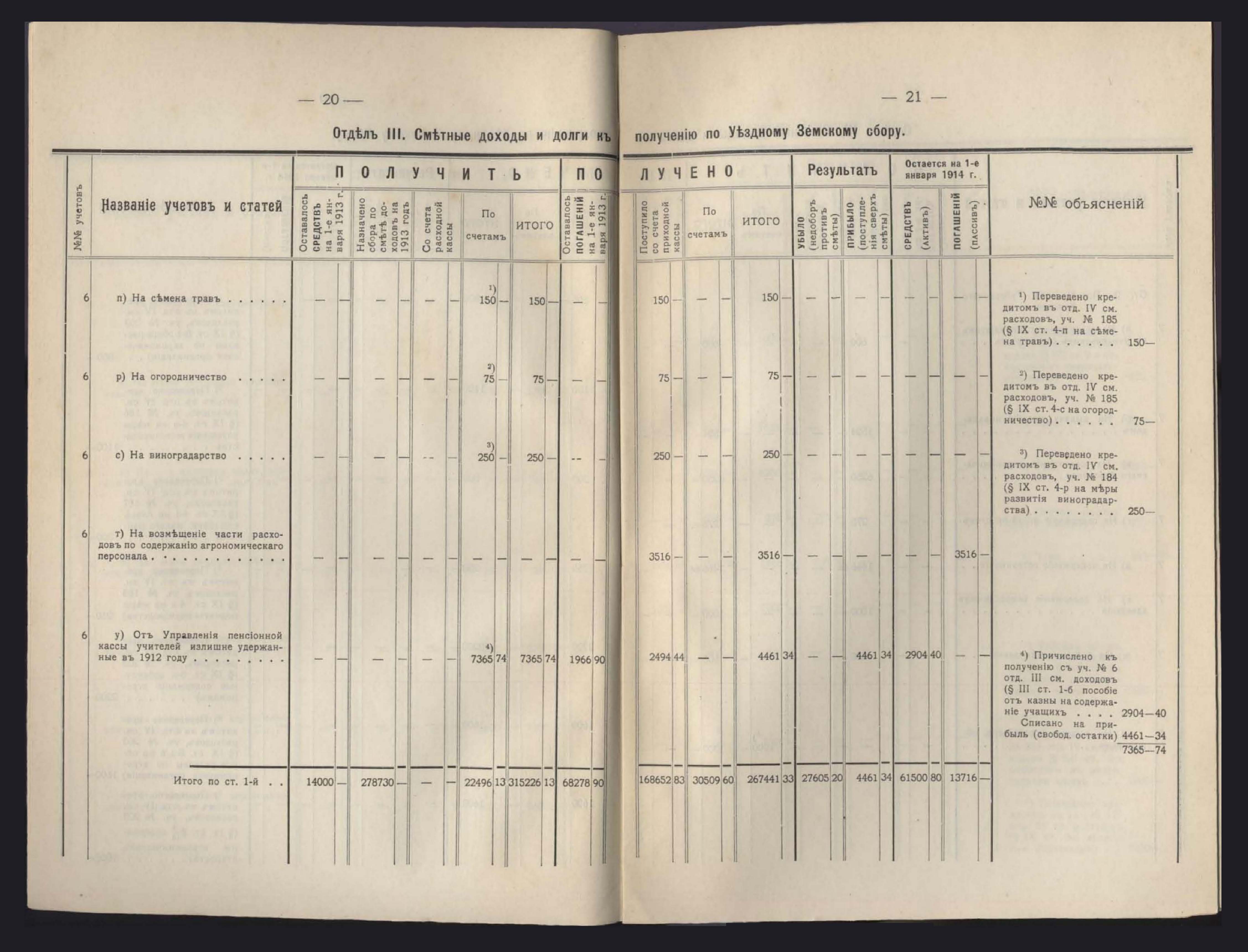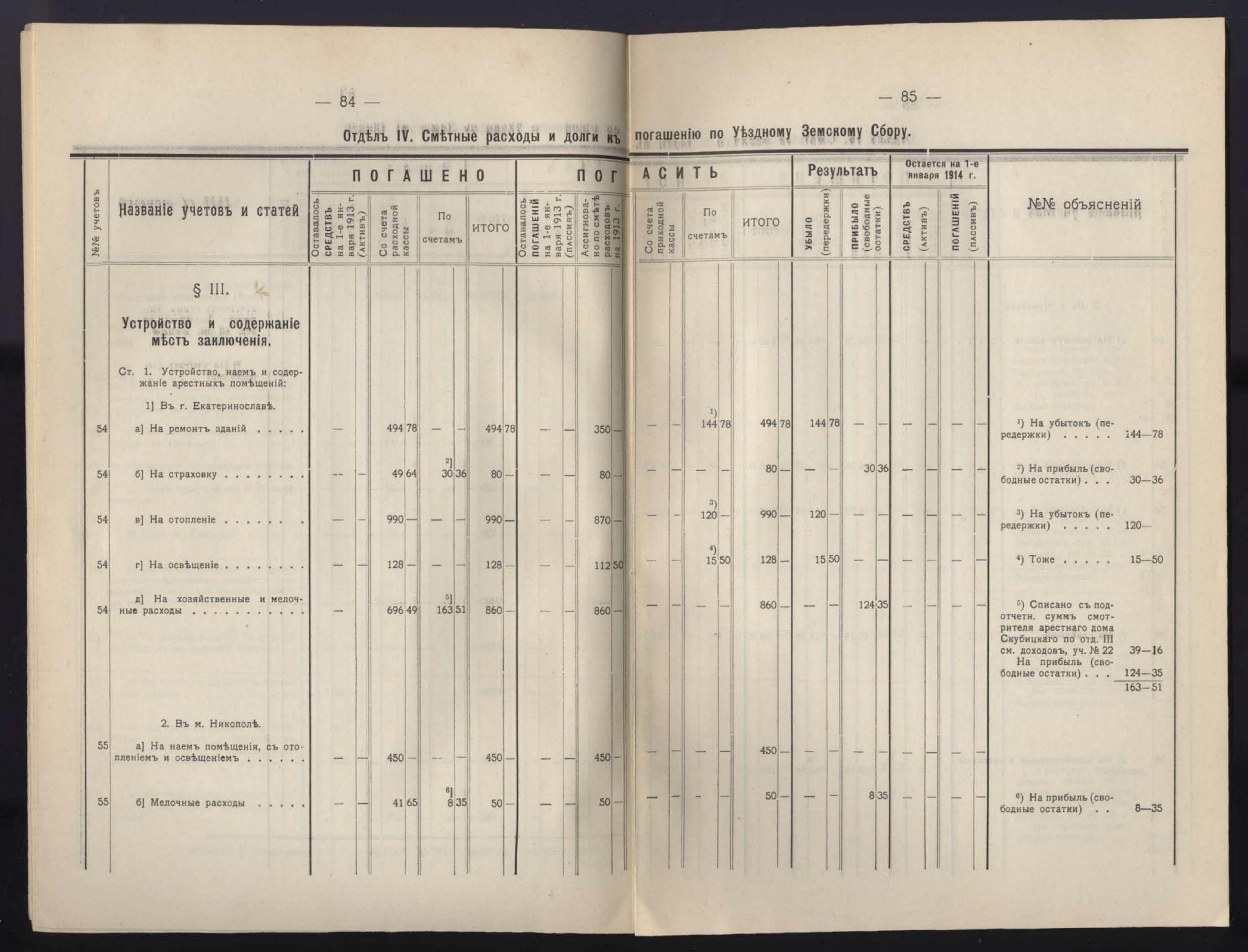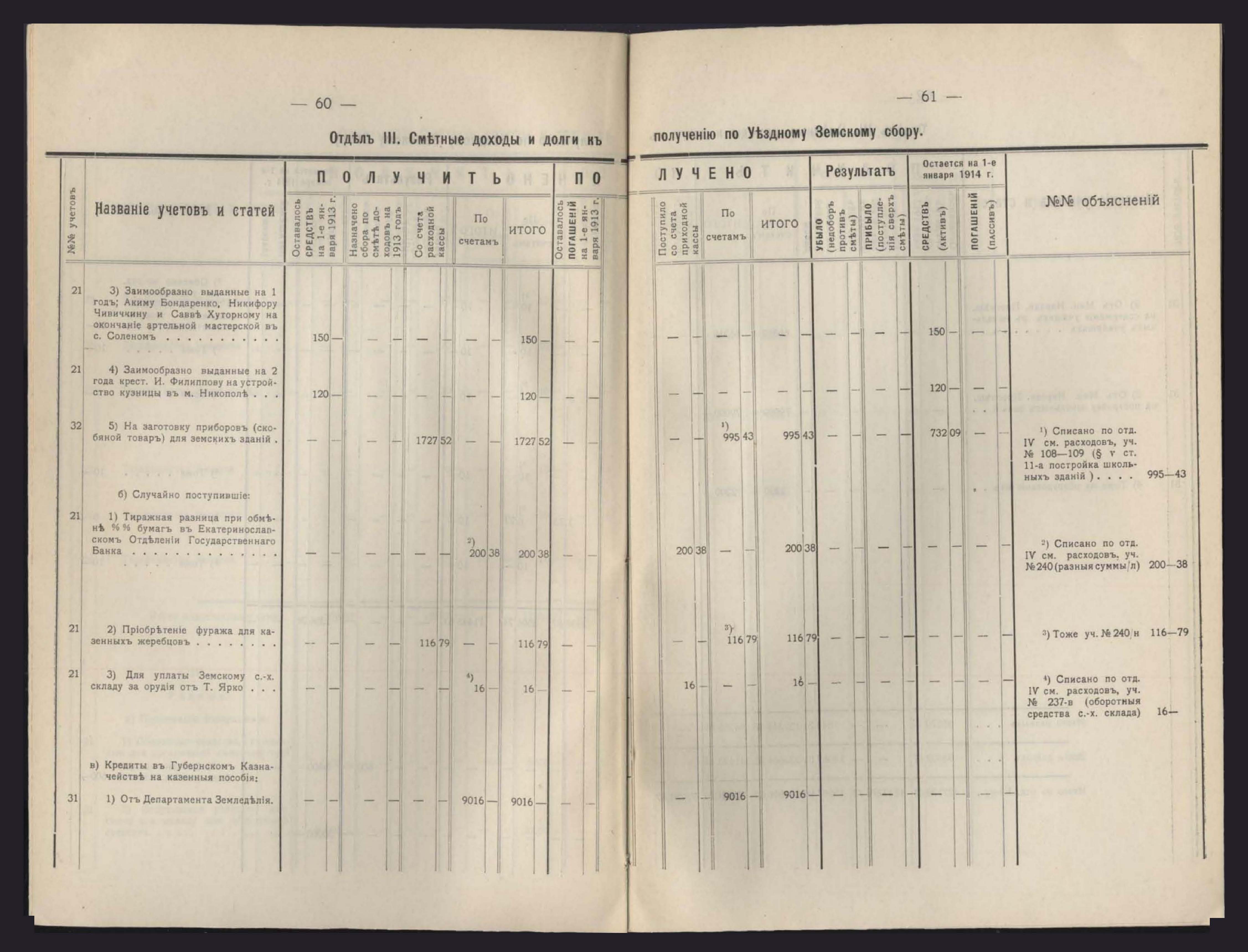 1. Денежный Отчетъ Екатеринославской Уездной Земской Управы за 1913 годъ