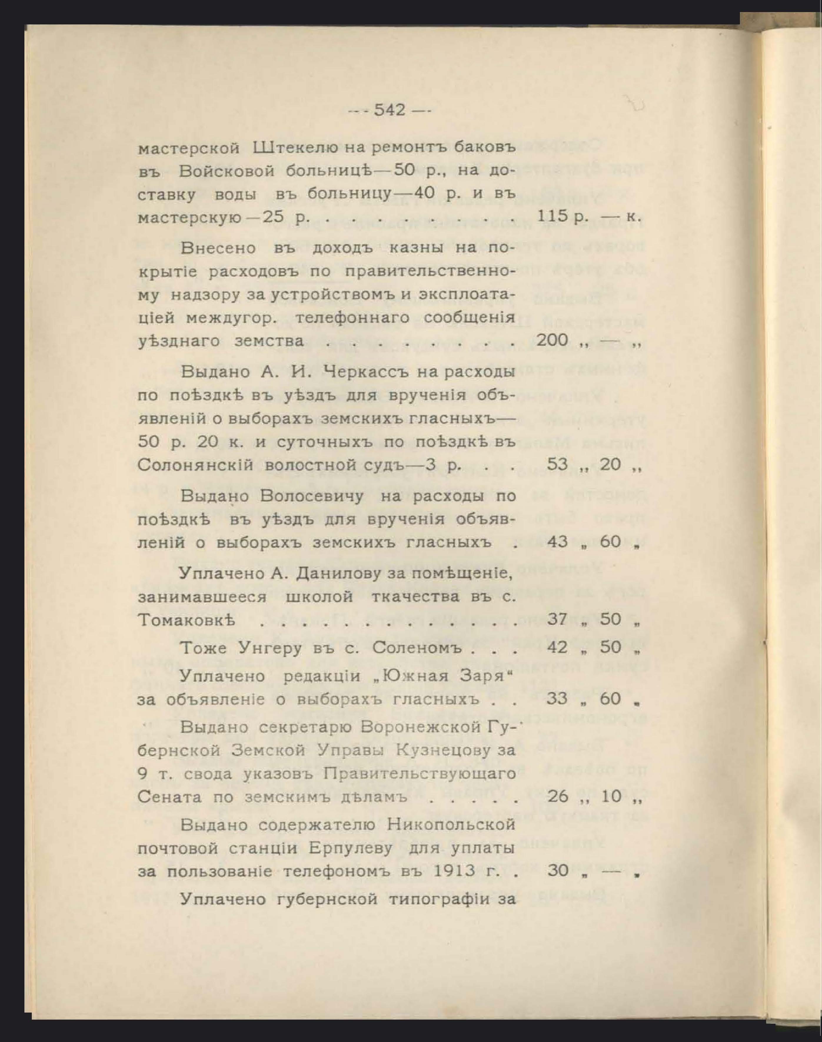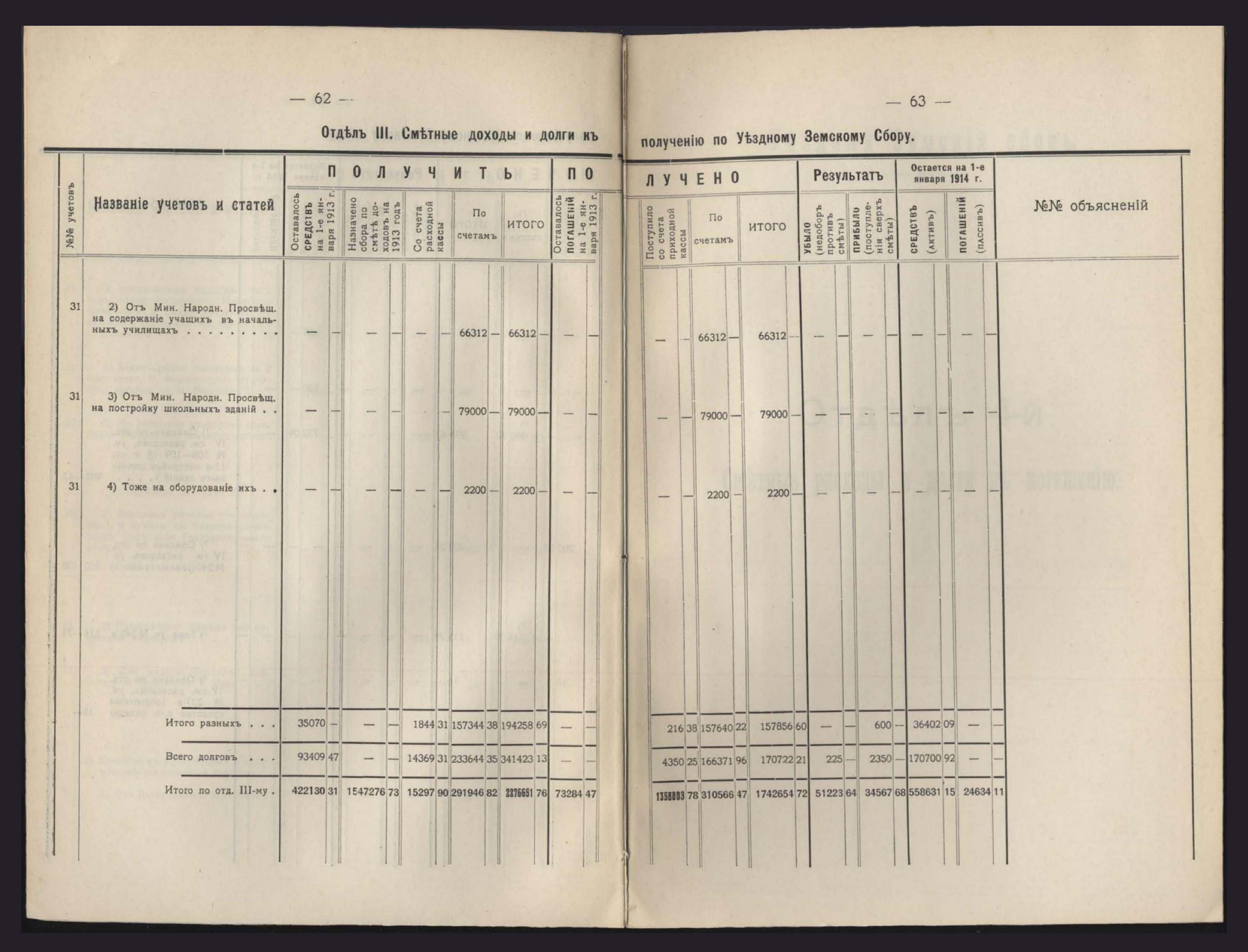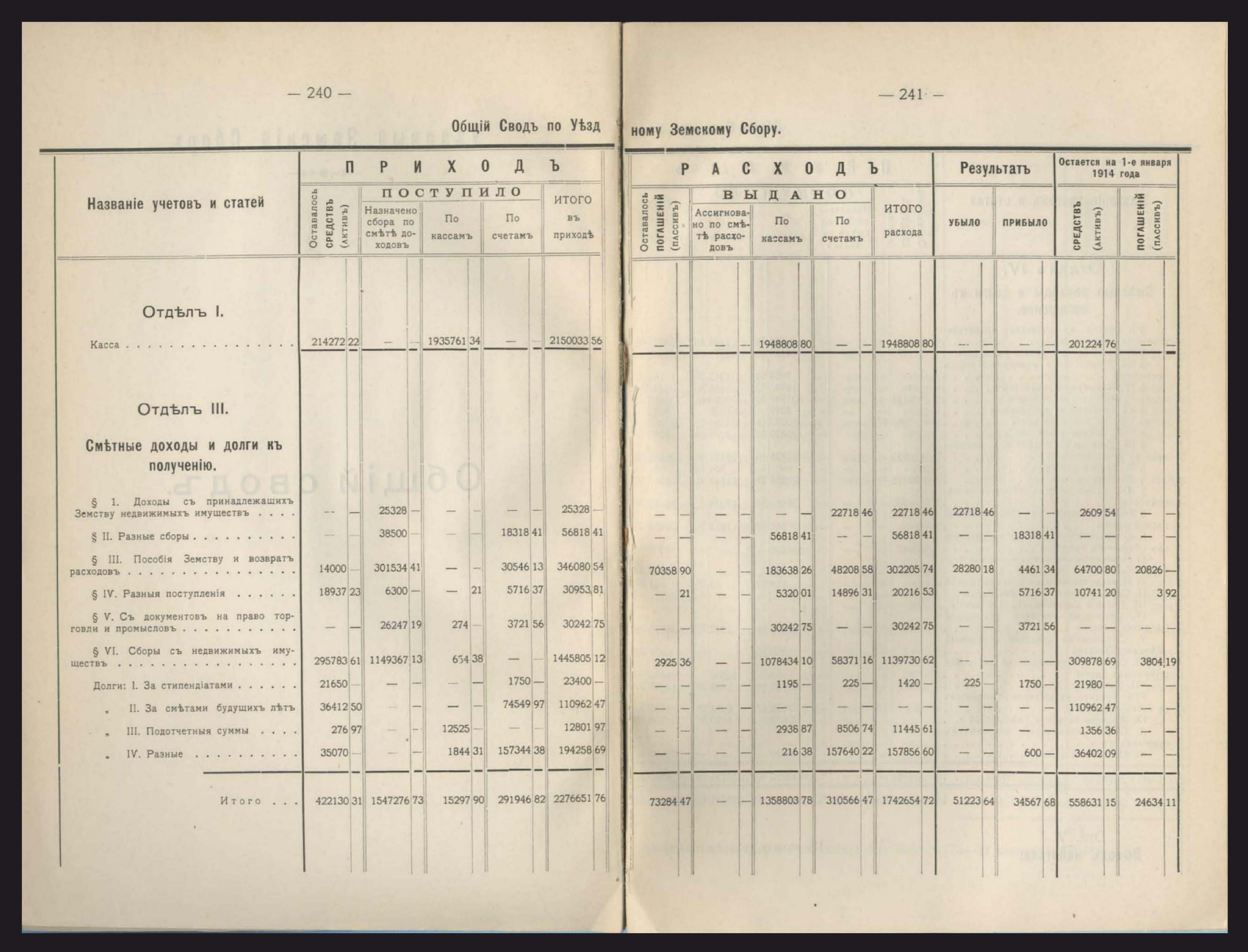 Уездный Земскій сборъ(касса, доходы, расходы и общій сводъ)