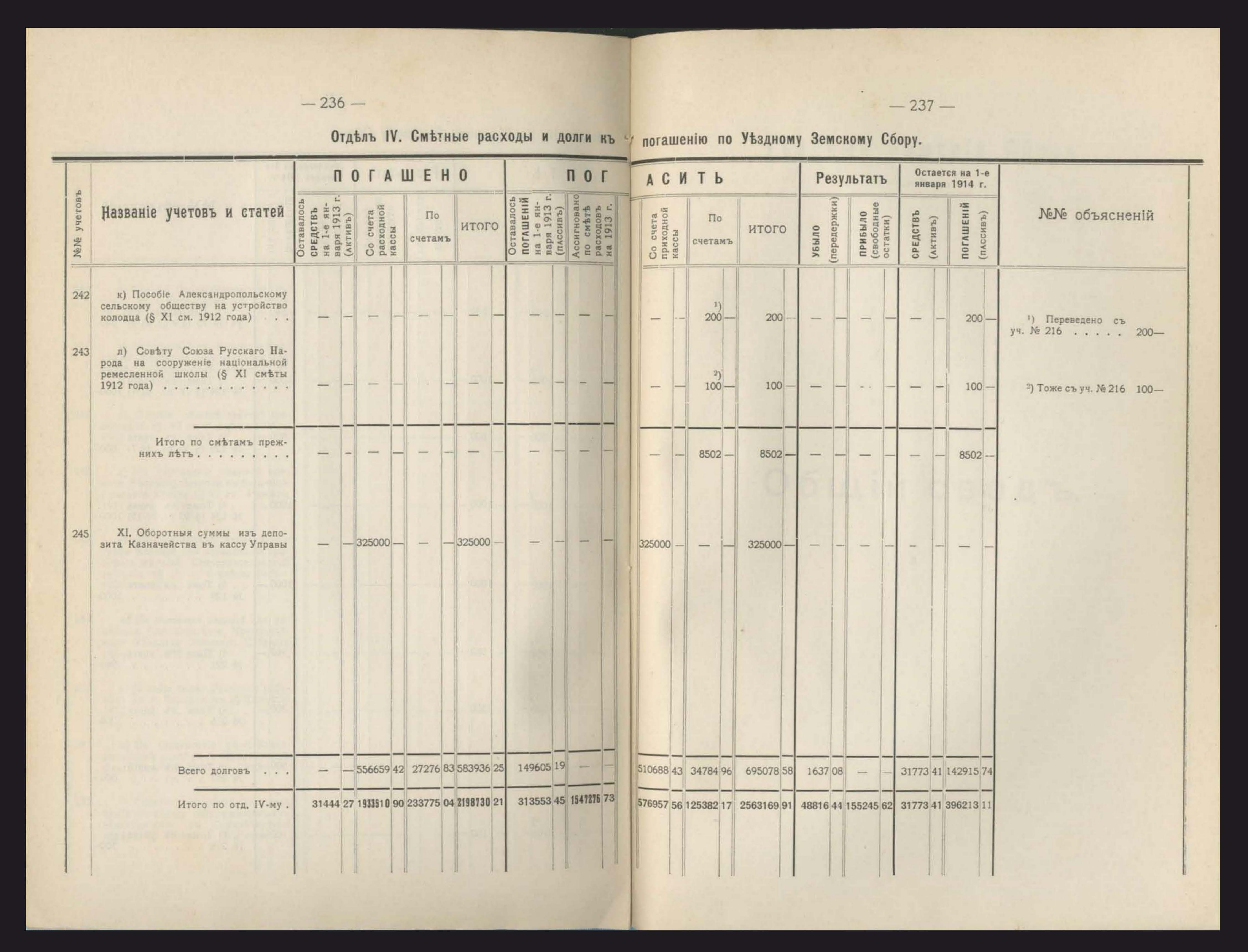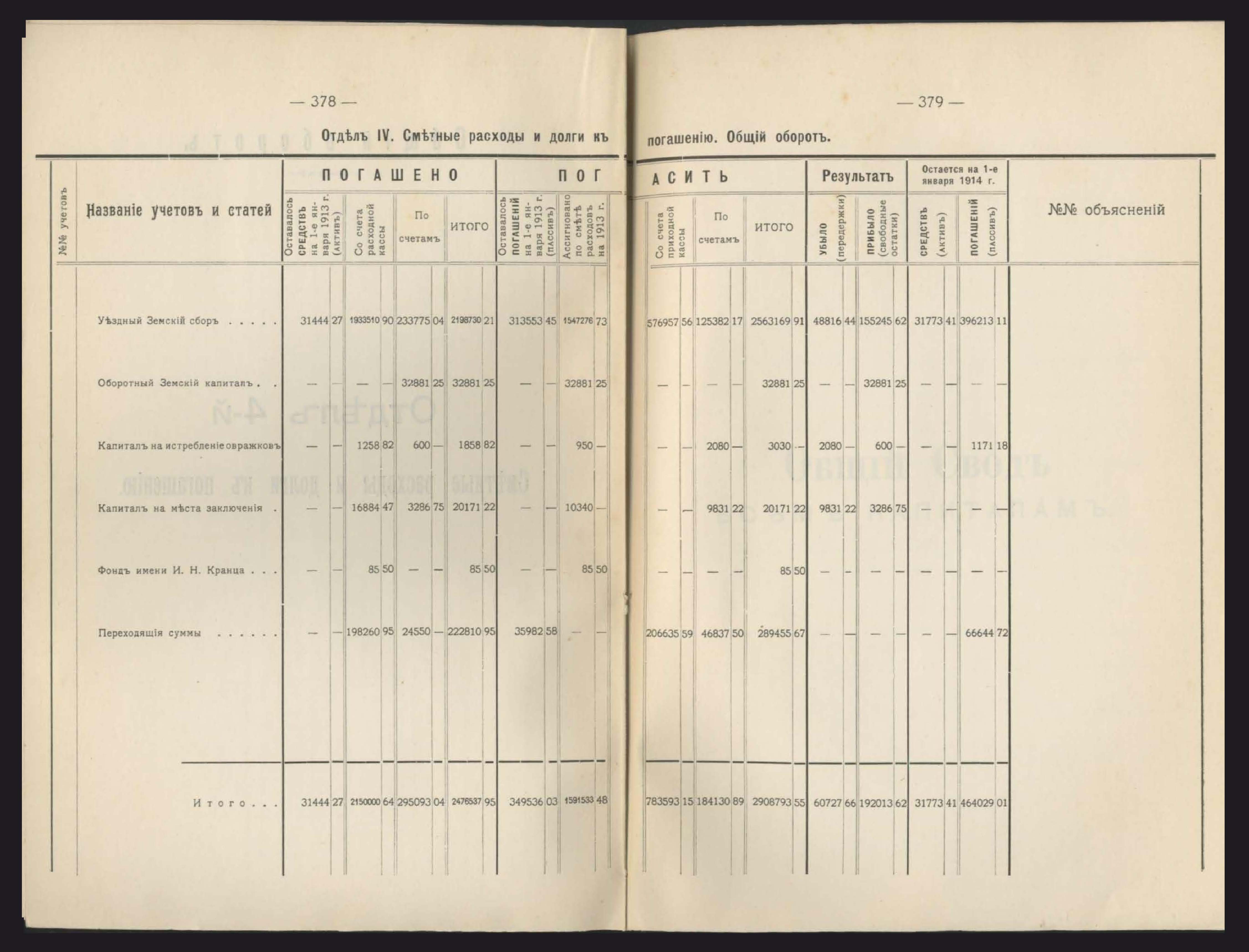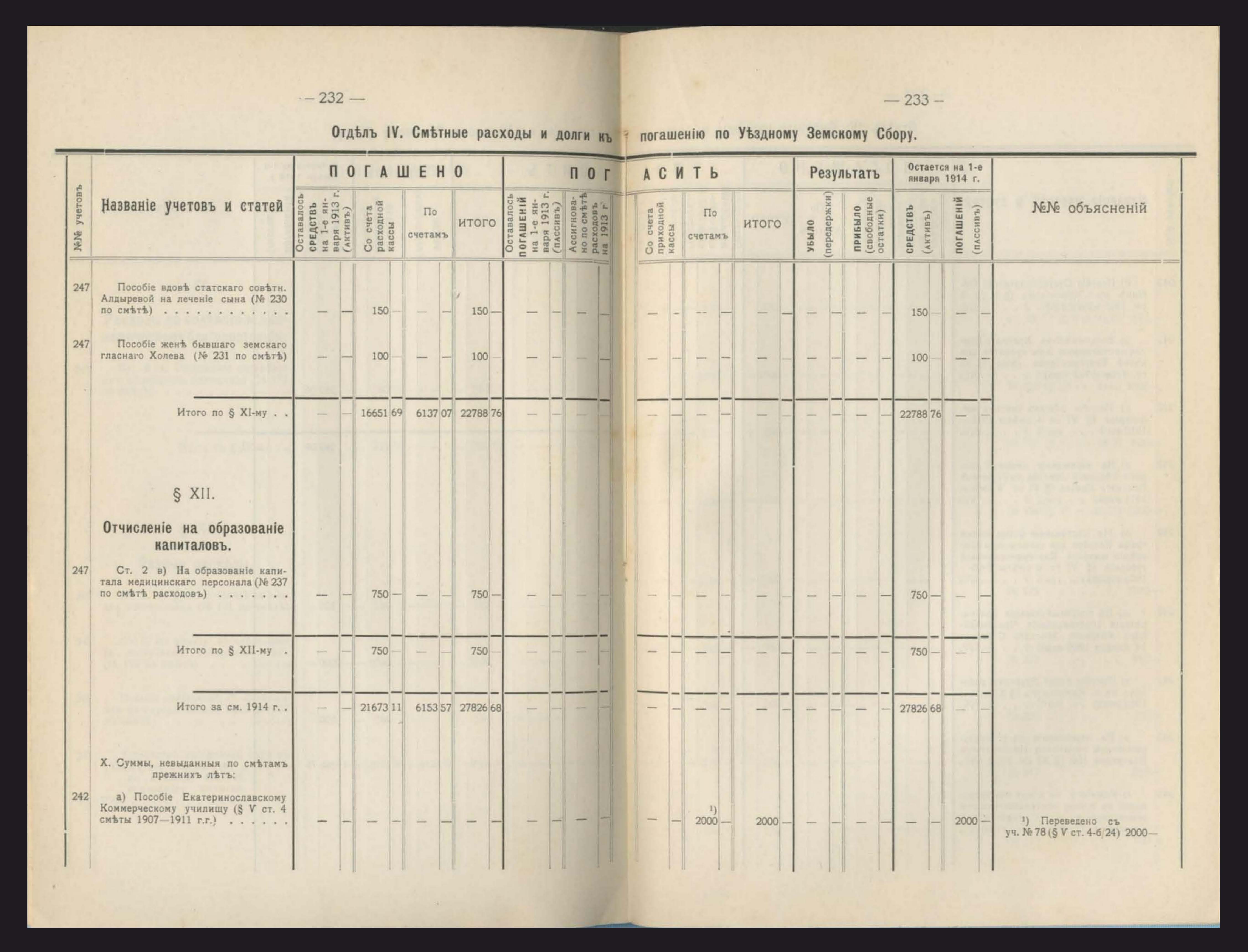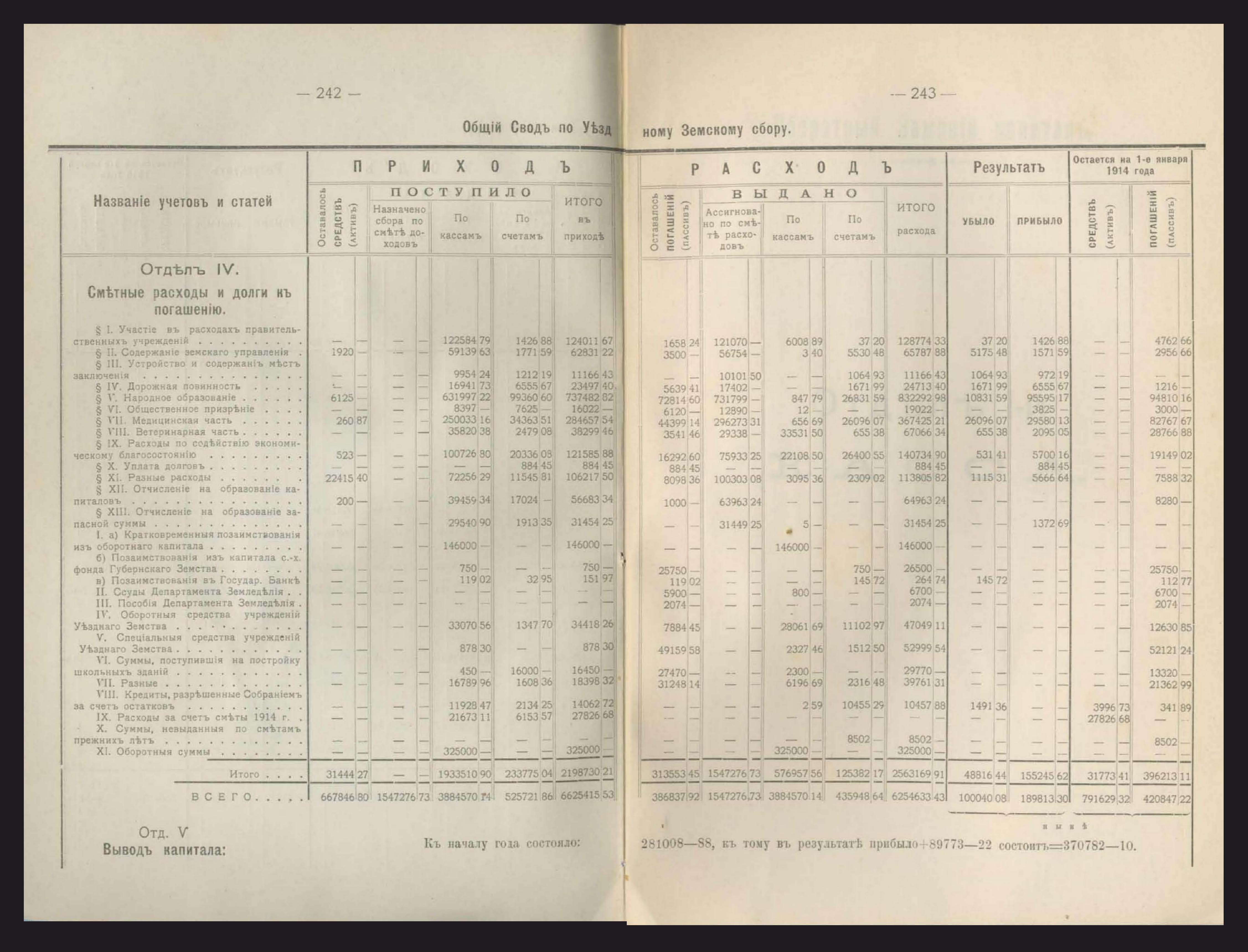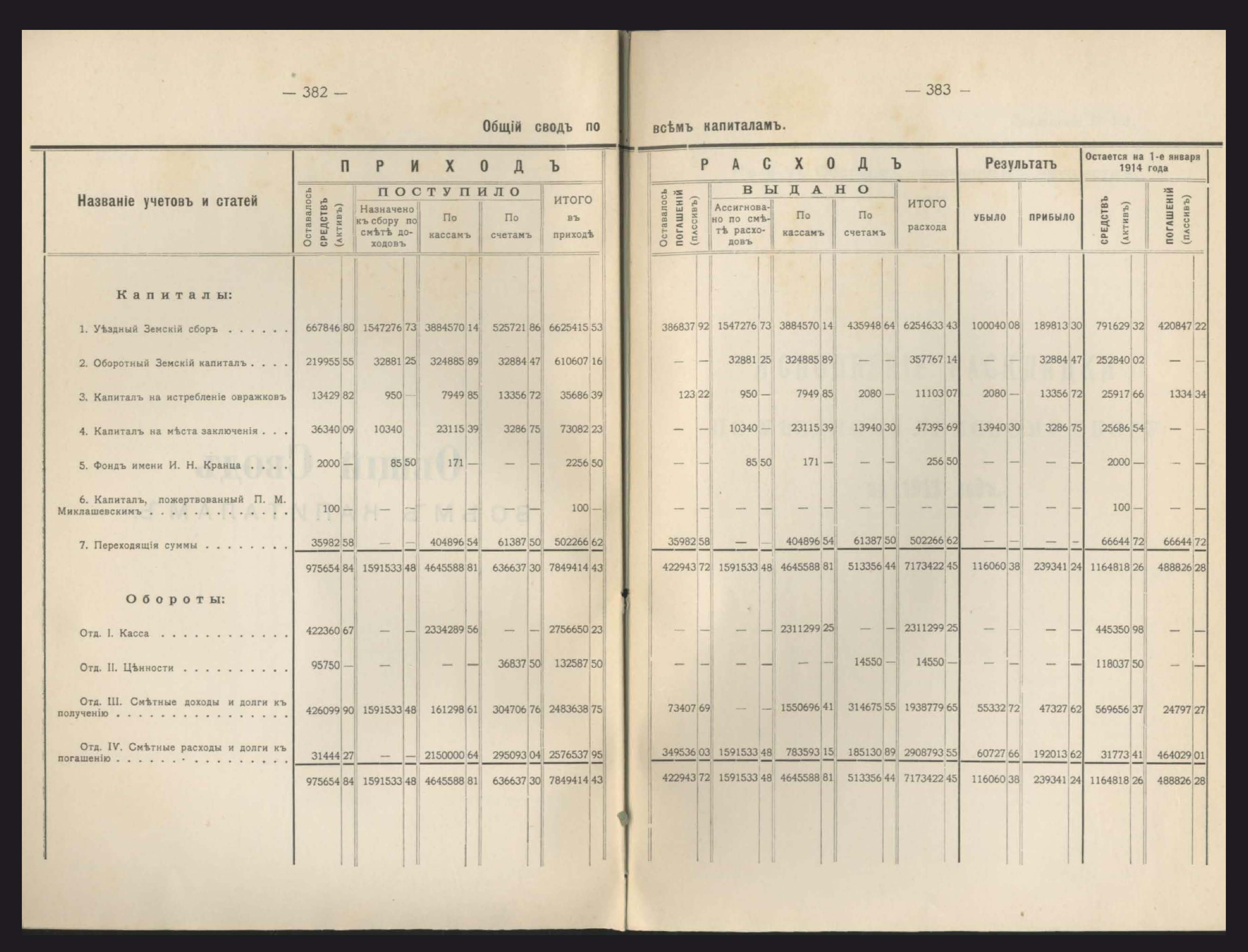 231. Общій сводъ всехъ капиталовъ, находящихся въ веденіи Уезднаго Земства