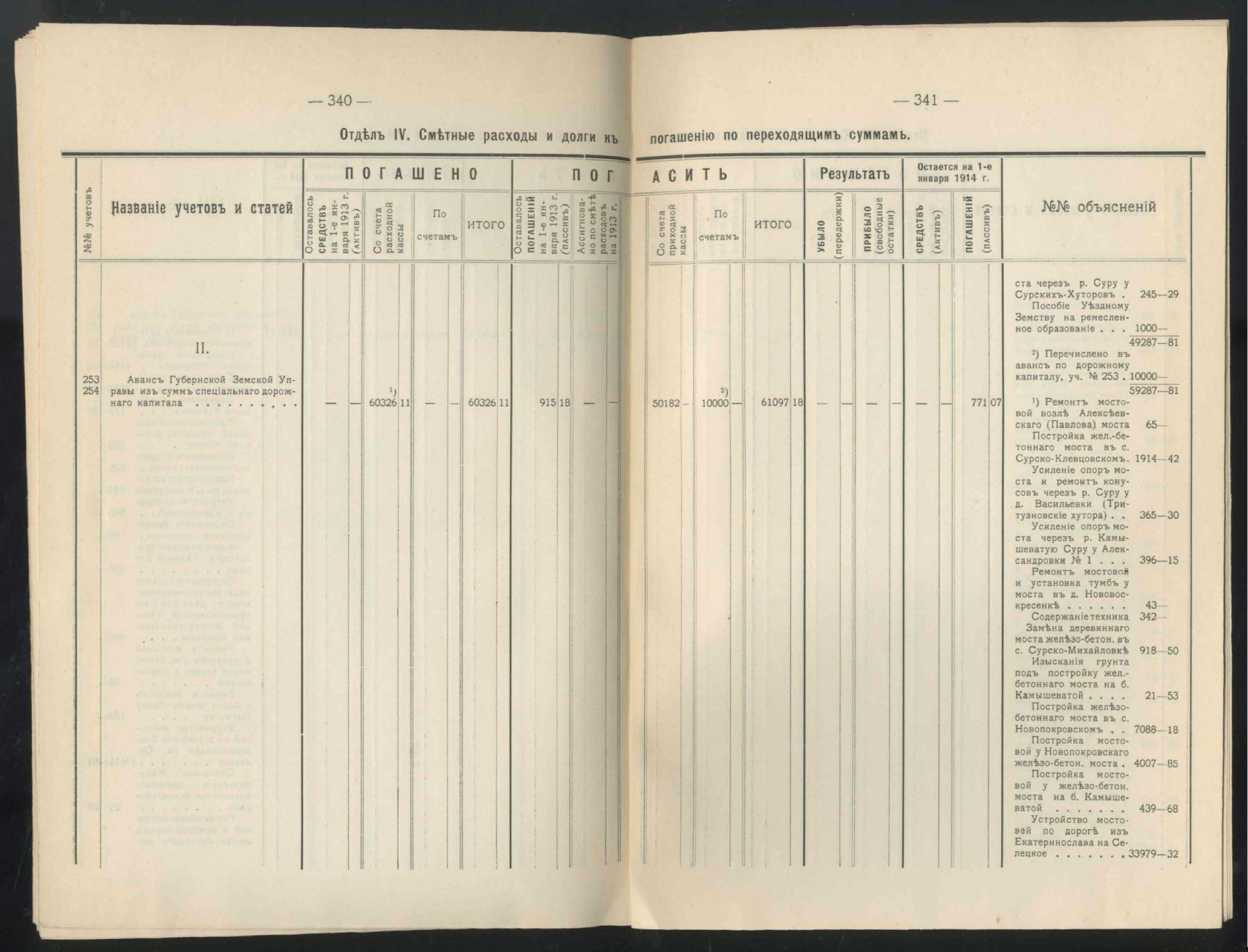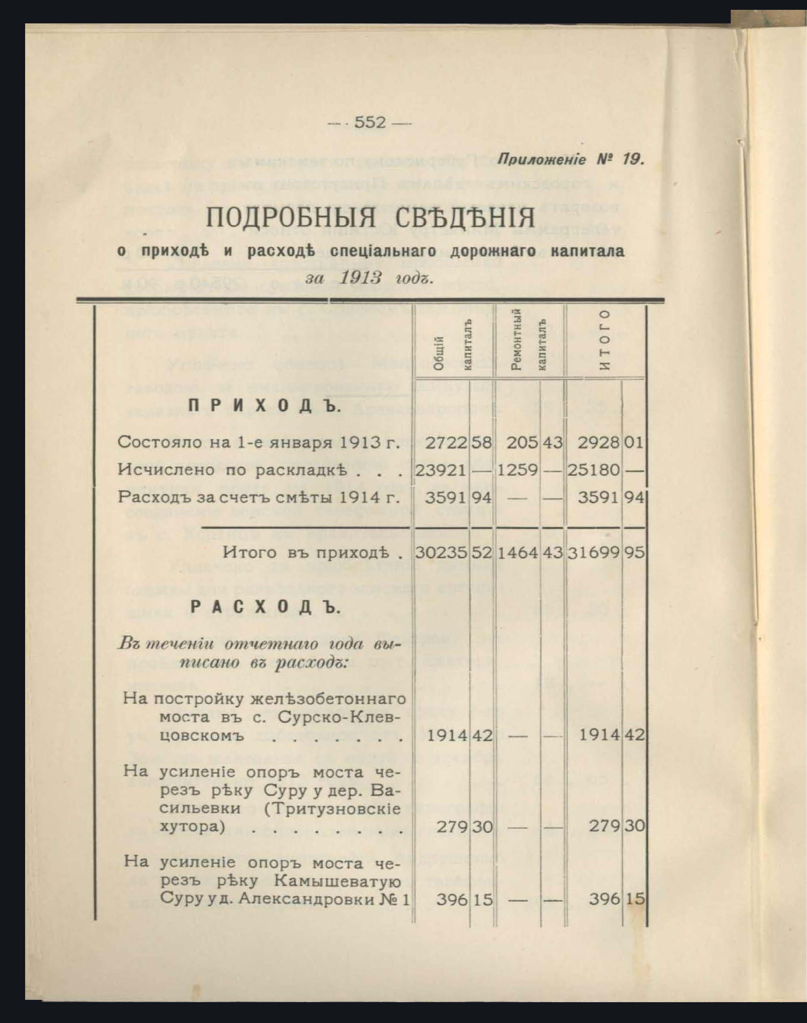 391. Подробныя сведенія приходъ и расходъ дорожнаго капитала за 1913 годъ