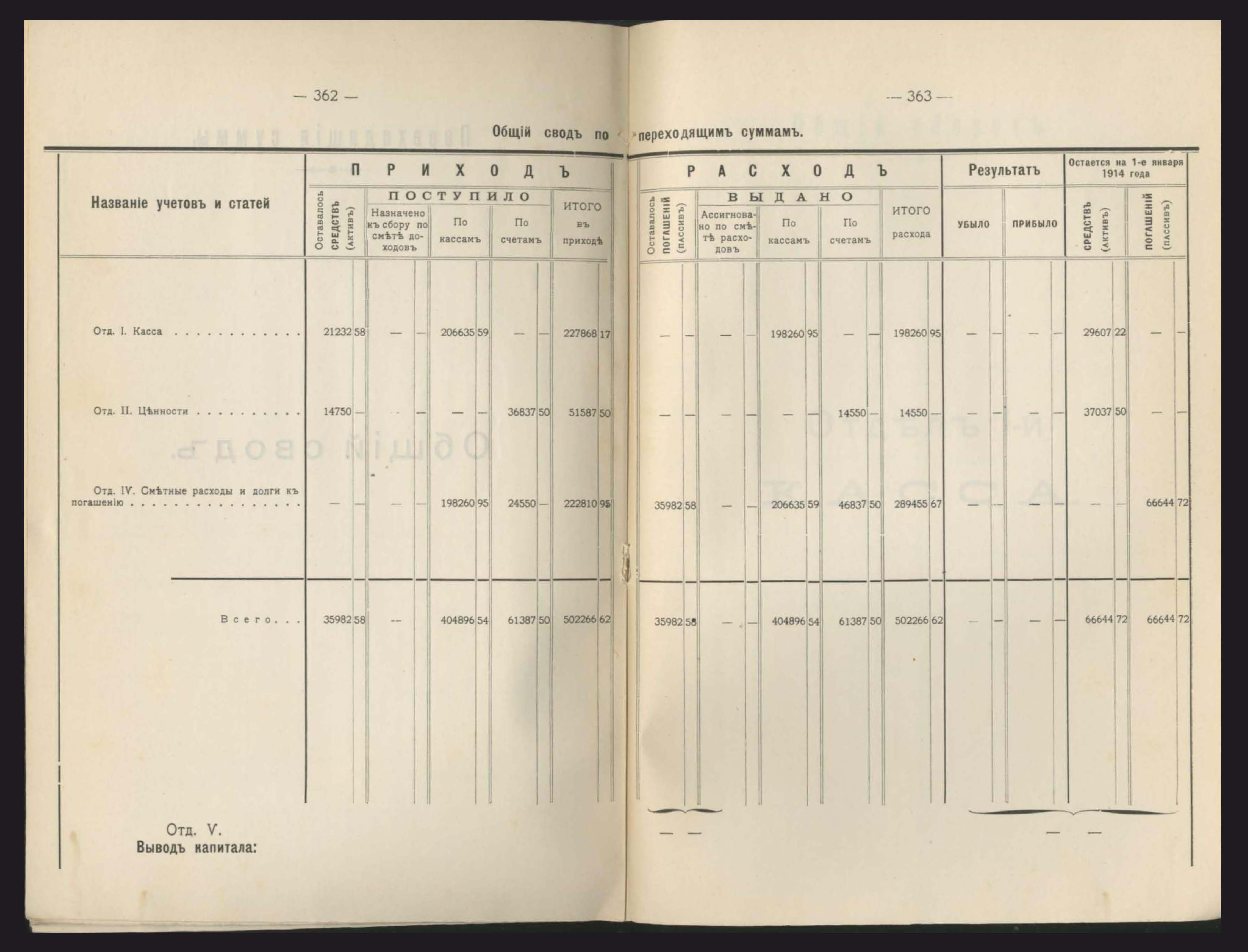 219. Общій оборотъ кассы по всемъ капиталамъ