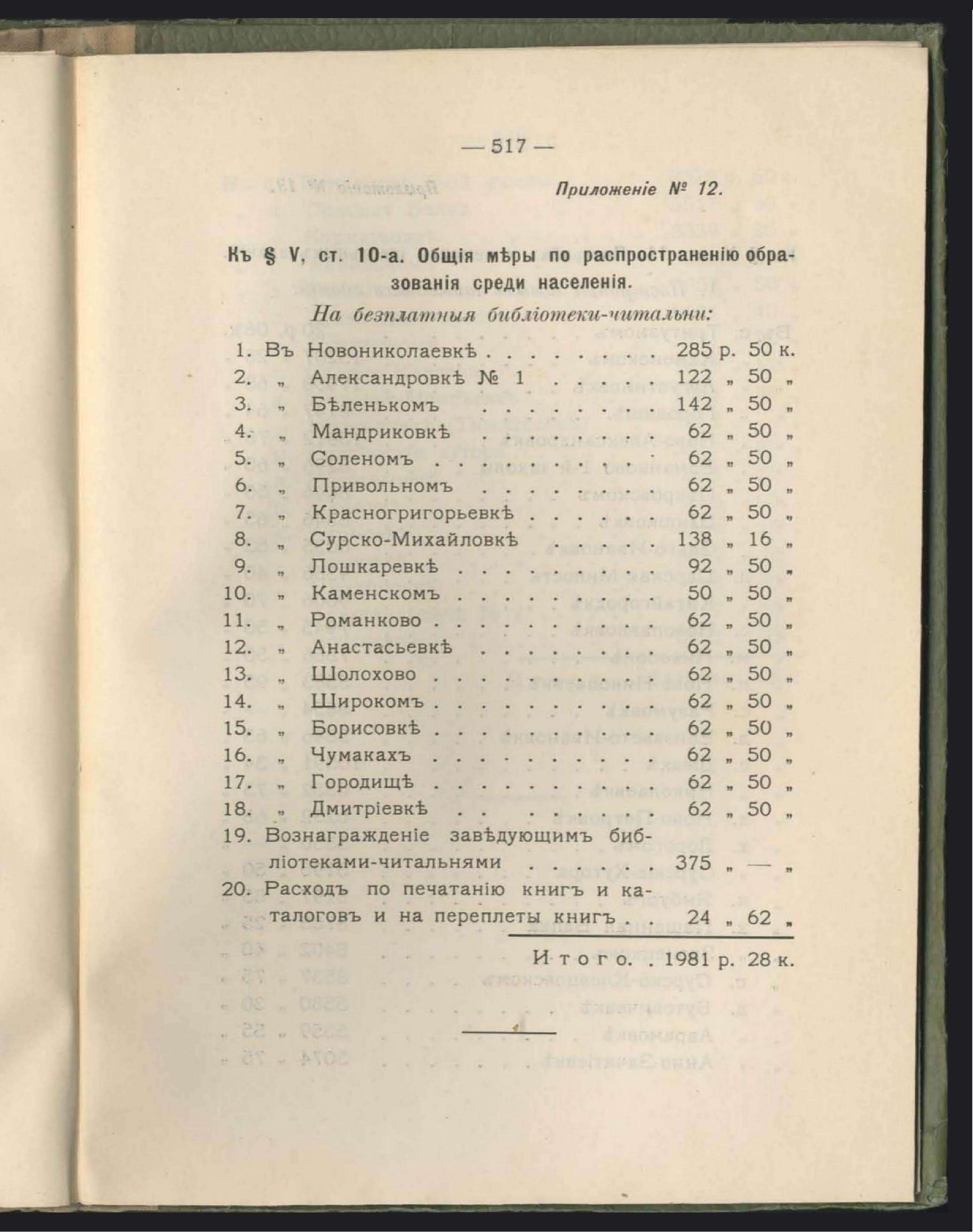 11. Уездный Земскій сборъ(касса, доходы, расходы и общій сводъ)