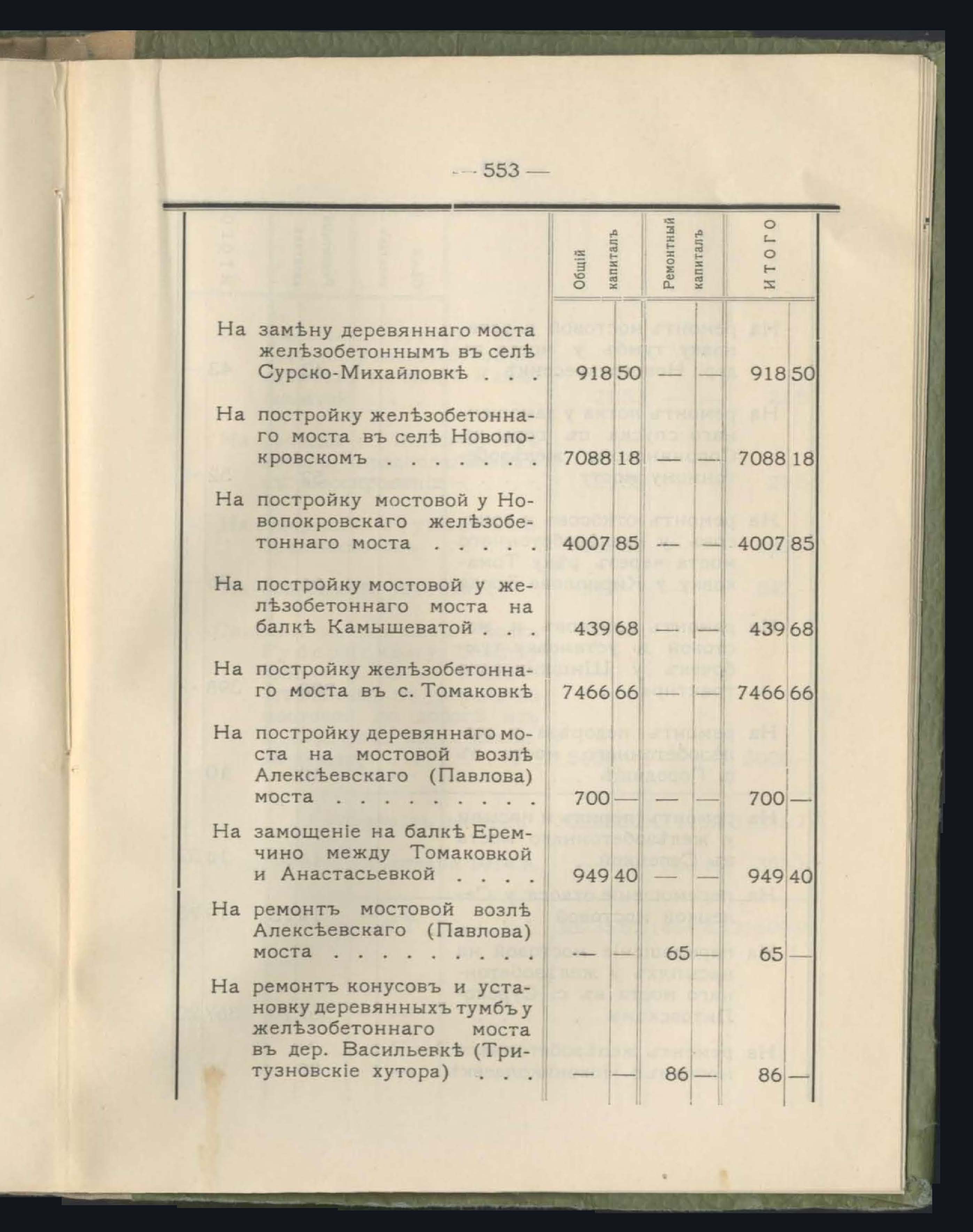 Подробныя сведенія приходъ и расходъ дорожнаго капитала за 1913 годъ