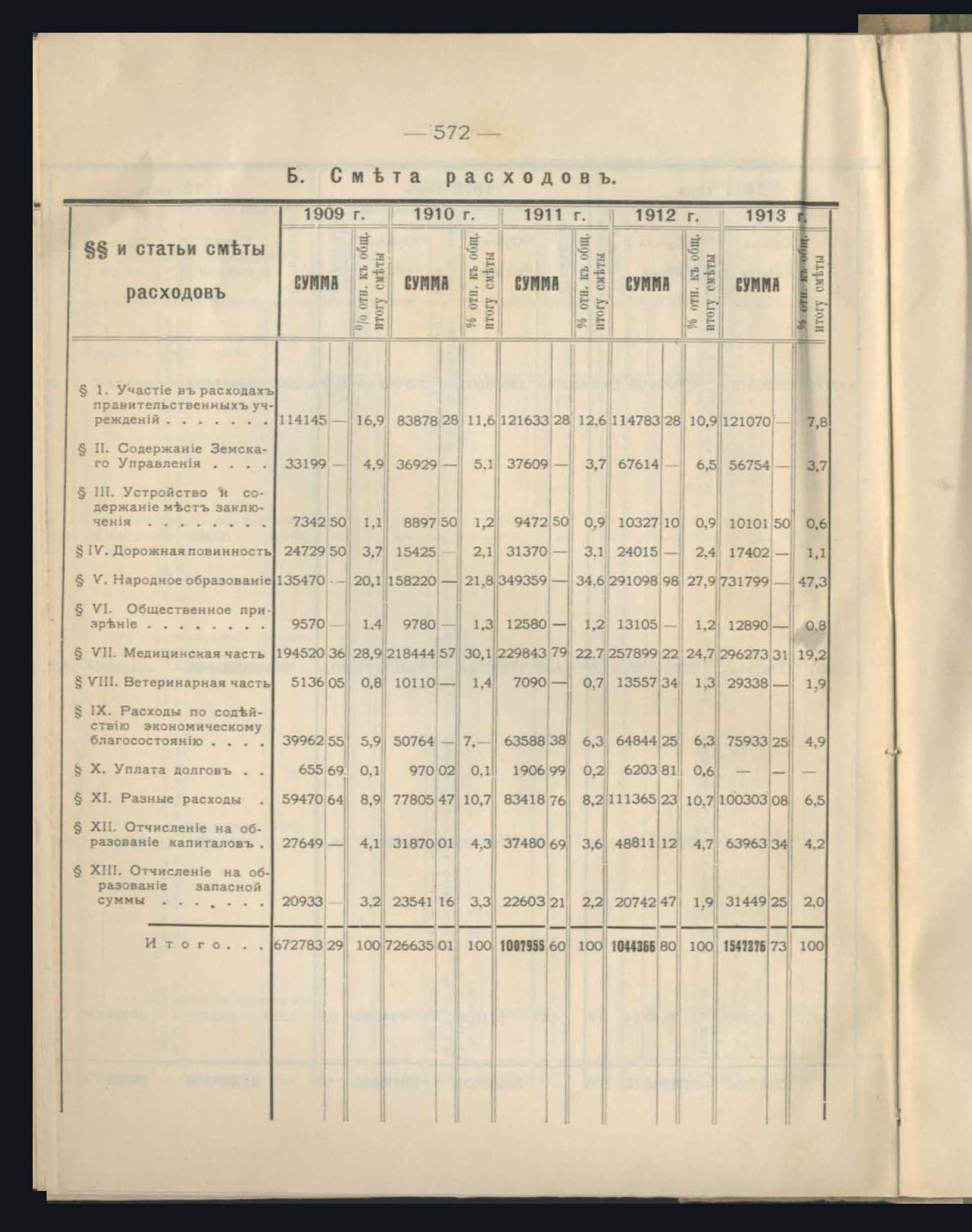 Сравнительная таблица развитія бюджета за последнее пятилетіе 1909-1913 годы