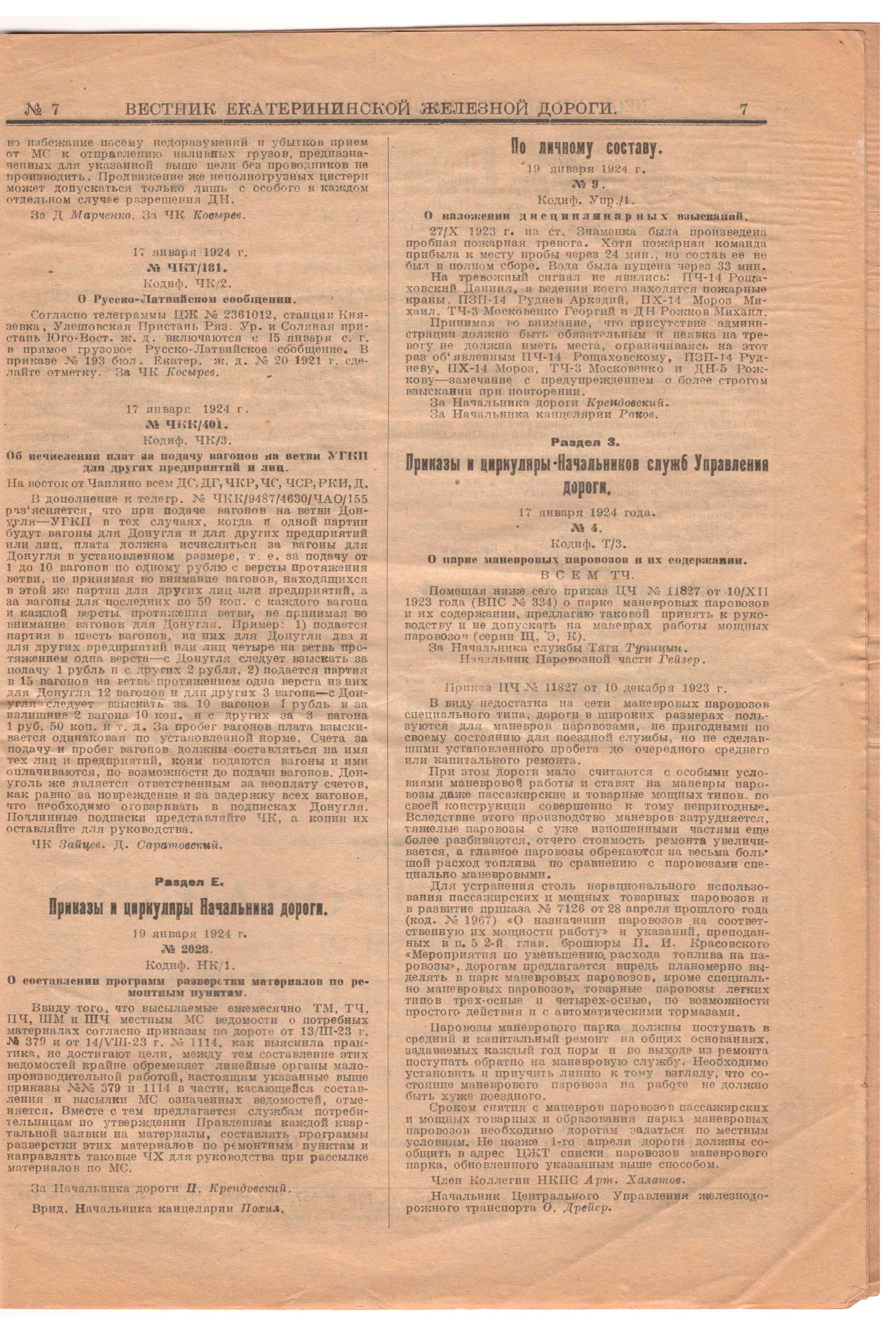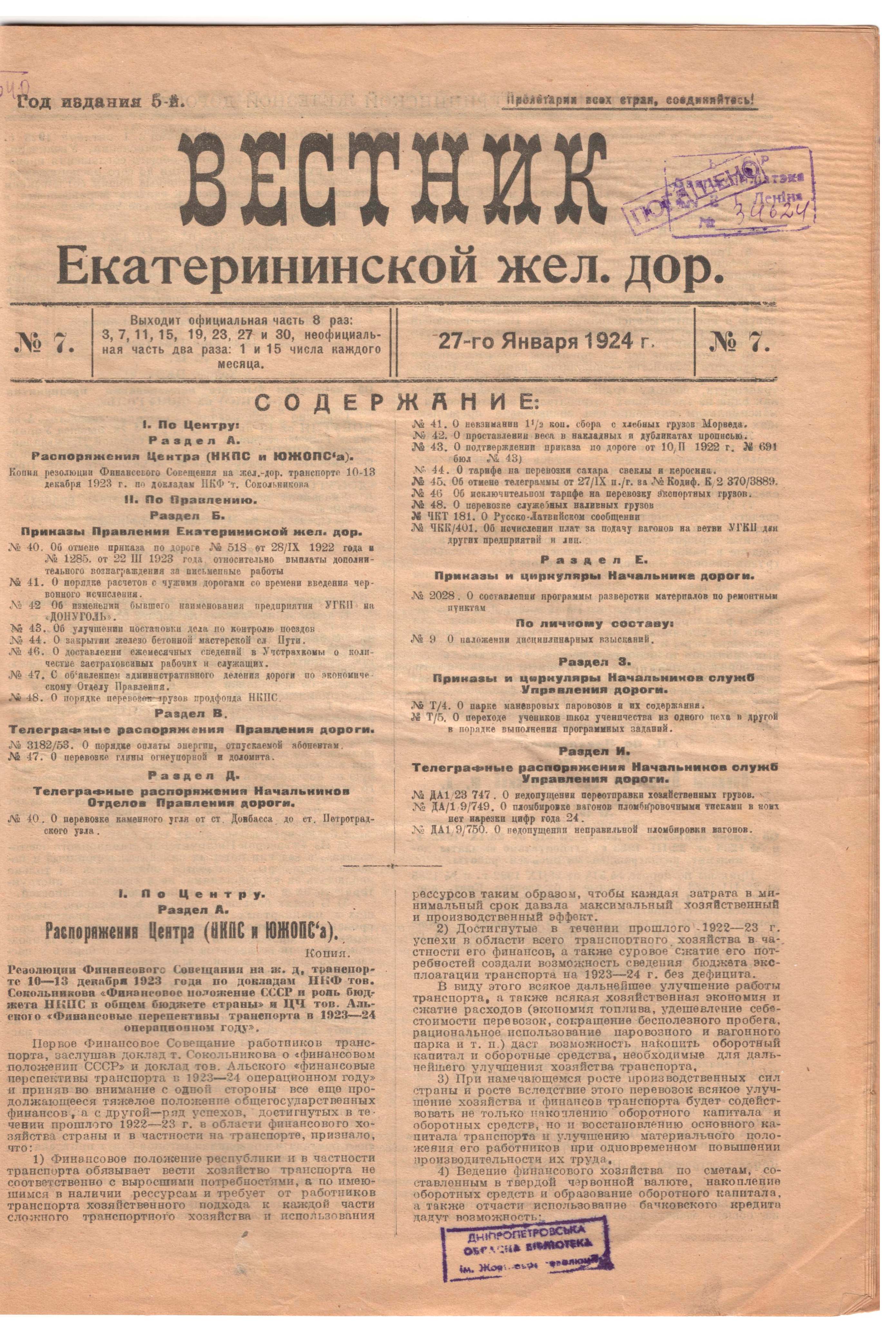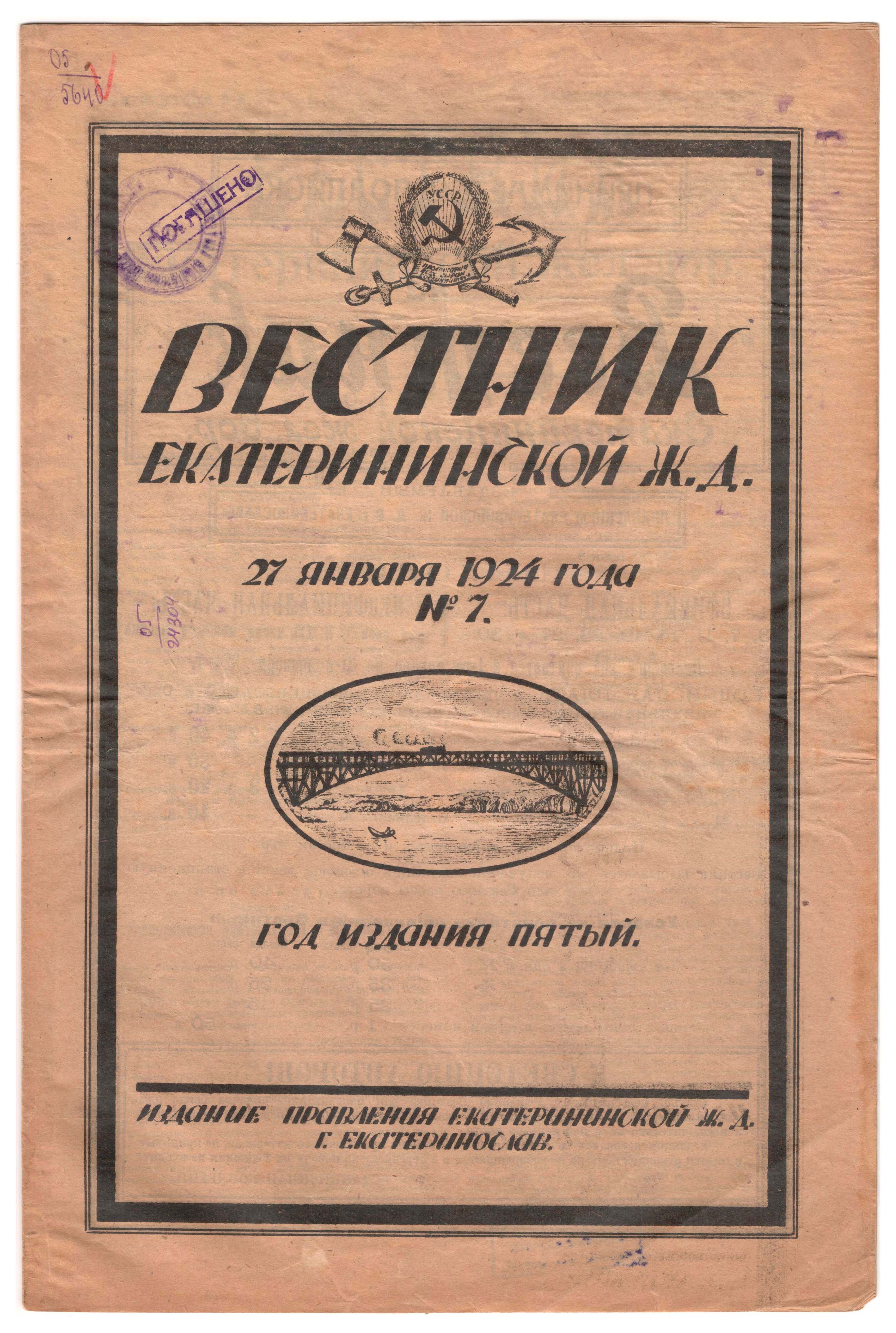 1. Вестник Екатерининской ж.д. 27 января 1924 года. № 7. Год издания пятый