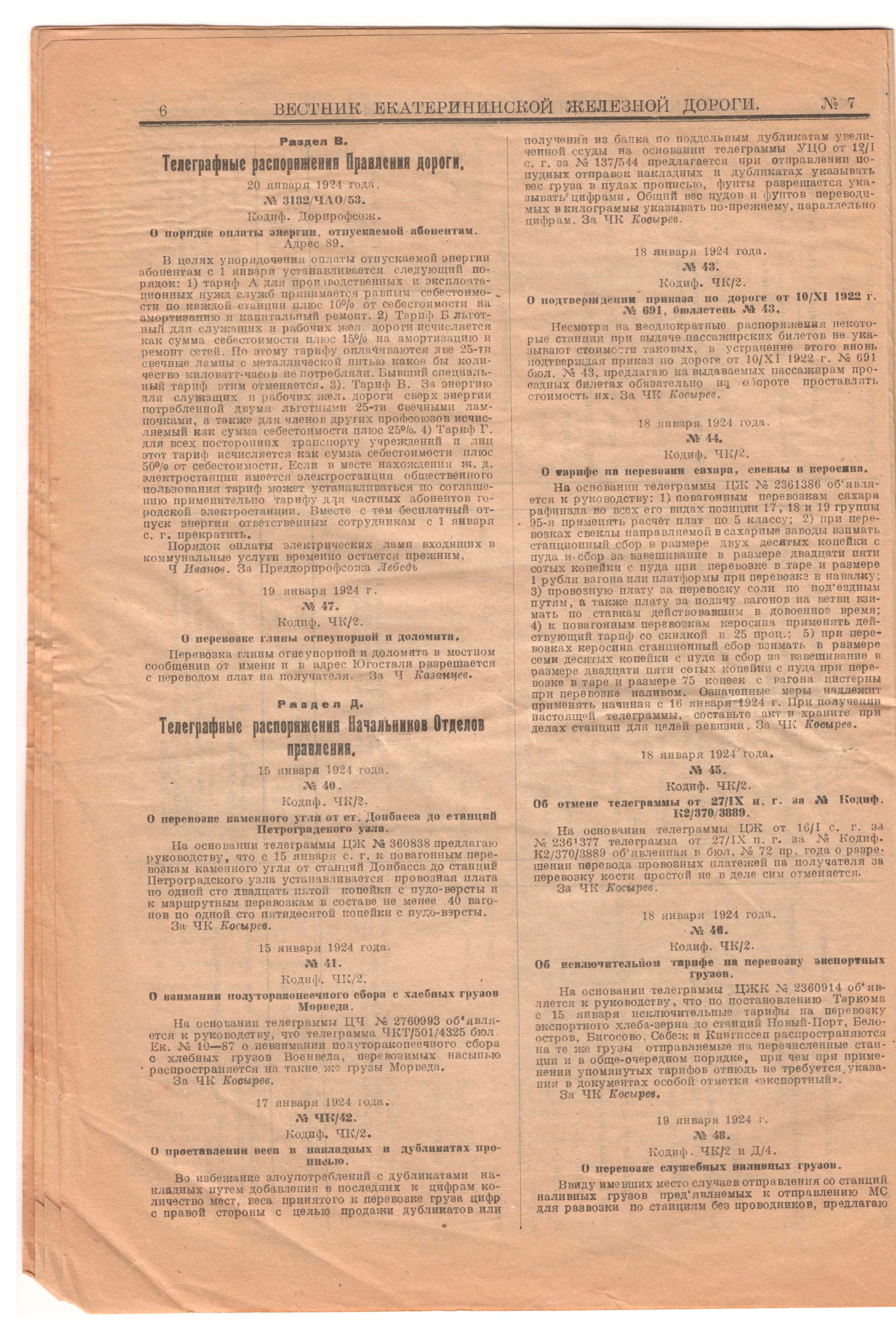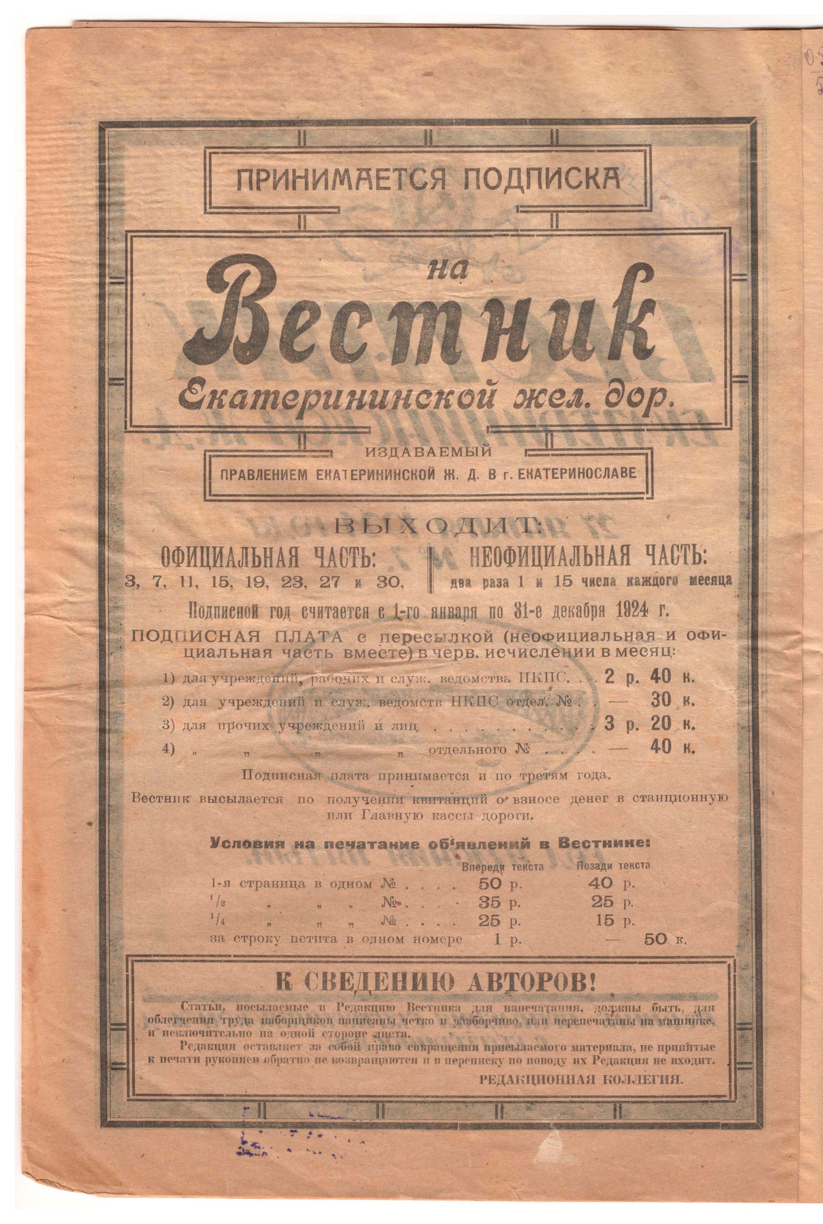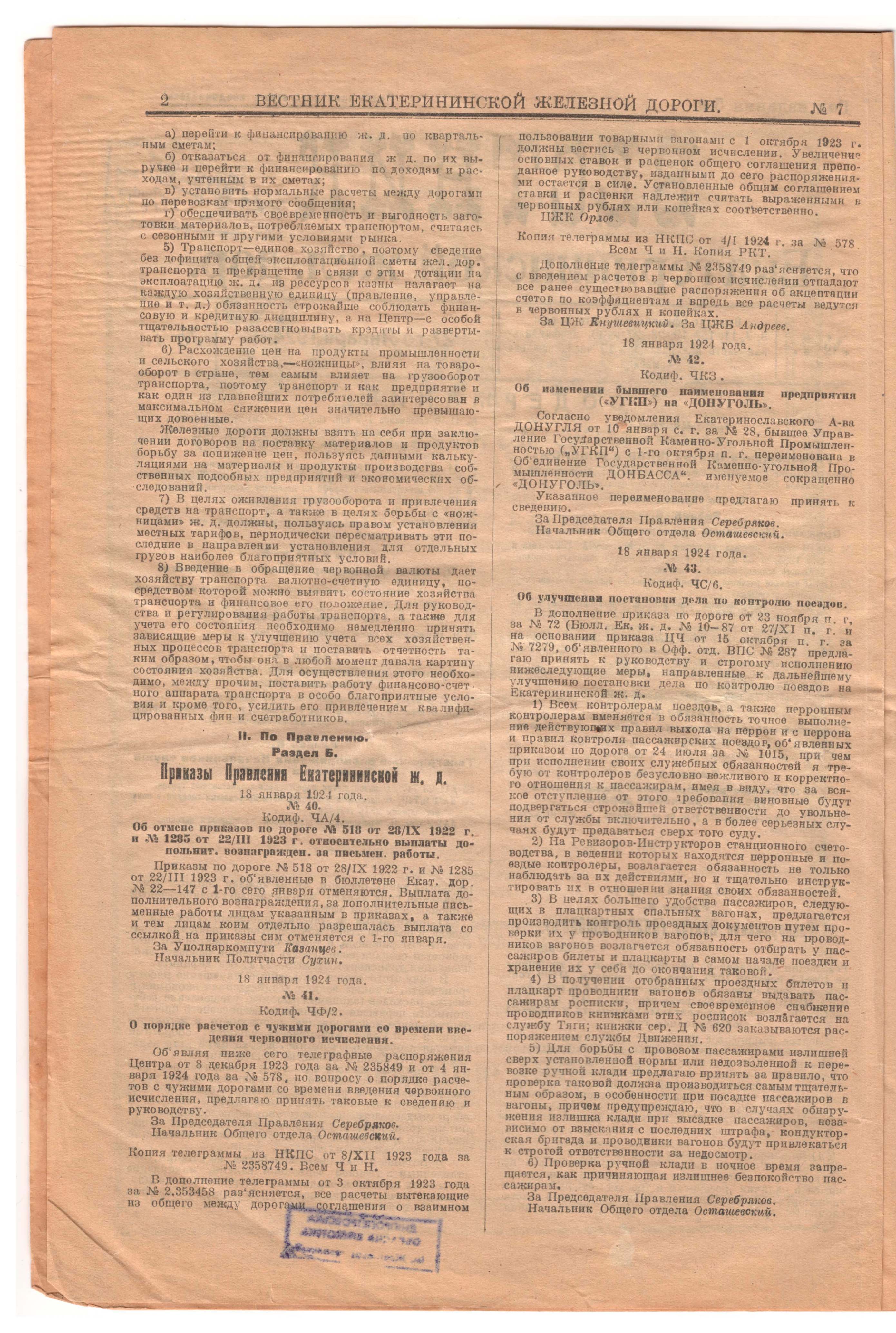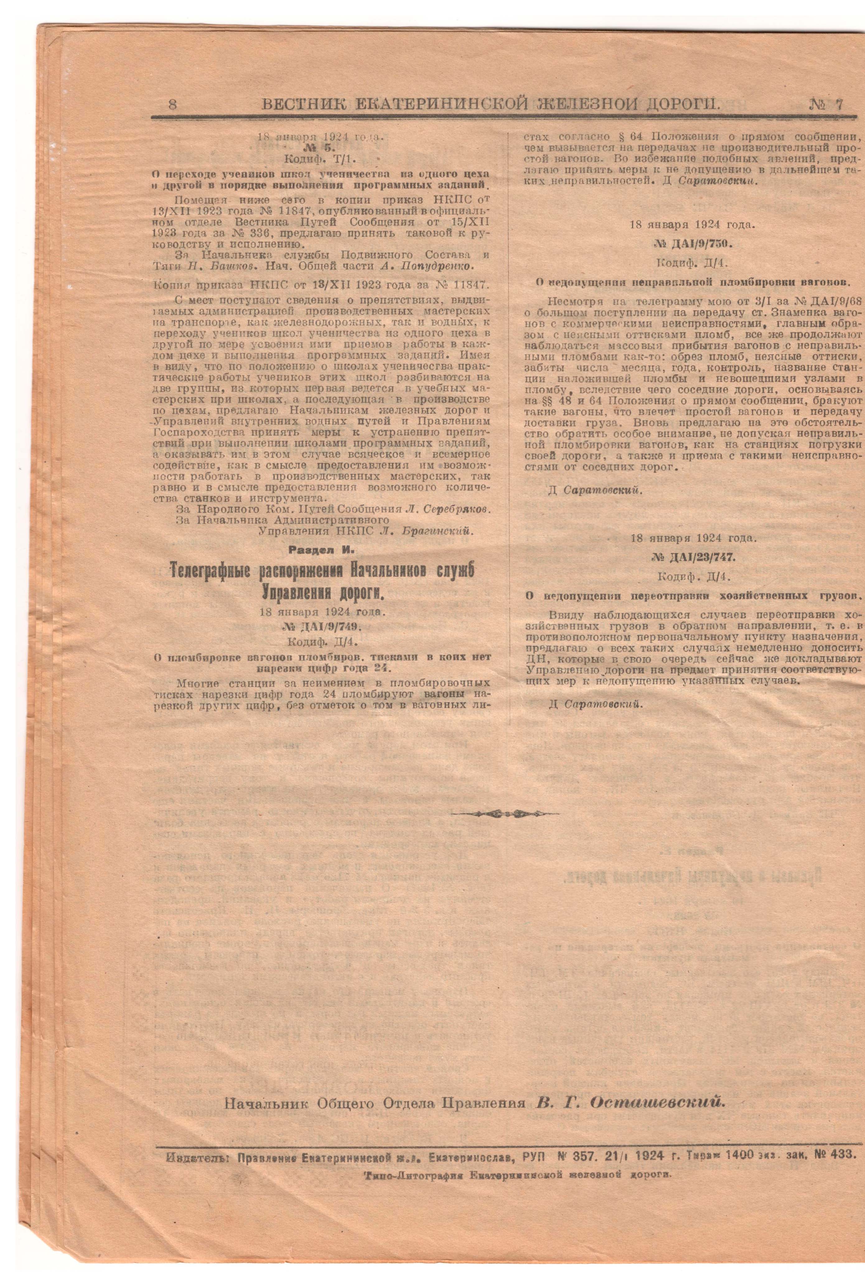 1. Вестник Екатерининской ж.д. 27 января 1924 года. № 7. Год издания пятый
