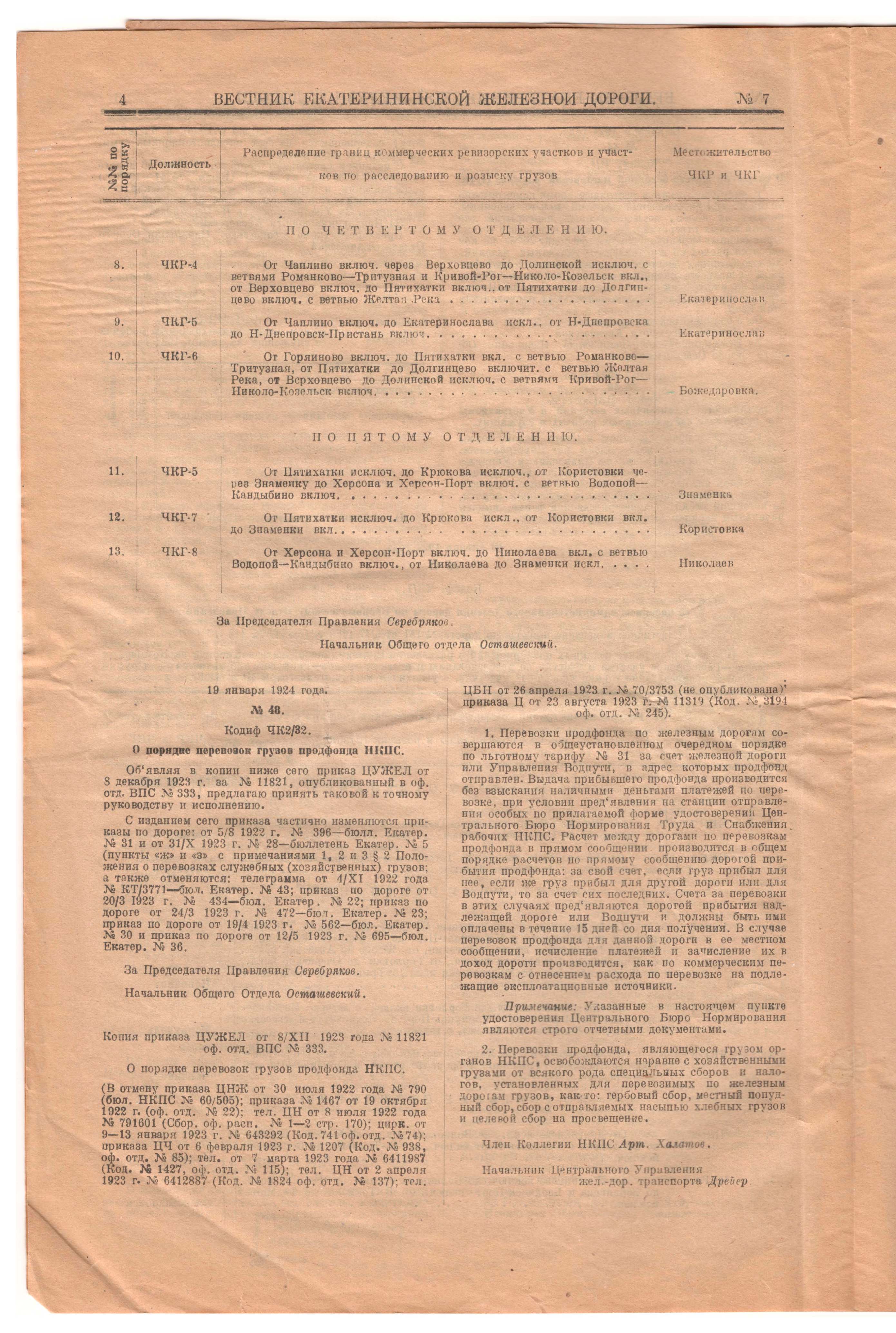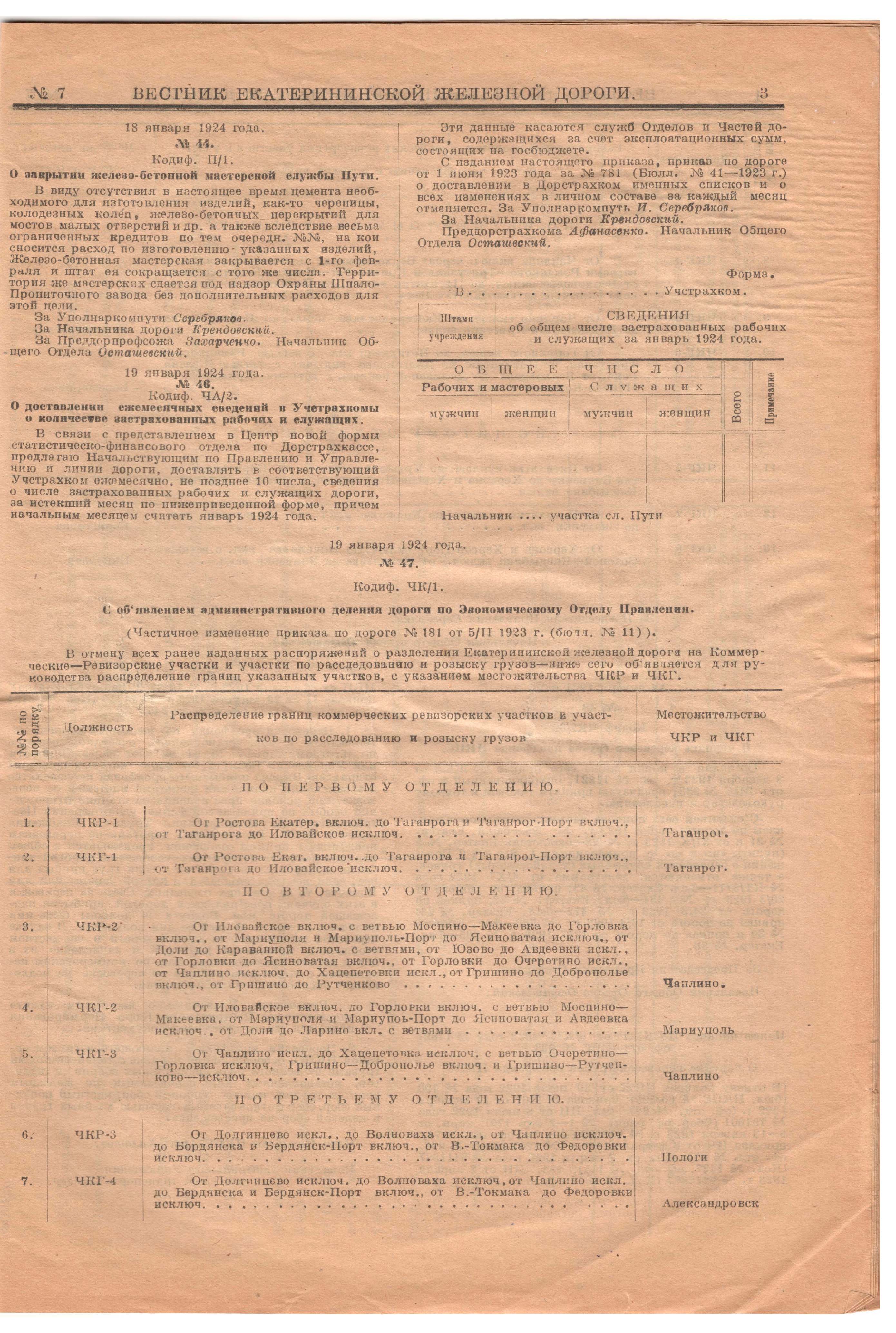 Вестник Екатерининской ж.д. 27 января 1924 года. № 7. Год издания пятый
