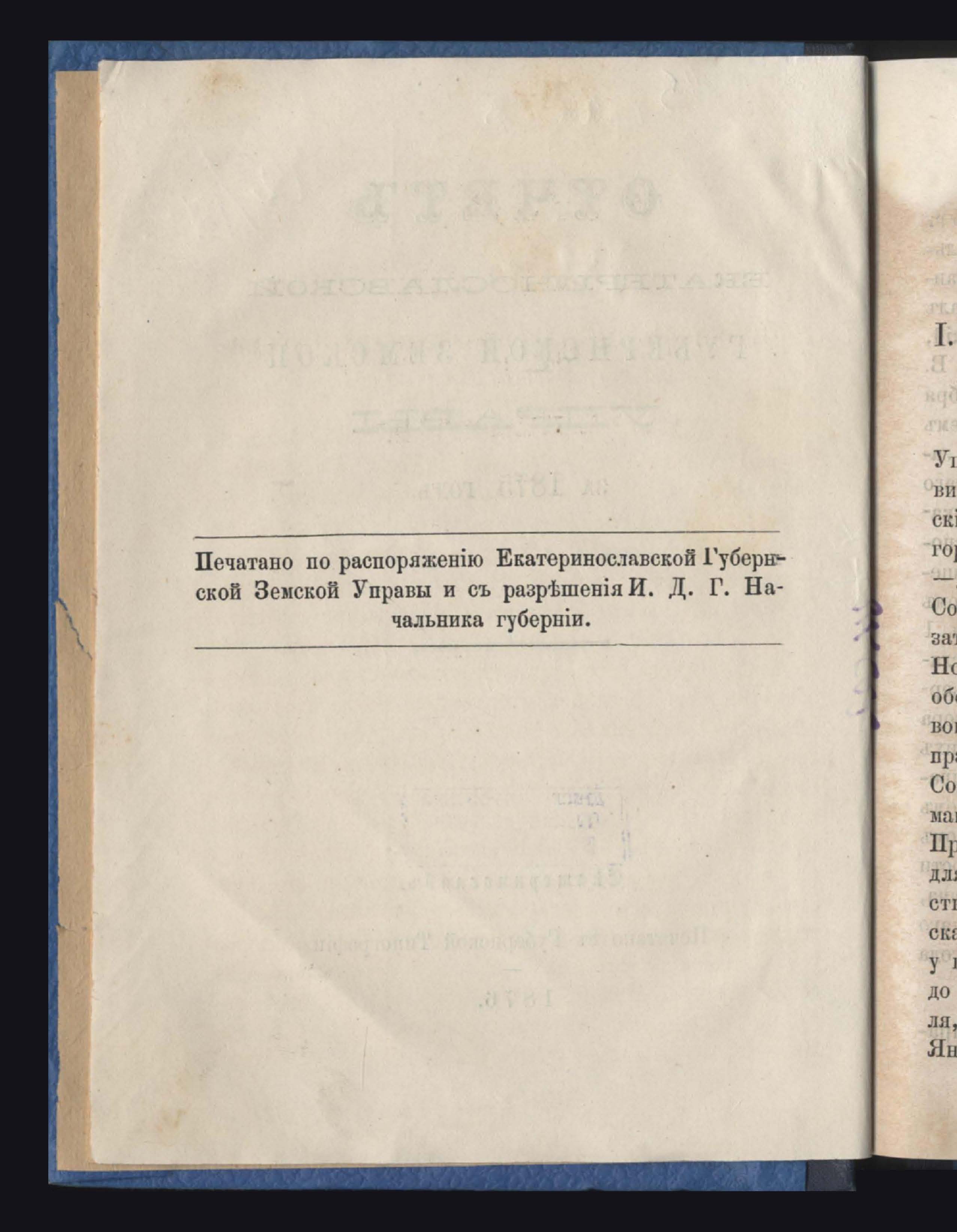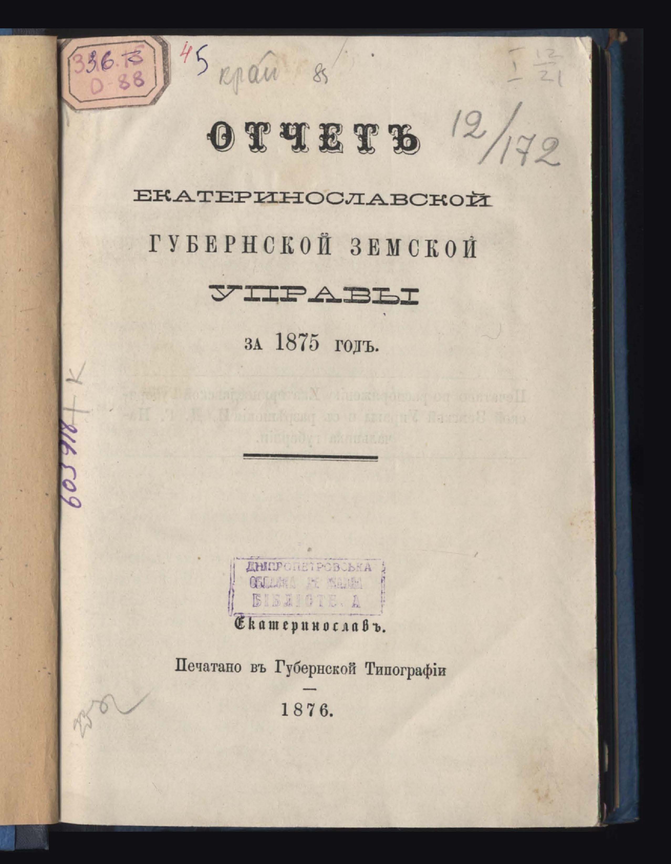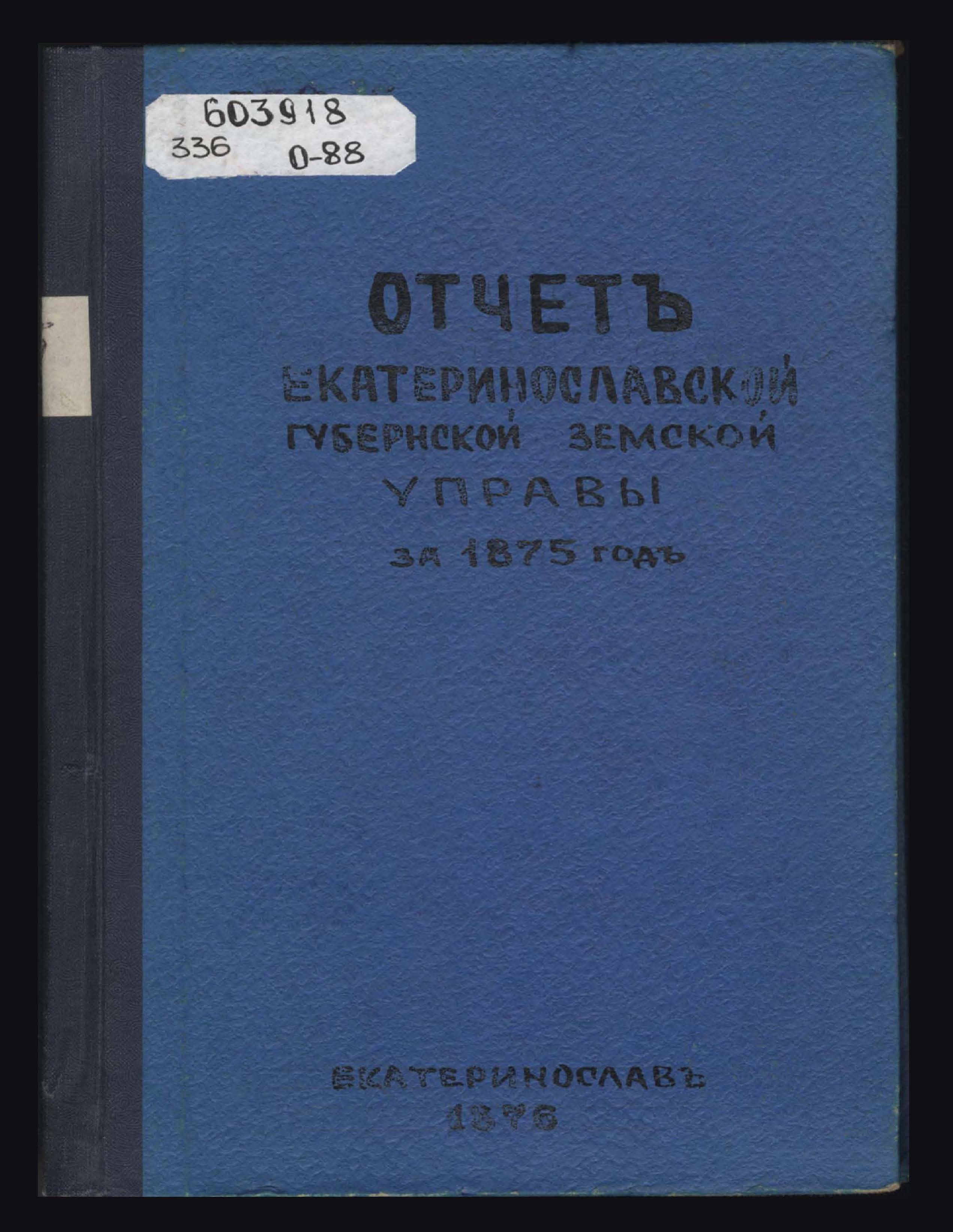 Отчетъ Екатеринославской Губернской Земской Управы за 1875 годъ