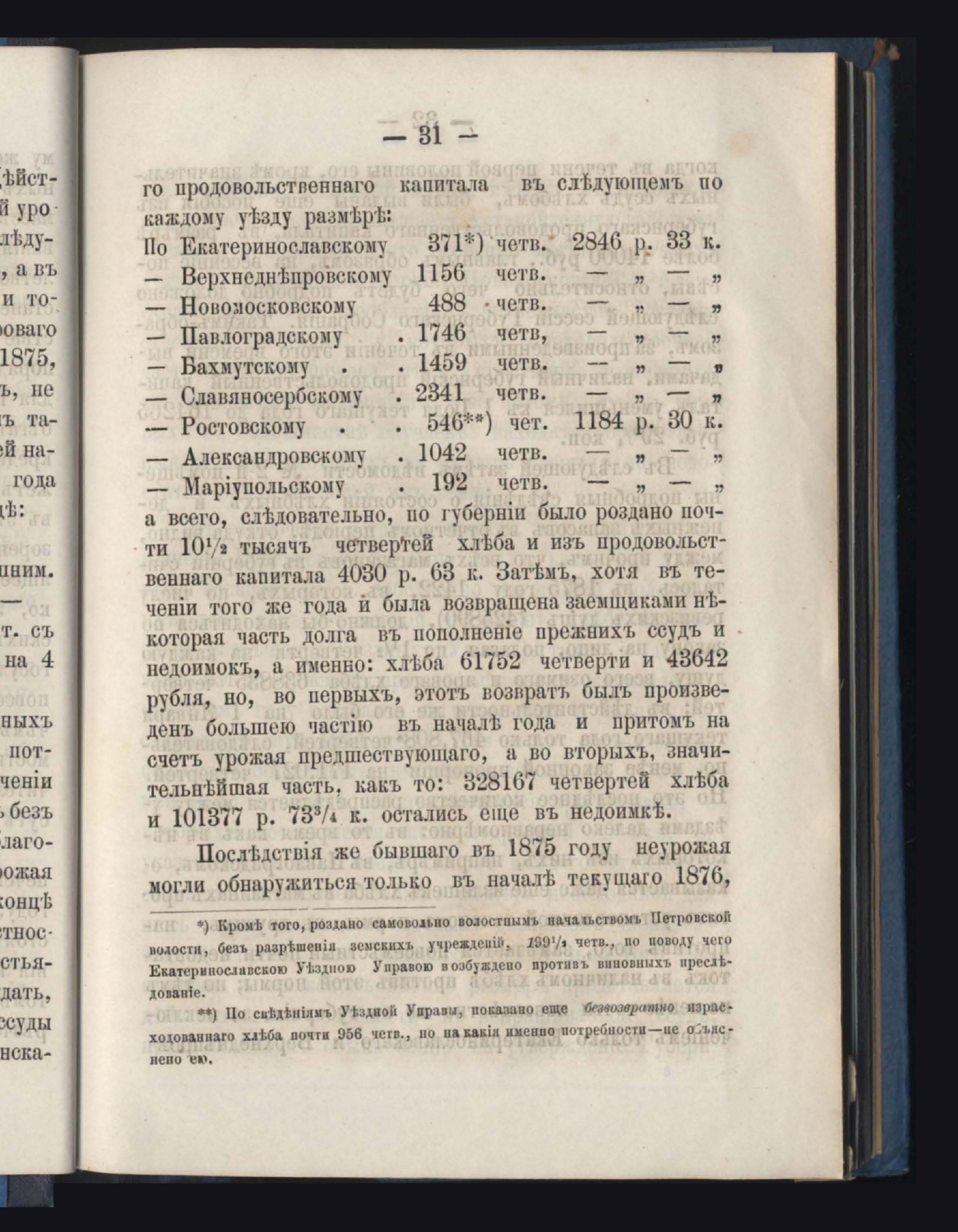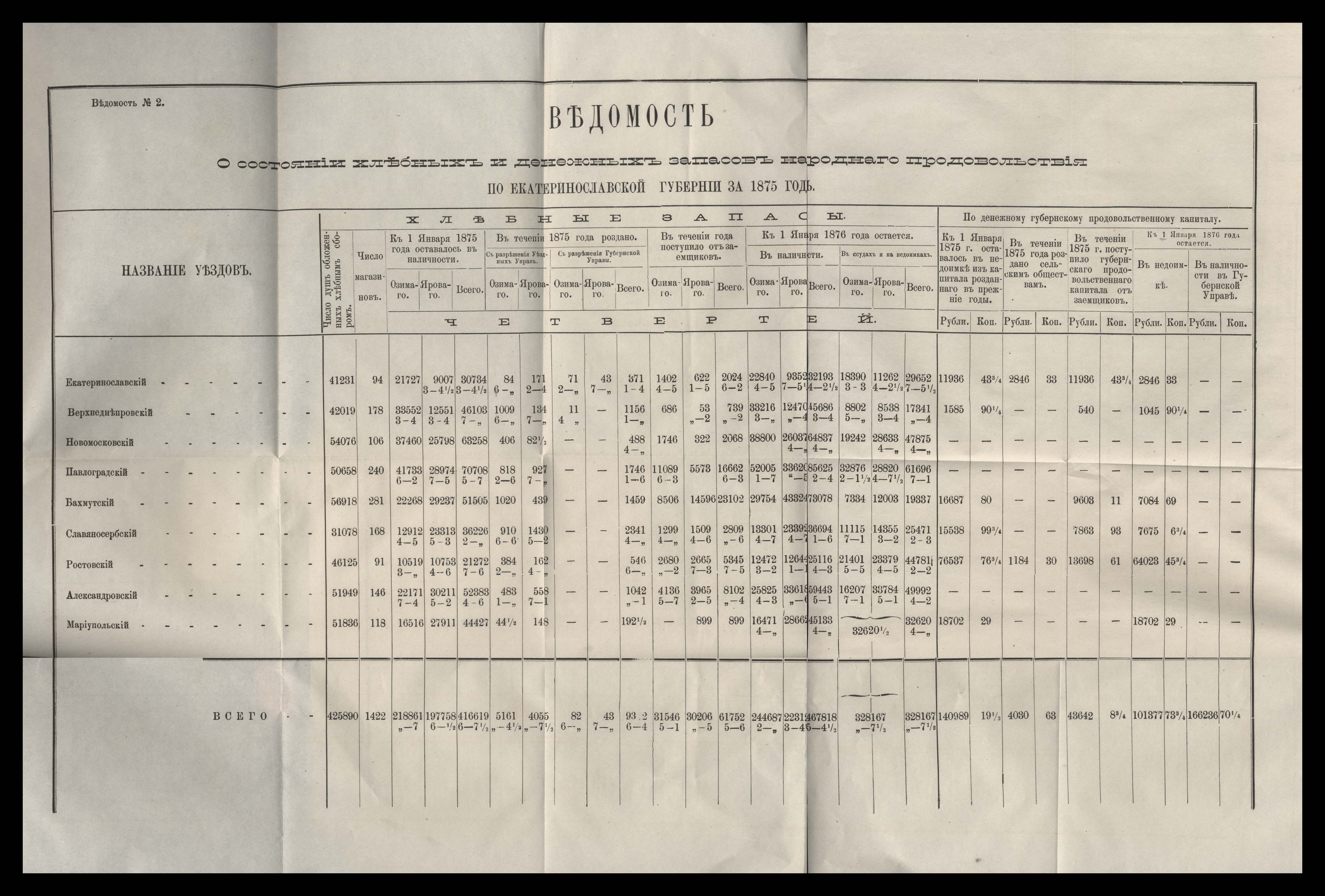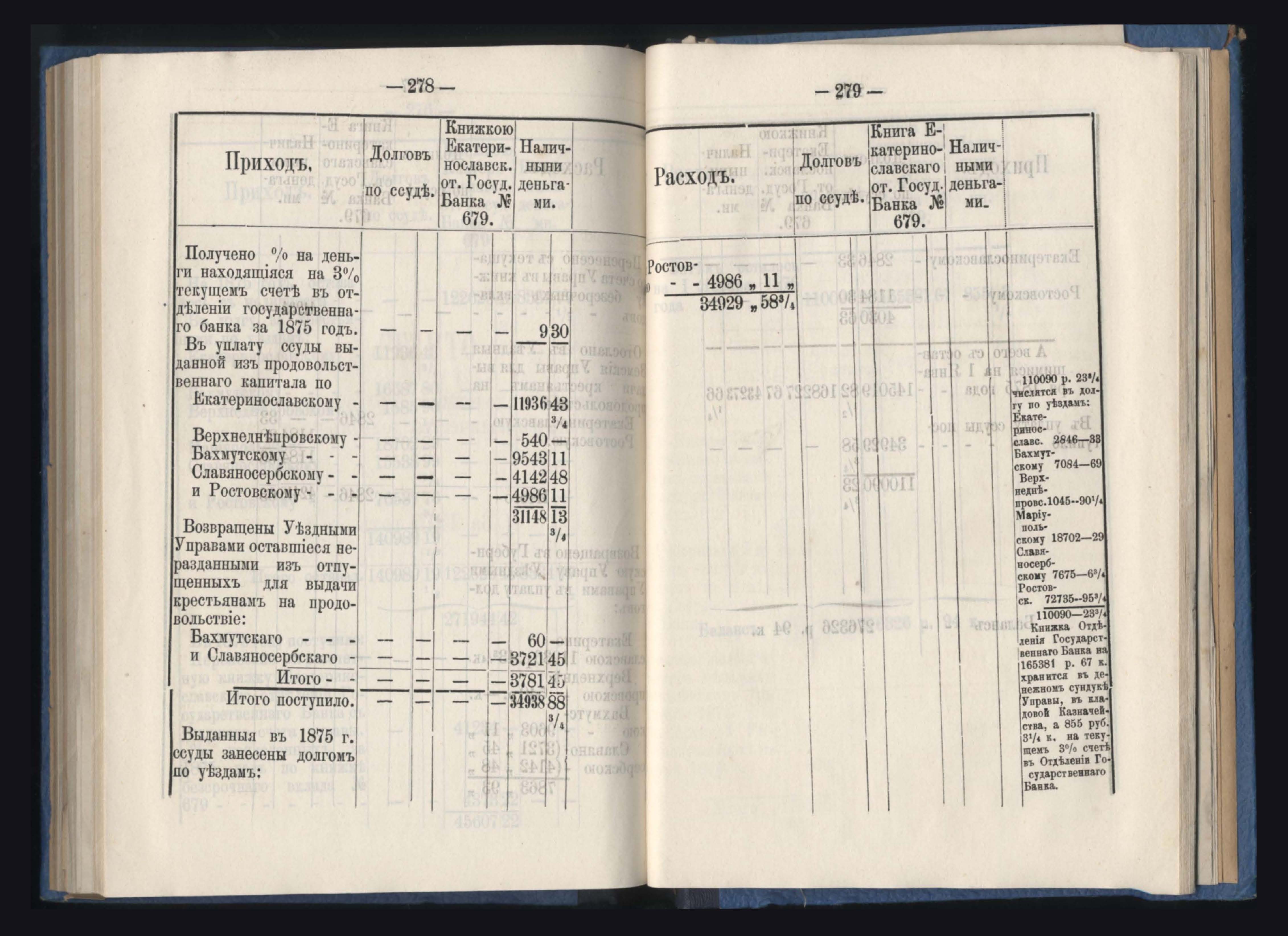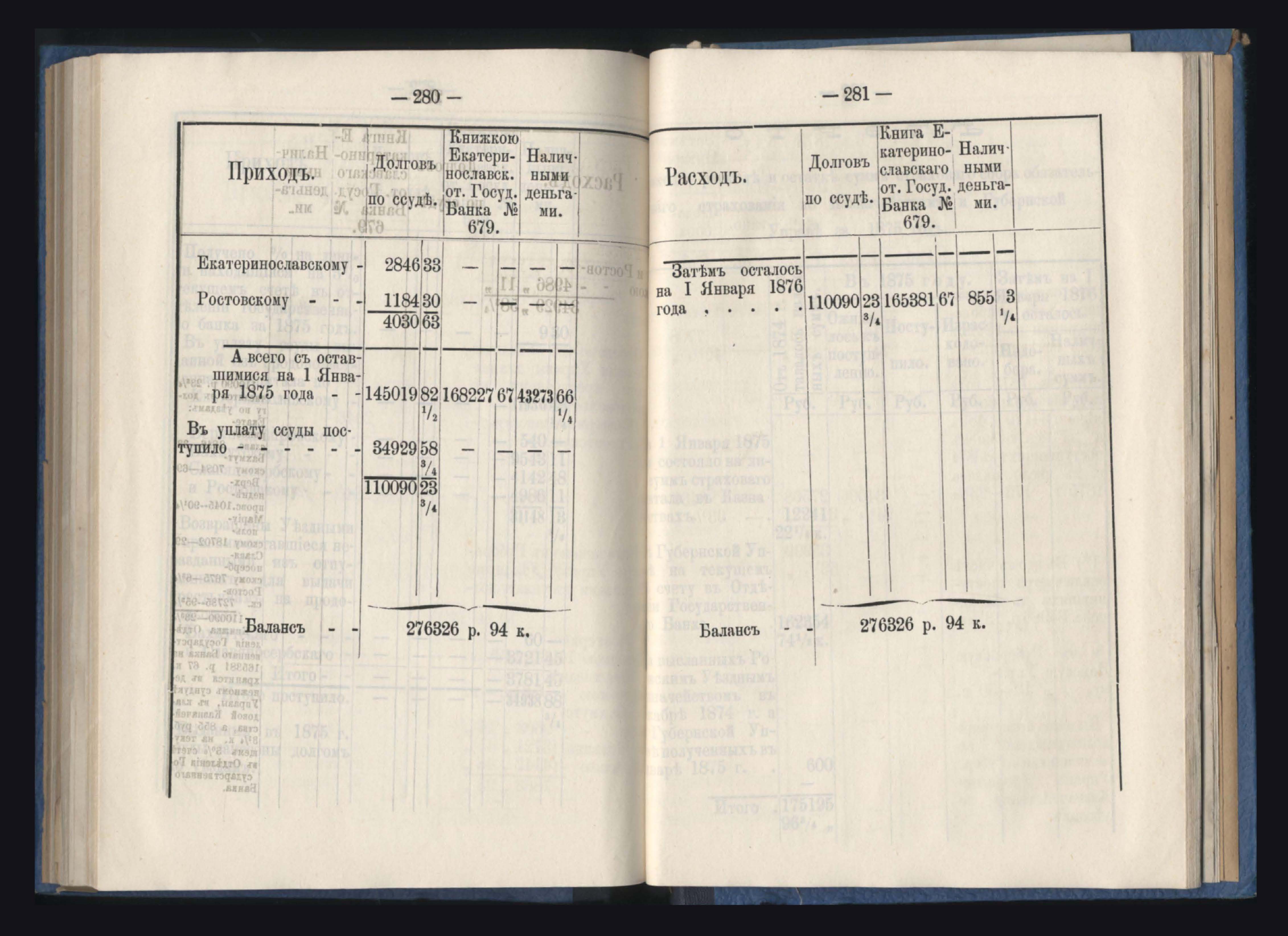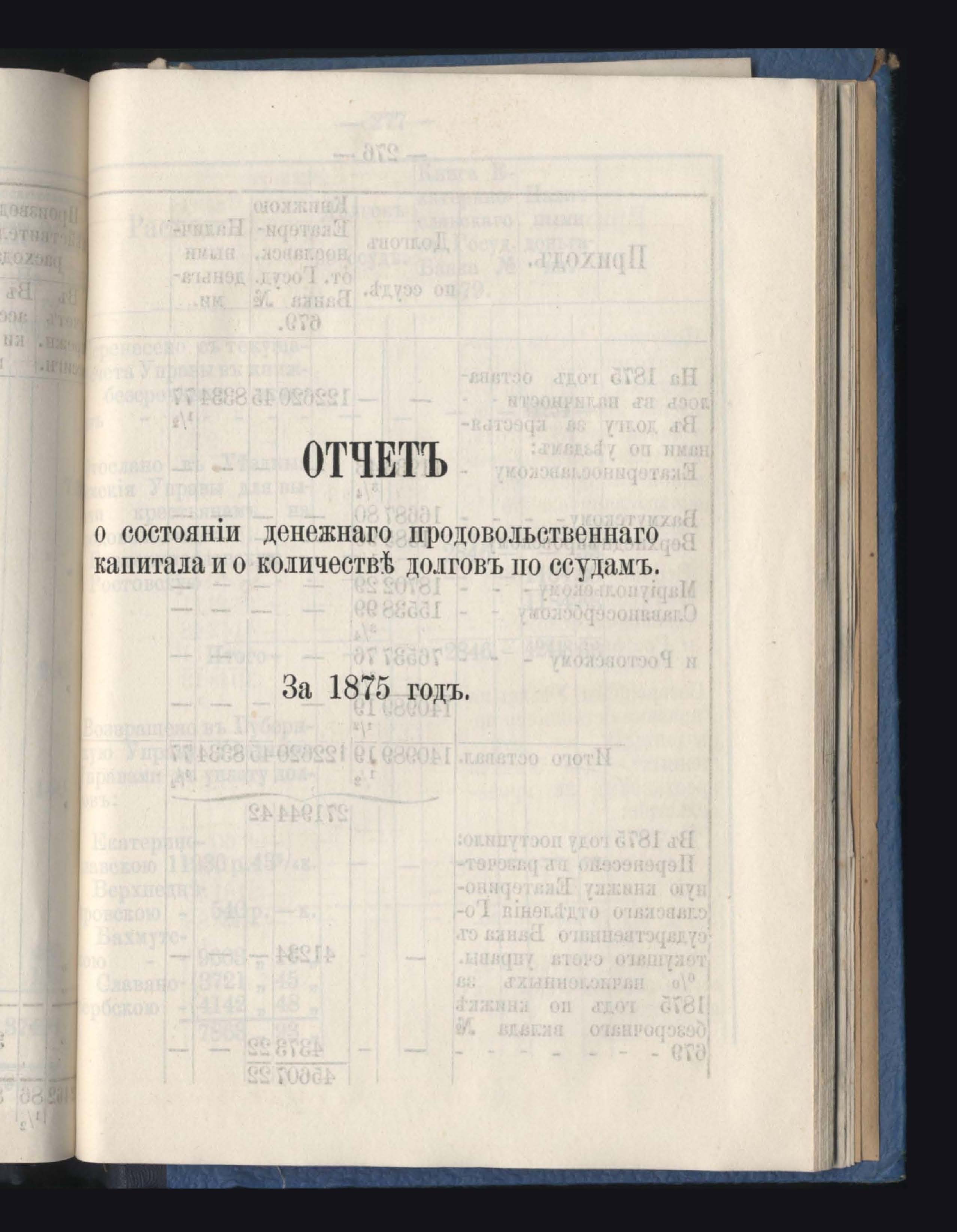 Отчетъ о состояніи денежнаго продовольственнаго капитала и о количествъ долговъ по ссудамъ за 1875 годъ