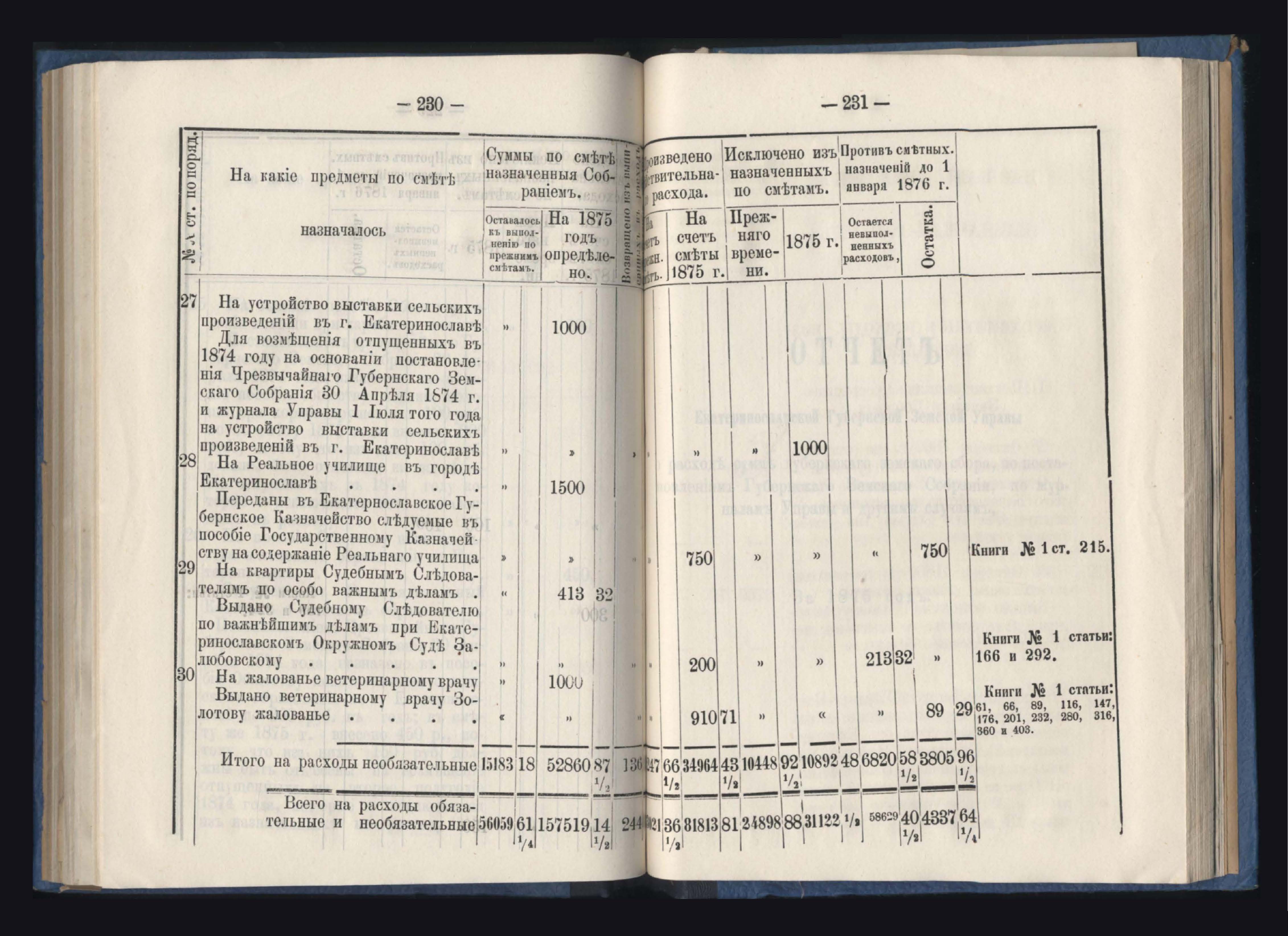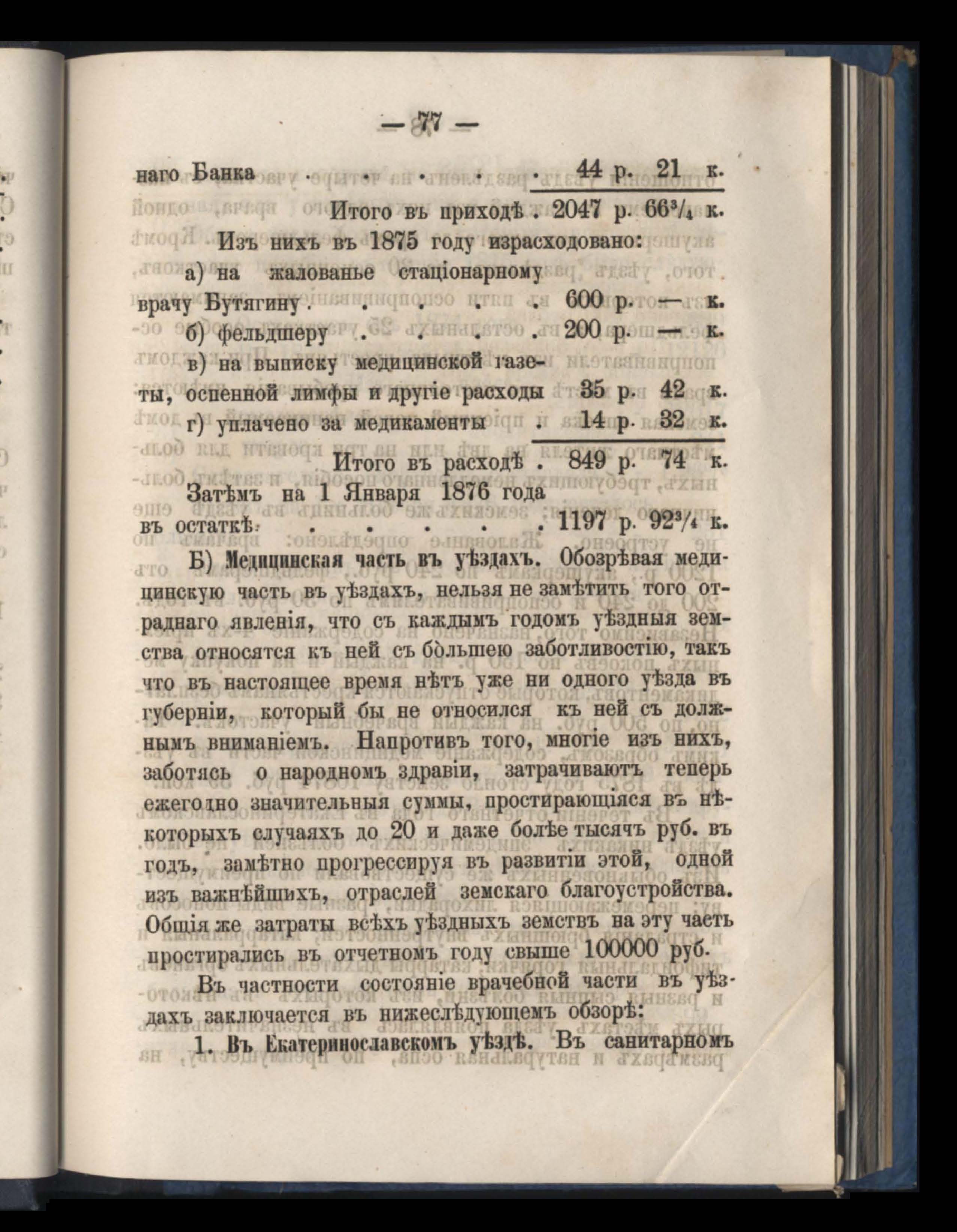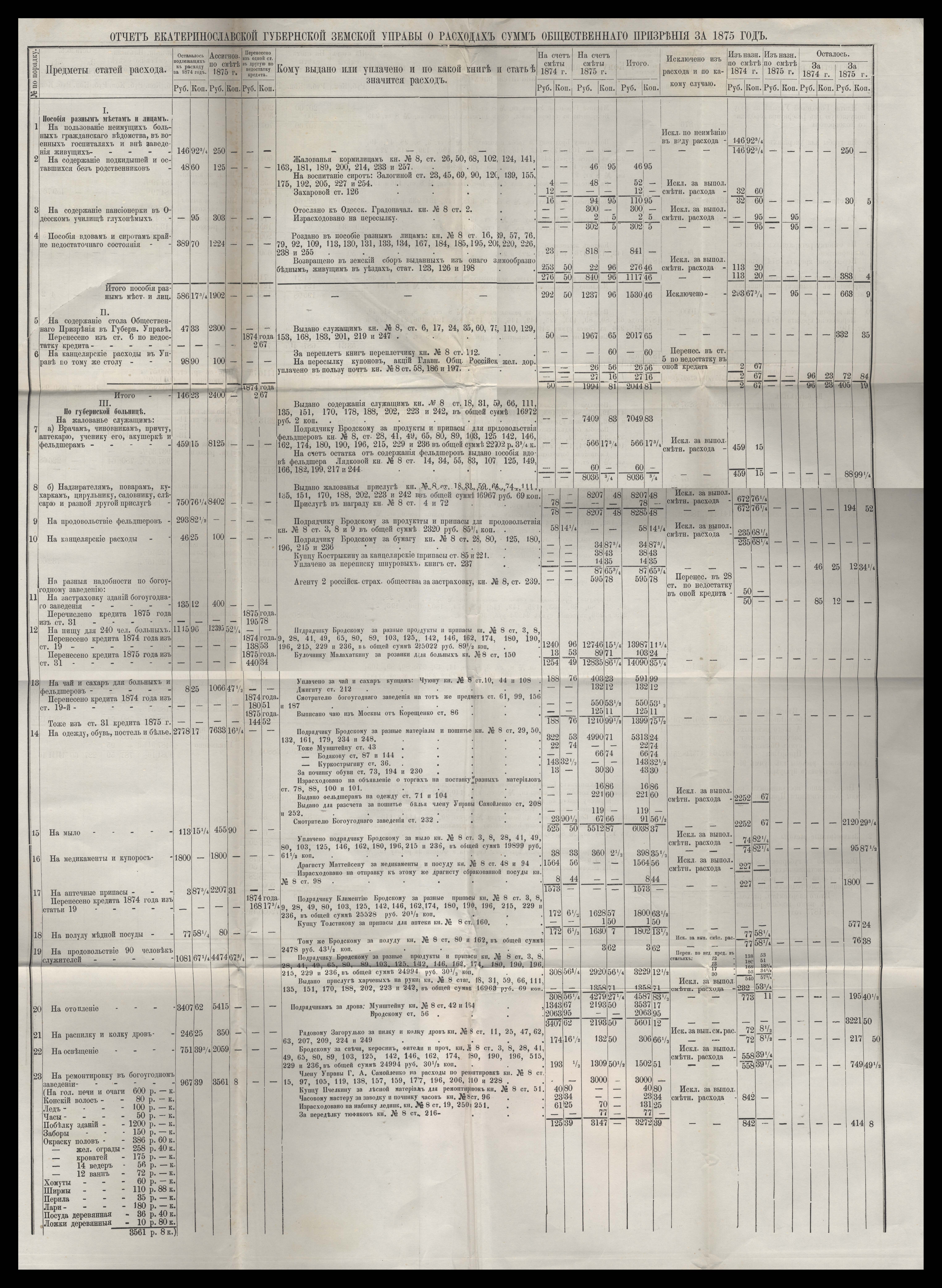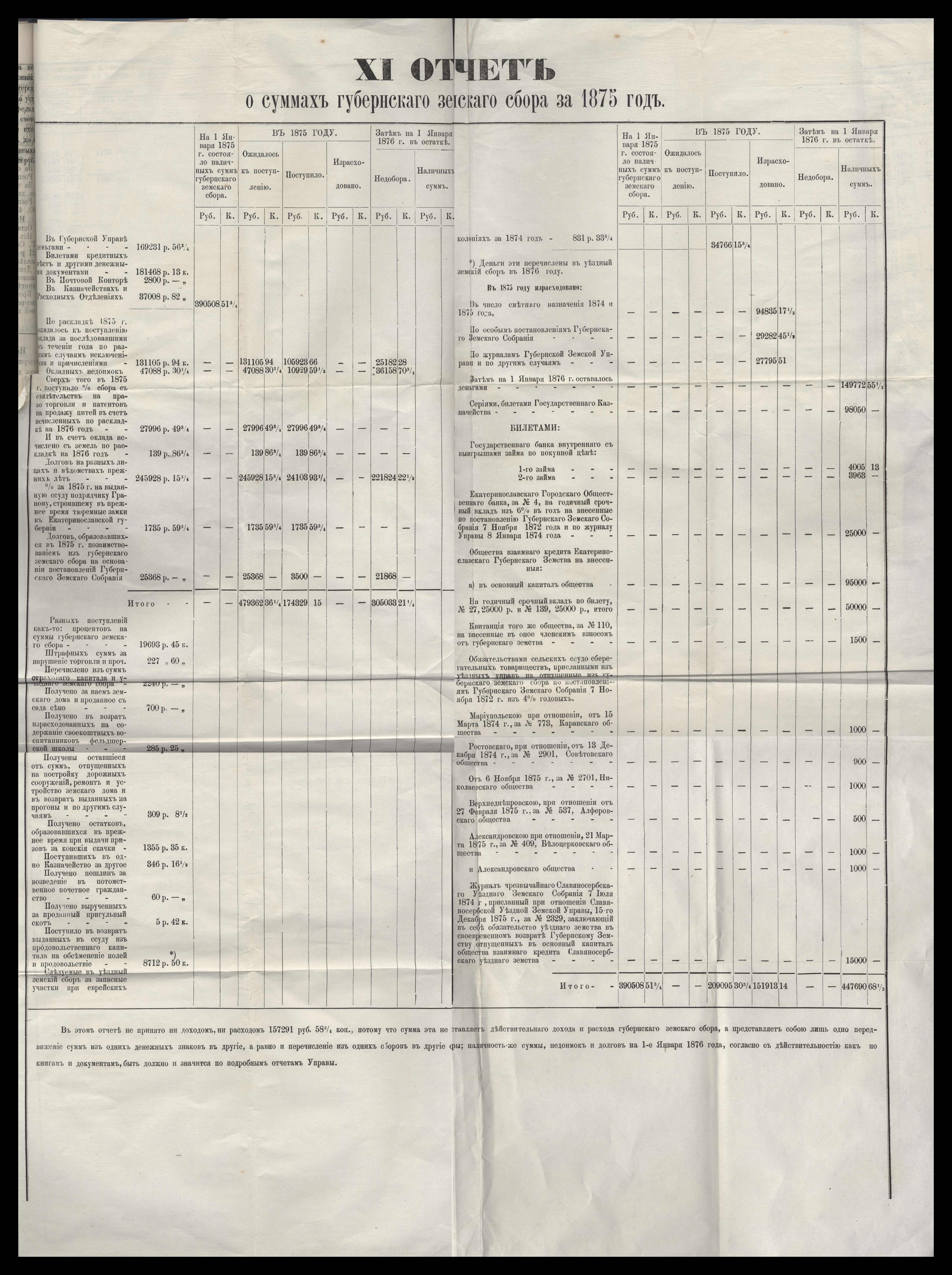 Отчетъ Екатеринославской Губернской Земской Управы о расходъ суммъ губернскаго земскаго сбора, ассигнованныхъ по сметъ на 1875 годъ
