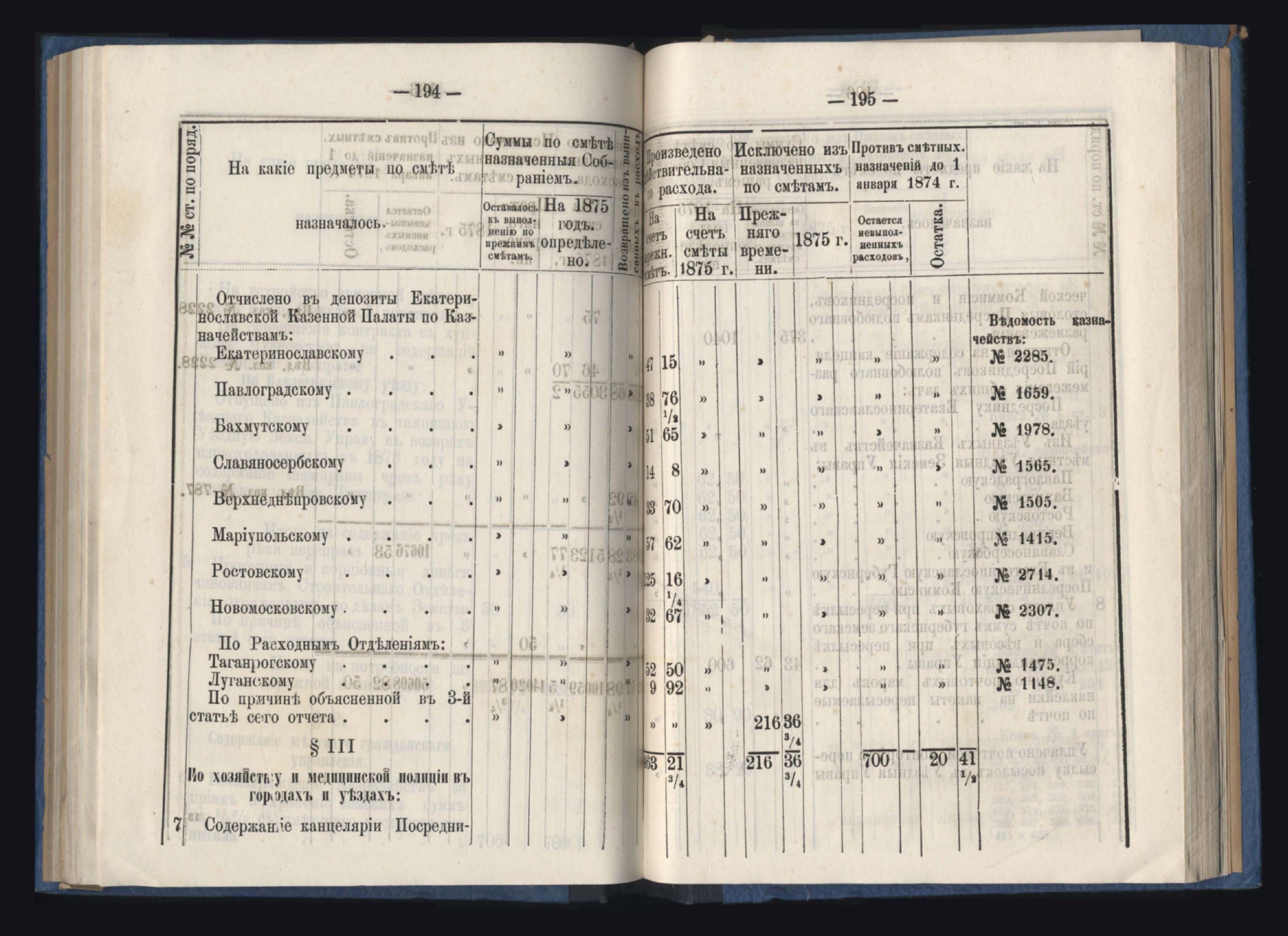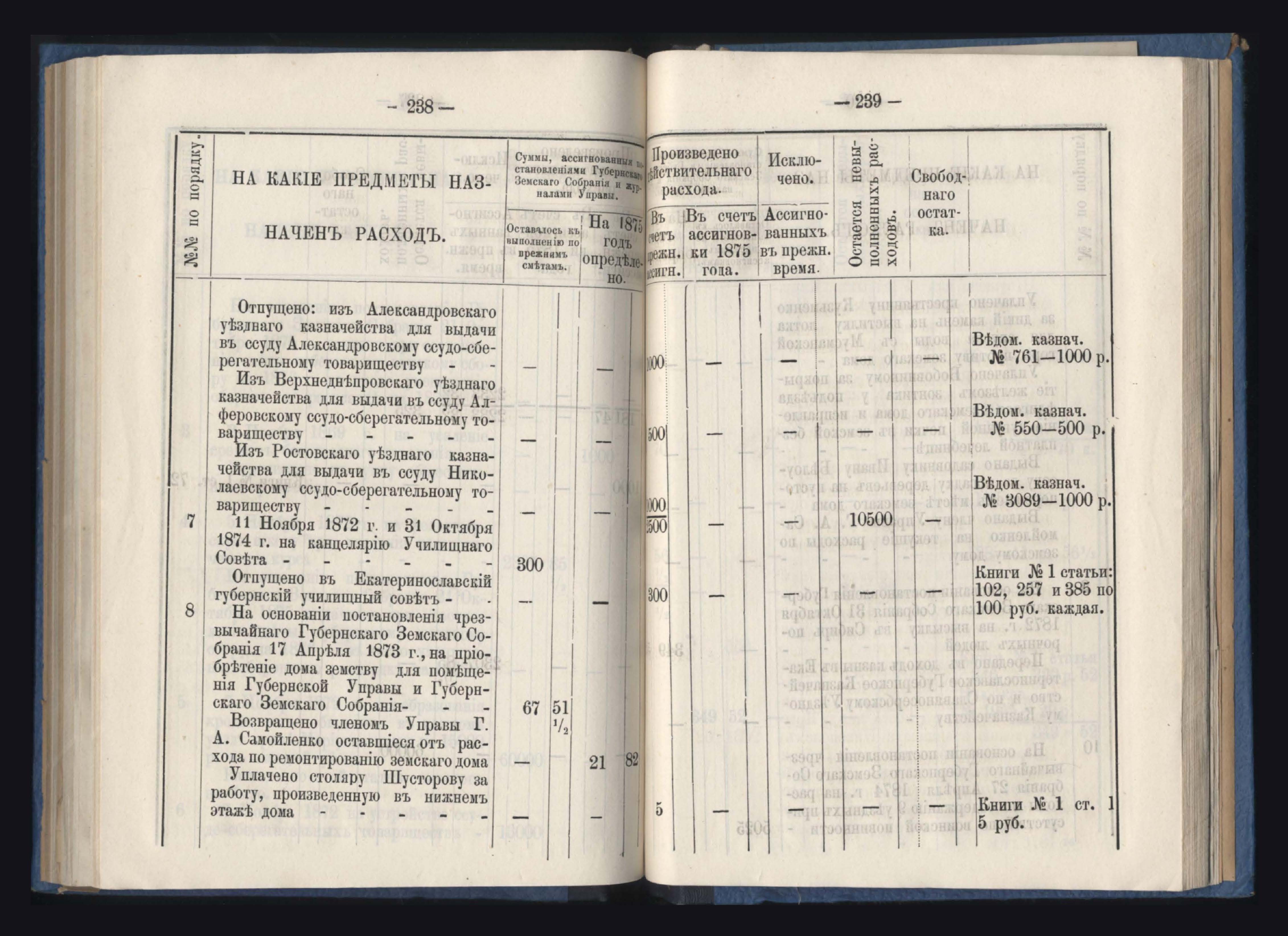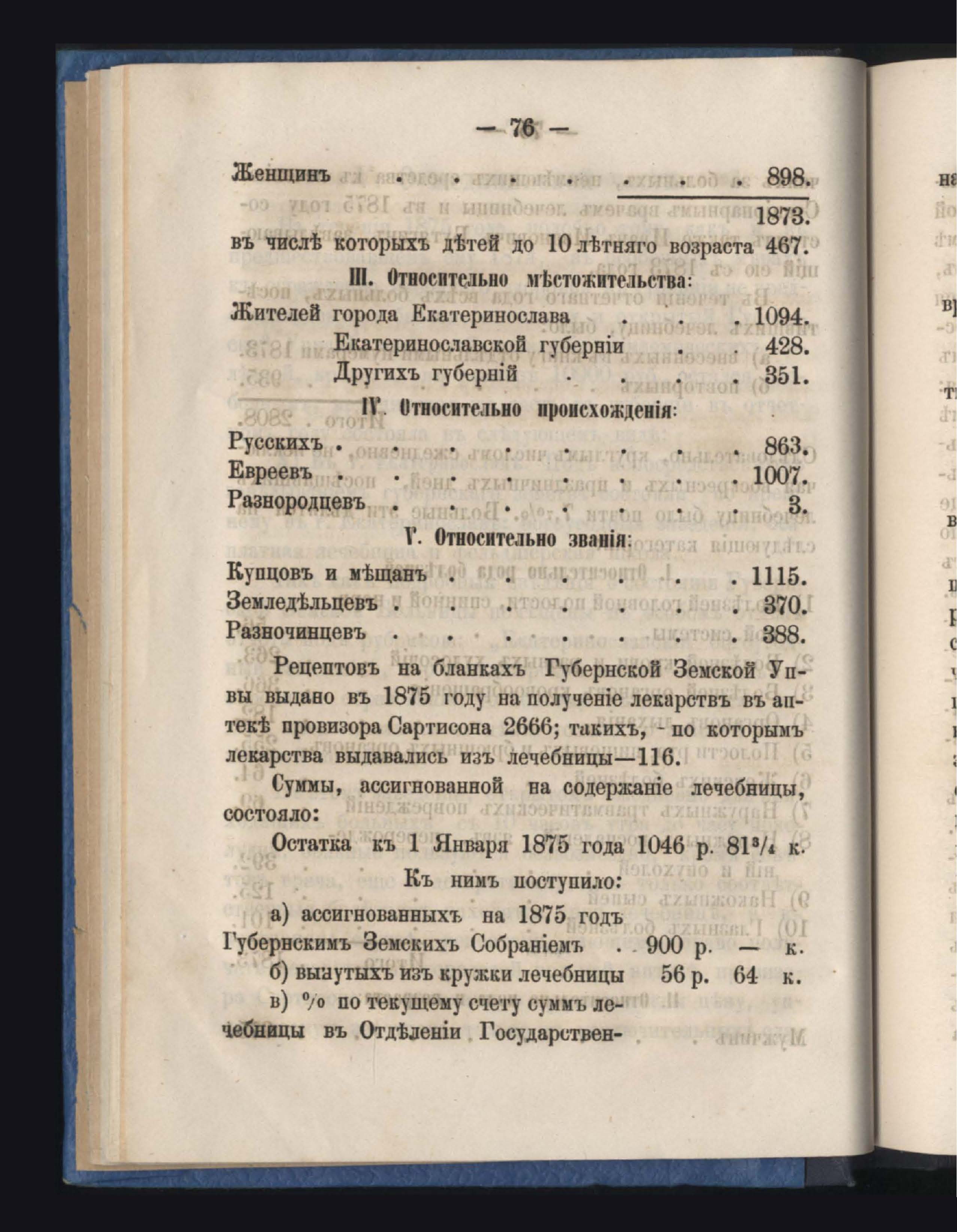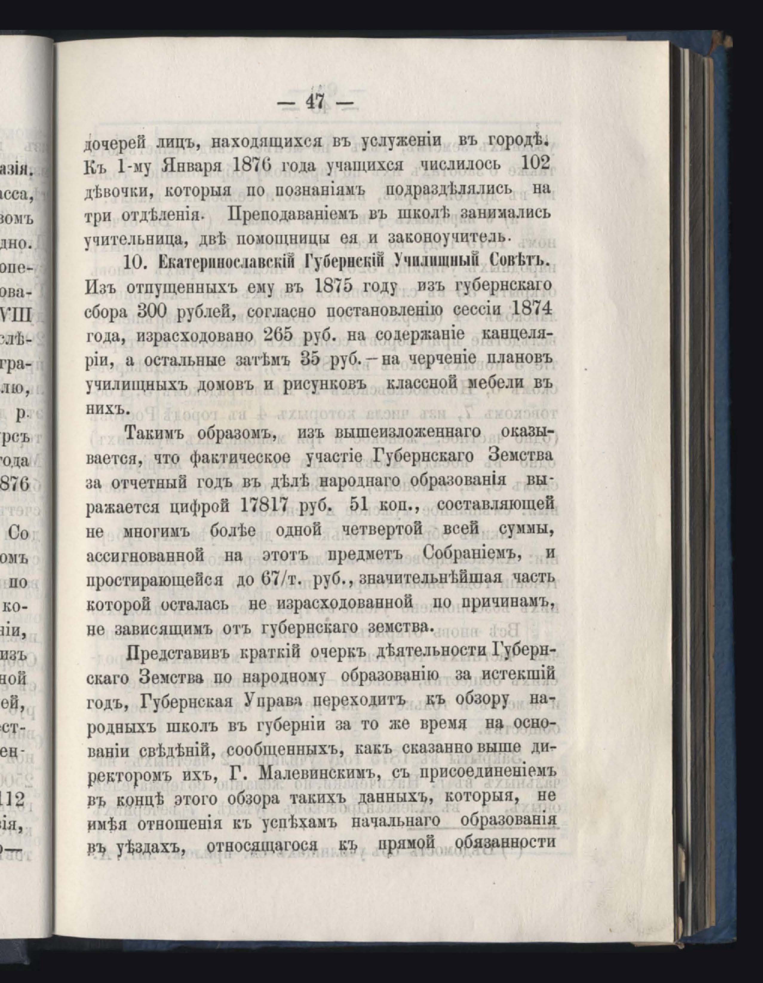 Отчетъ Екатеринославской Губернской Земской Управы о расходъ суммъ губернскаго земскаго сбора, ассигнованныхъ по сметъ на 1875 годъ