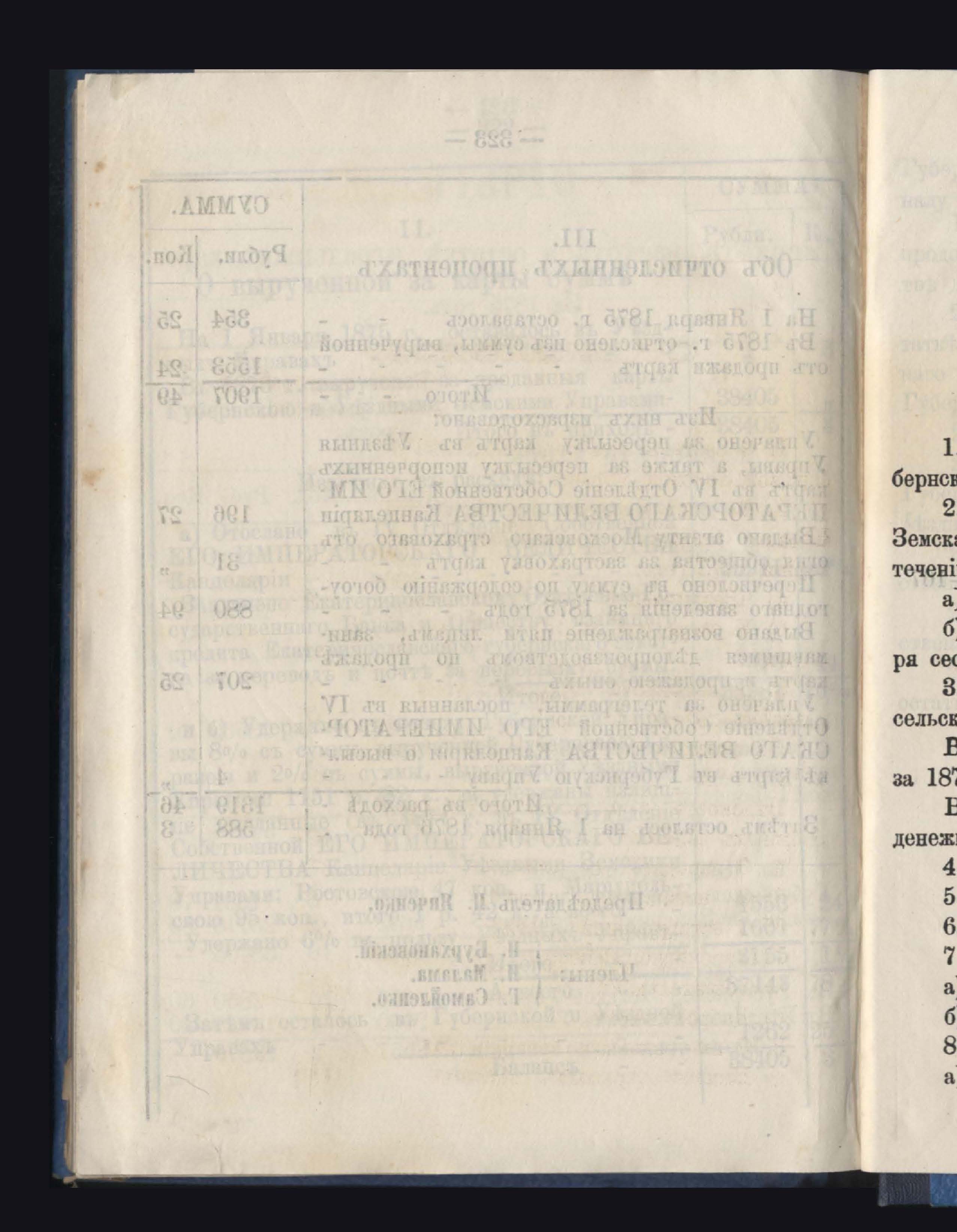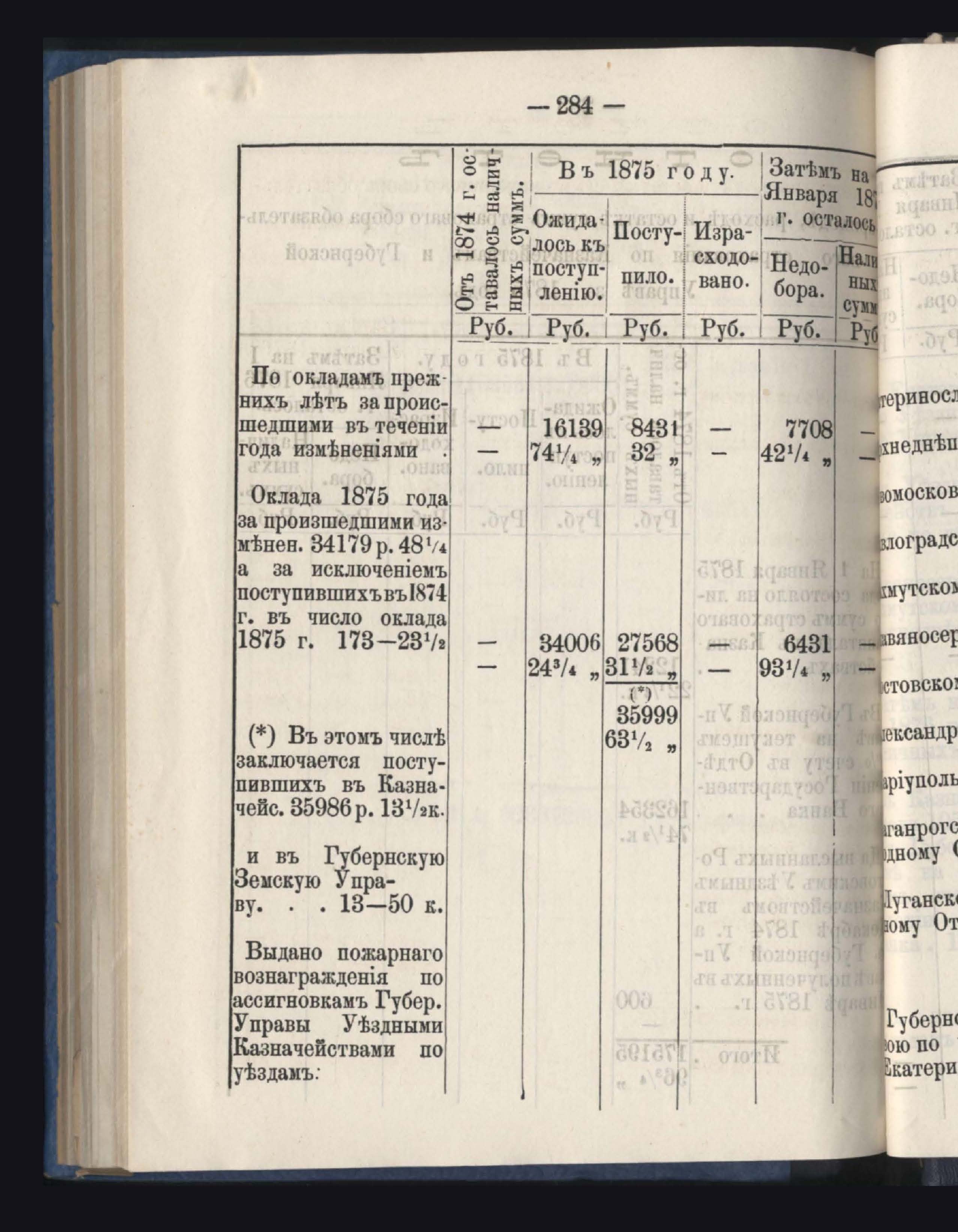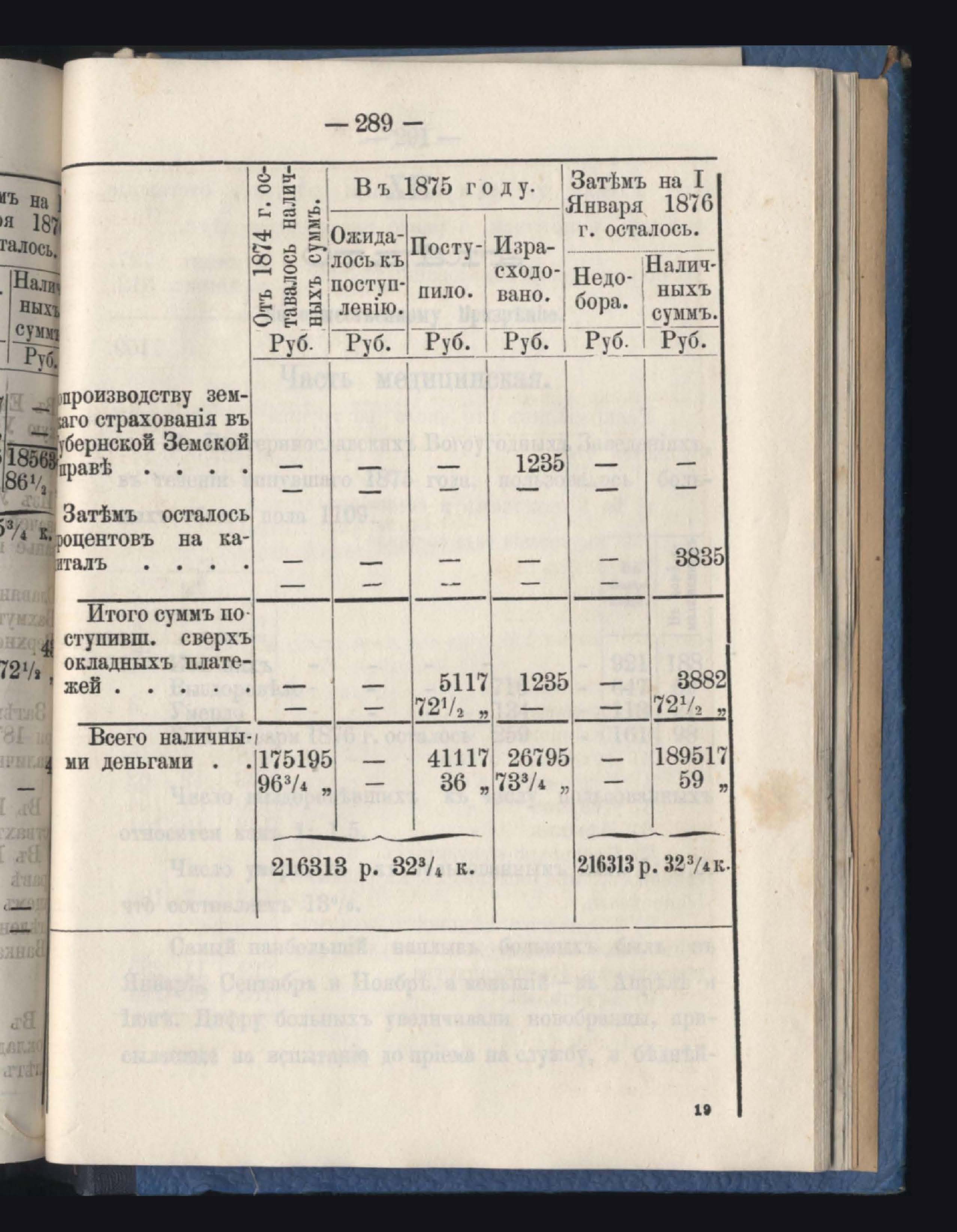 Отчетъ о приходъ, расходъ и остаткъ суммъ страховаго сбора обязательнаго страхованія по Казначействамъ и Губернской Управъ за 1875 годъ