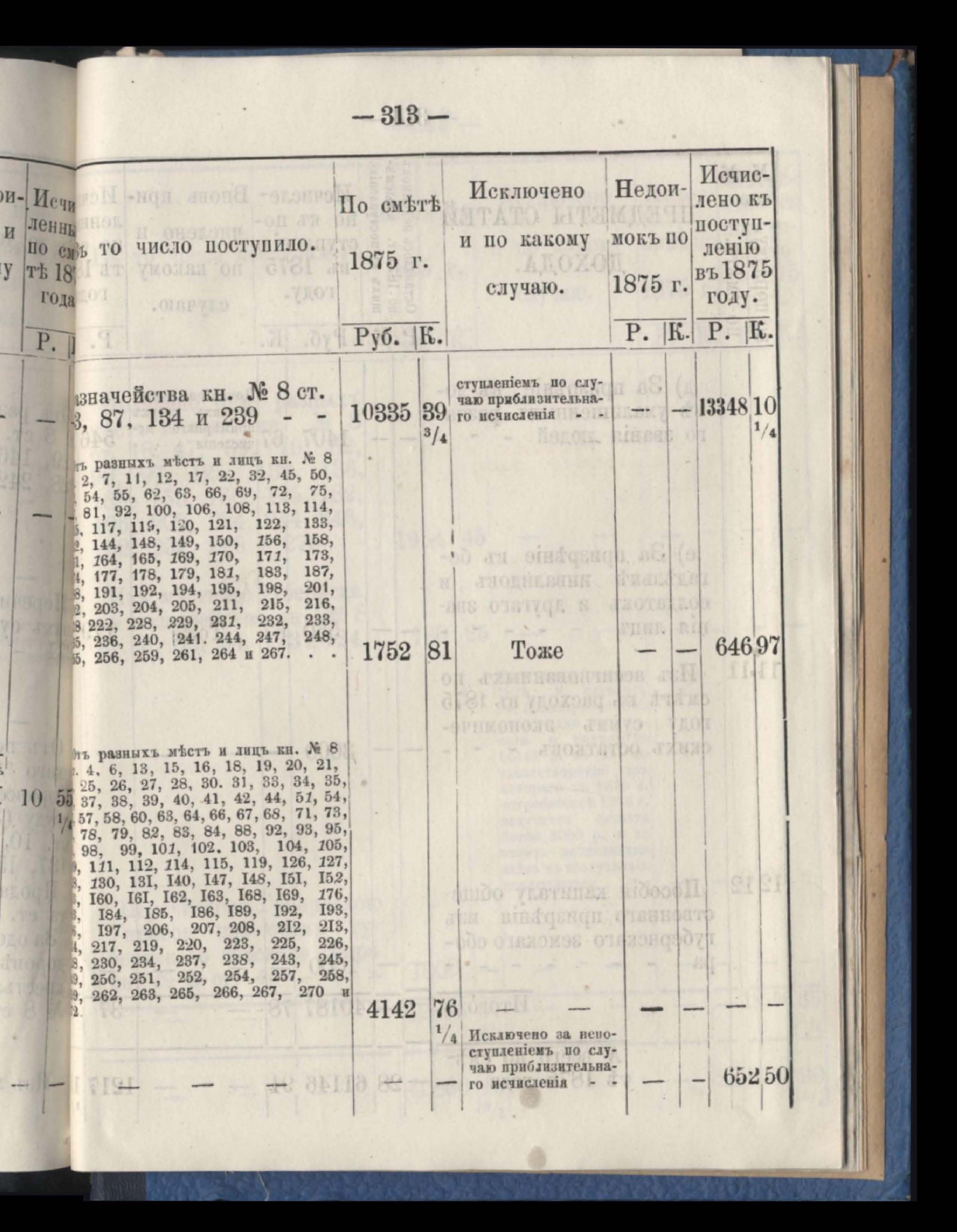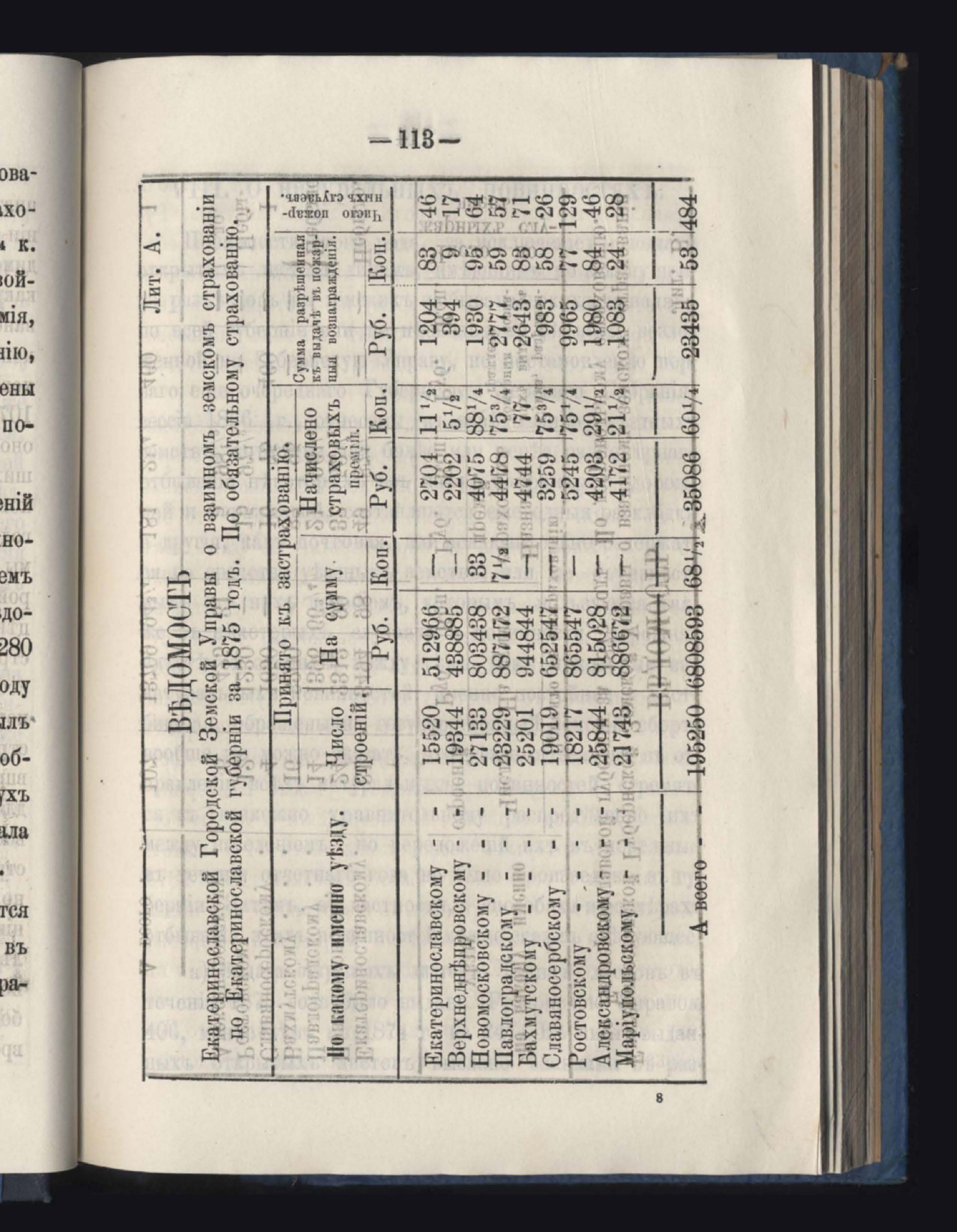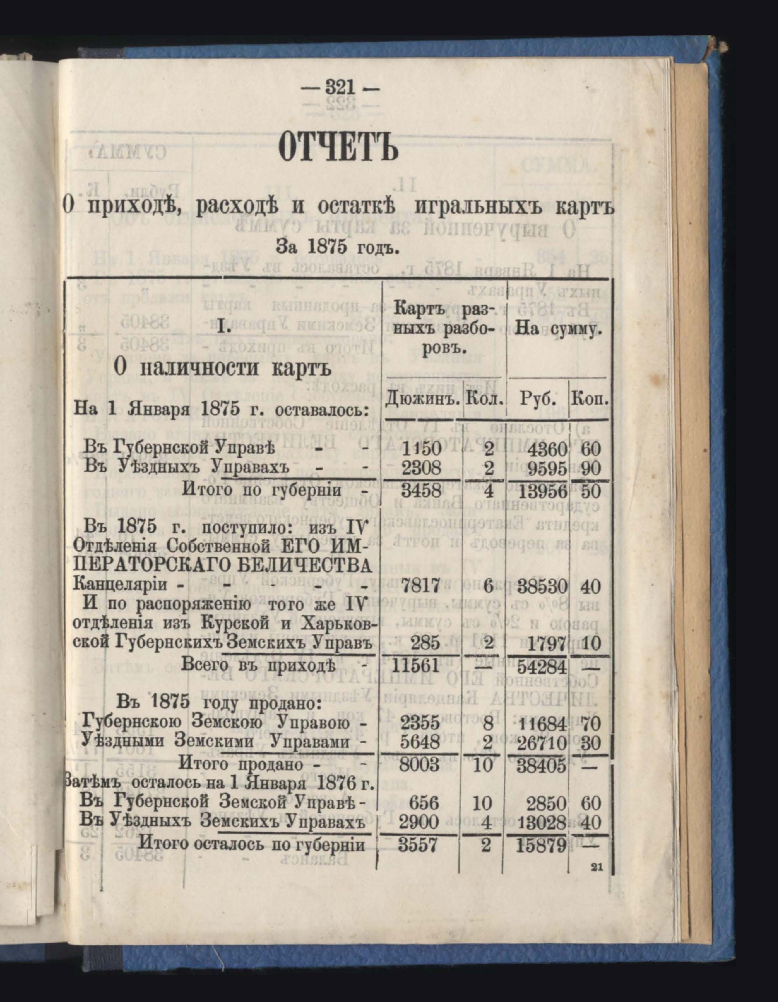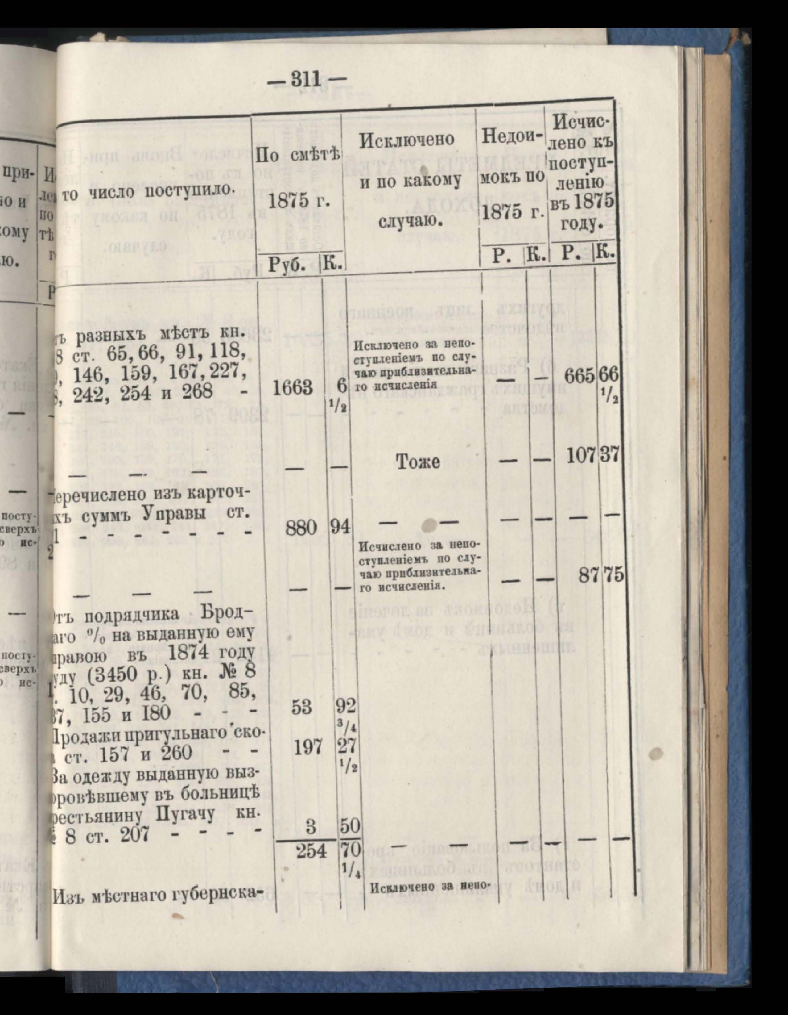 Отчетъ о приходъ, расходъ и остаткъ суммъ страховаго сбора обязательнаго страхованія по Казначействамъ и Губернской Управъ за 1875 годъ